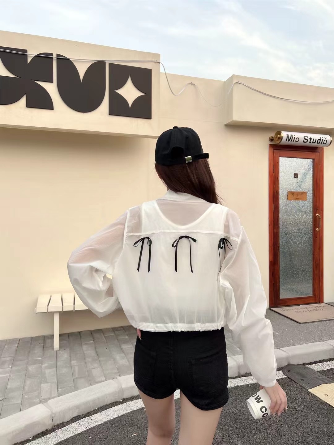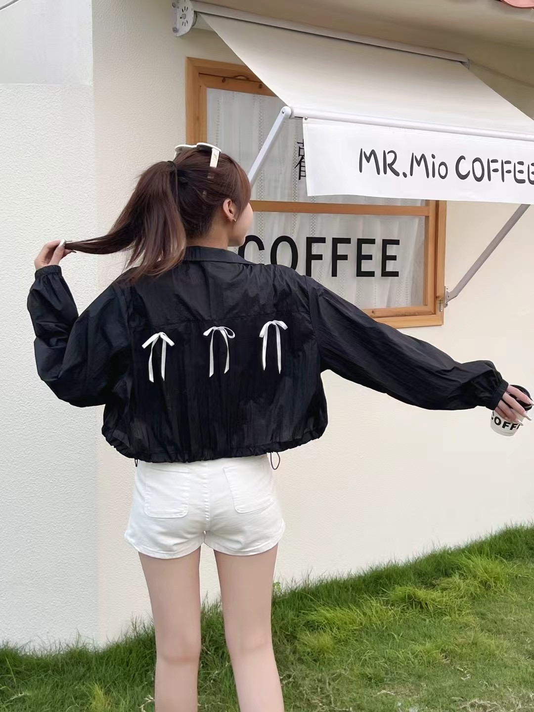 BY17511# YAY韩国东大门代购背后蝴蝶结丝带装饰简约休闲夹克短外套 服裝批發女裝批發服飾貨源
