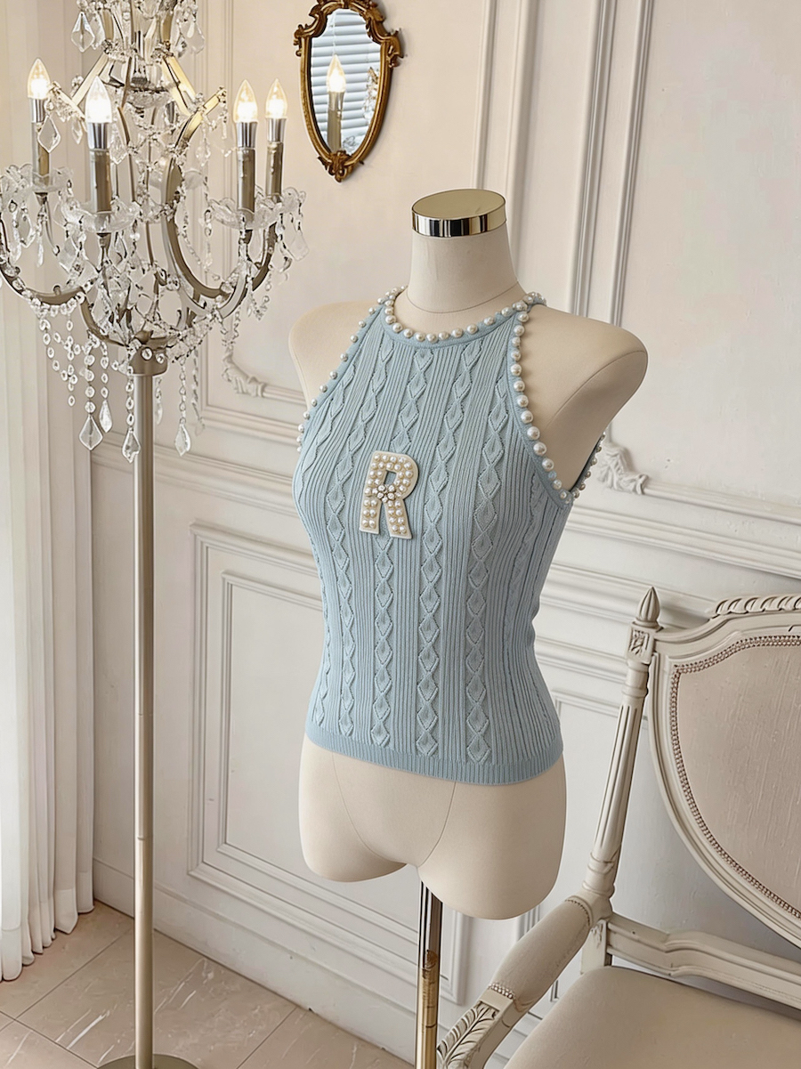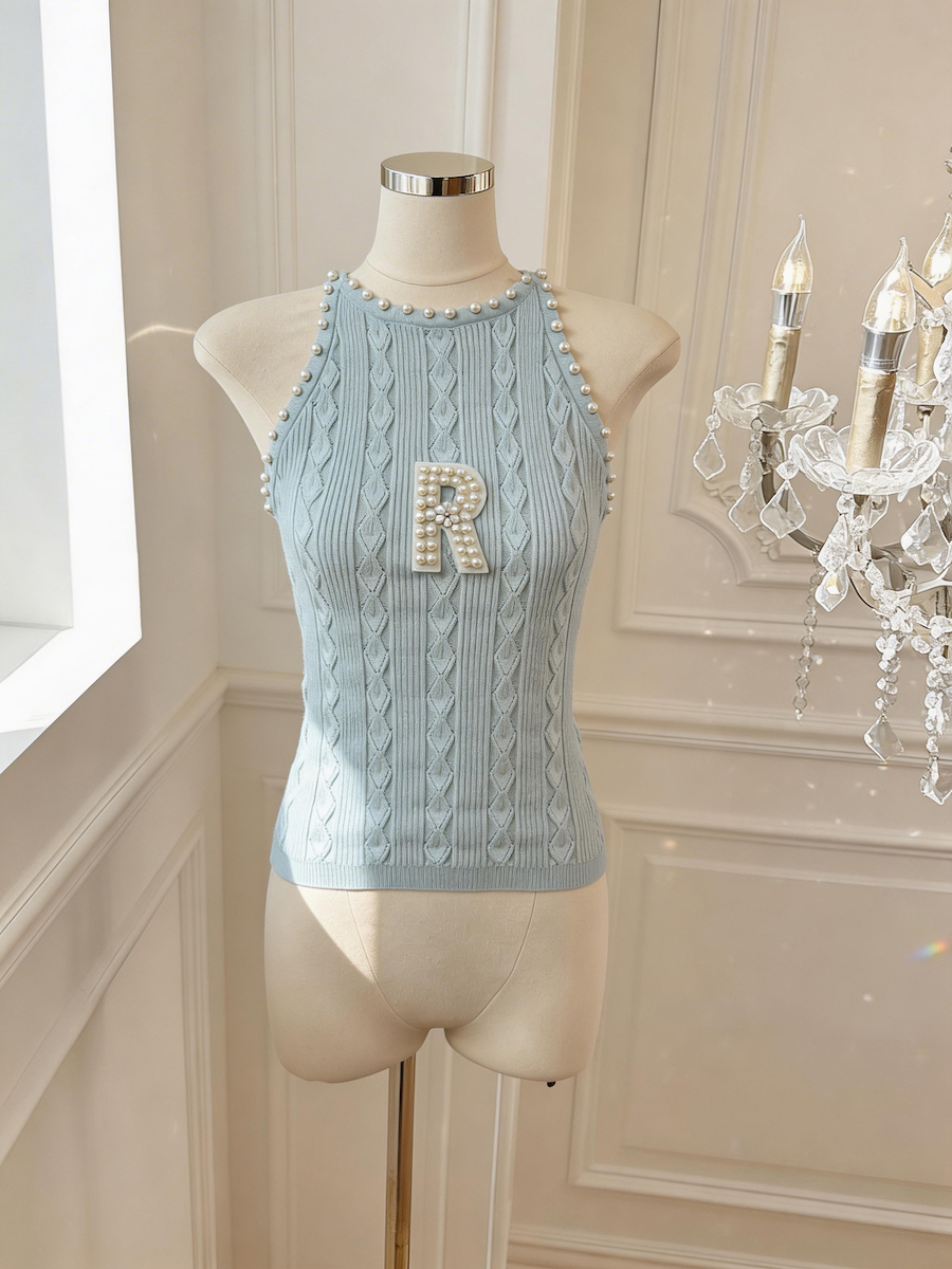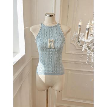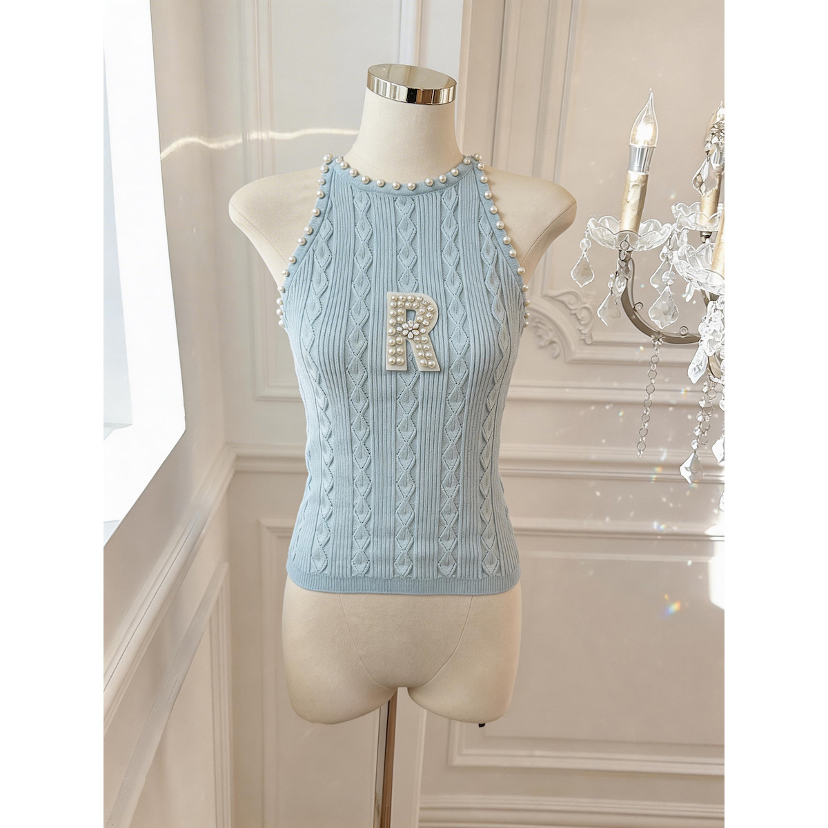 BY17548# 小香风蓝色钉珠吊带背心女夏季新款甜美显瘦外穿上衣 服裝批發女裝批發服飾貨源