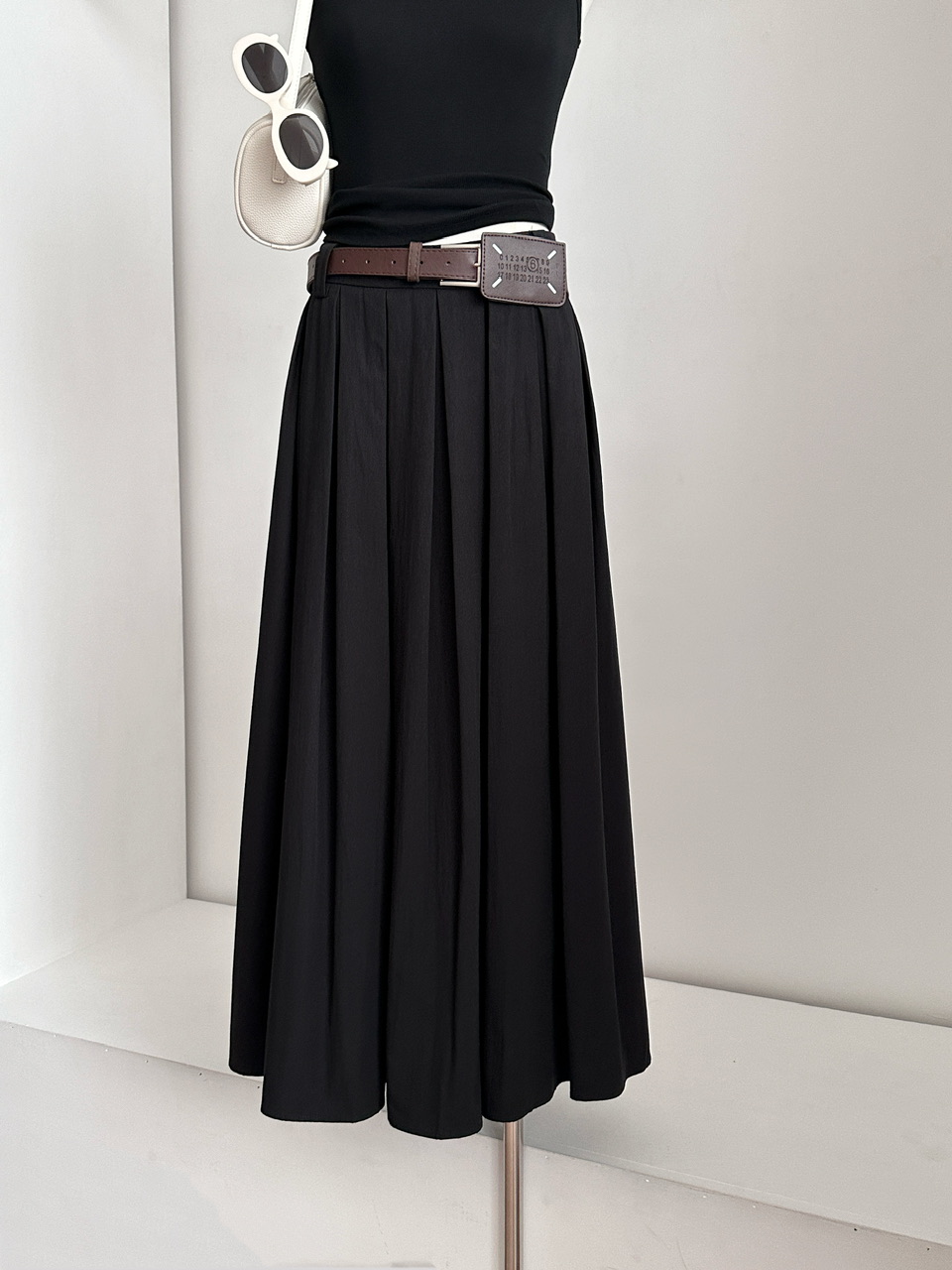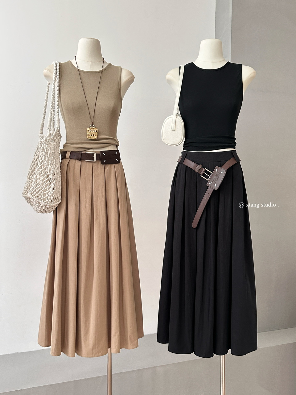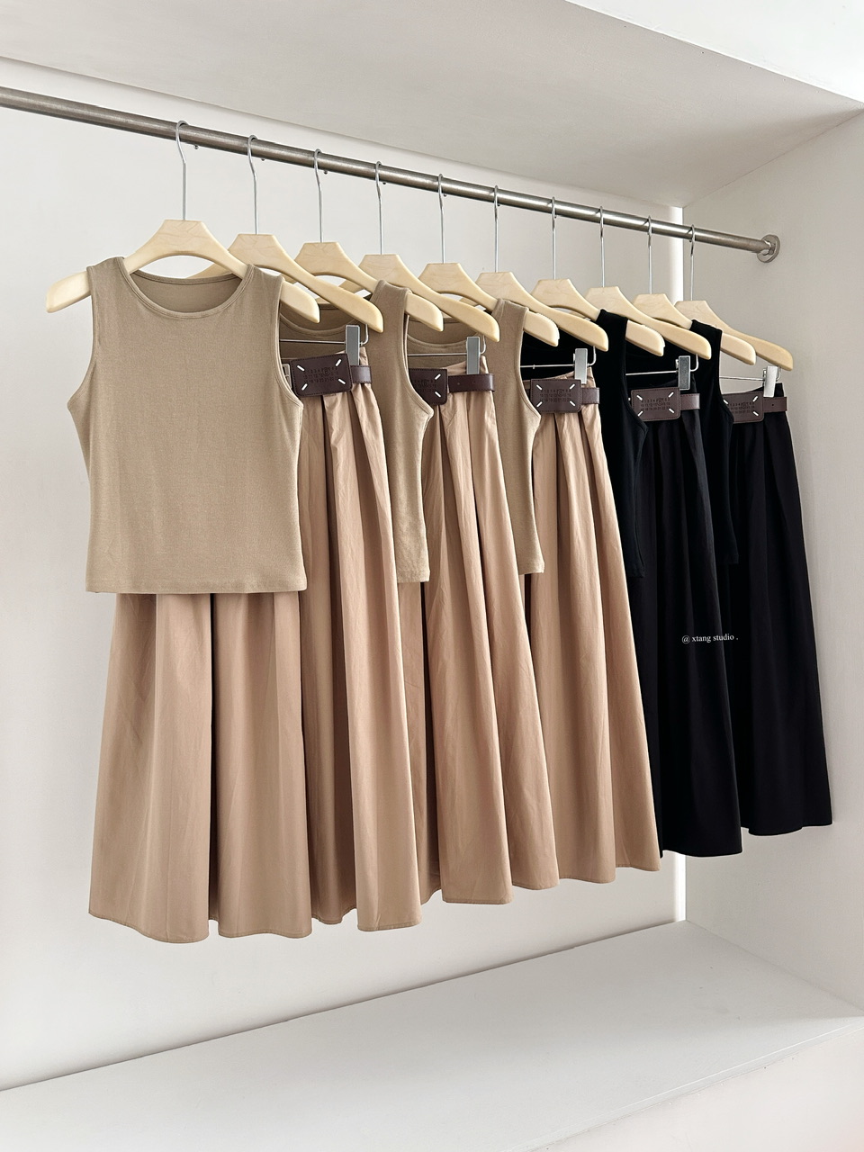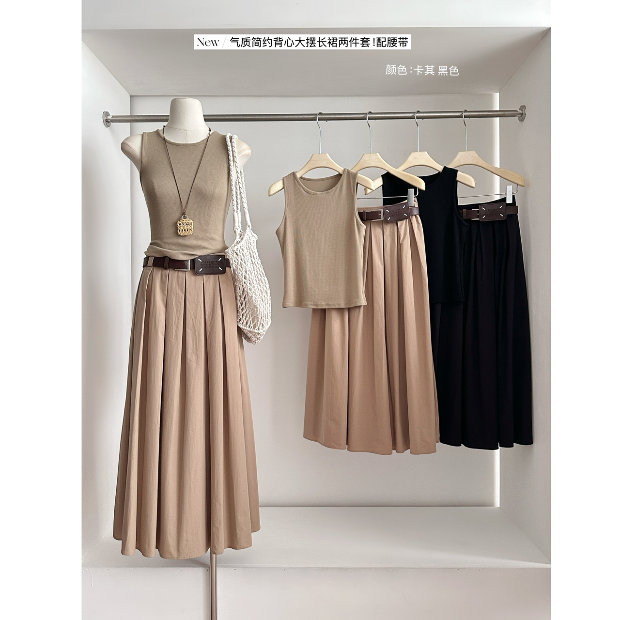 BY17672# 高知千金气质简约无袖背心长裙两件套女春夏半身裙套装配腰带 服裝批發女裝批發服飾貨源