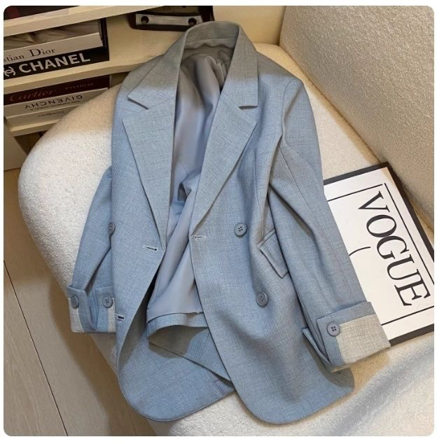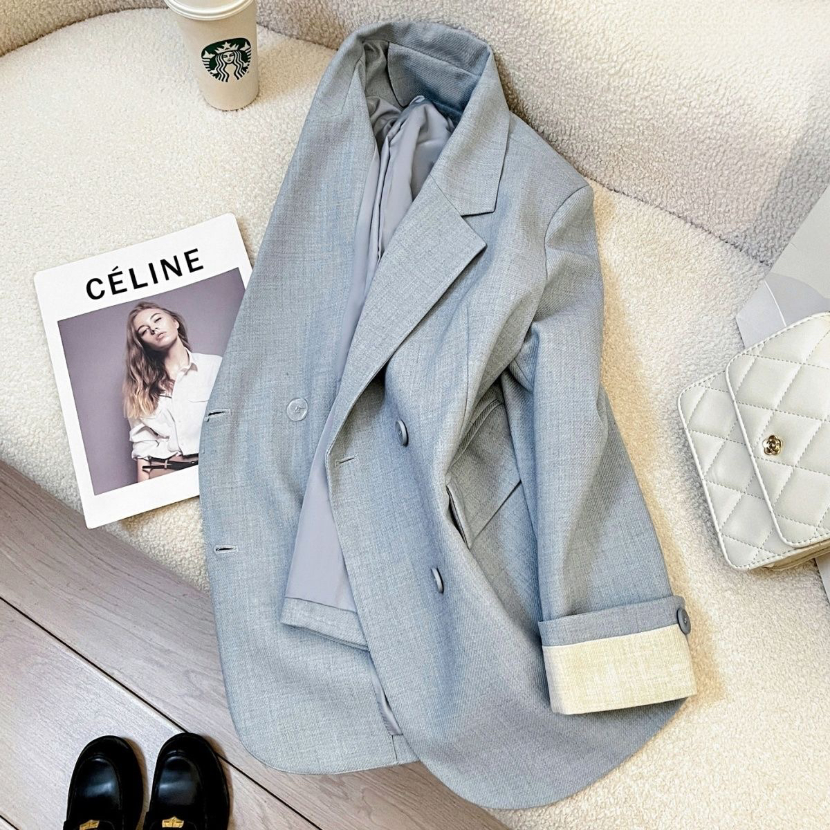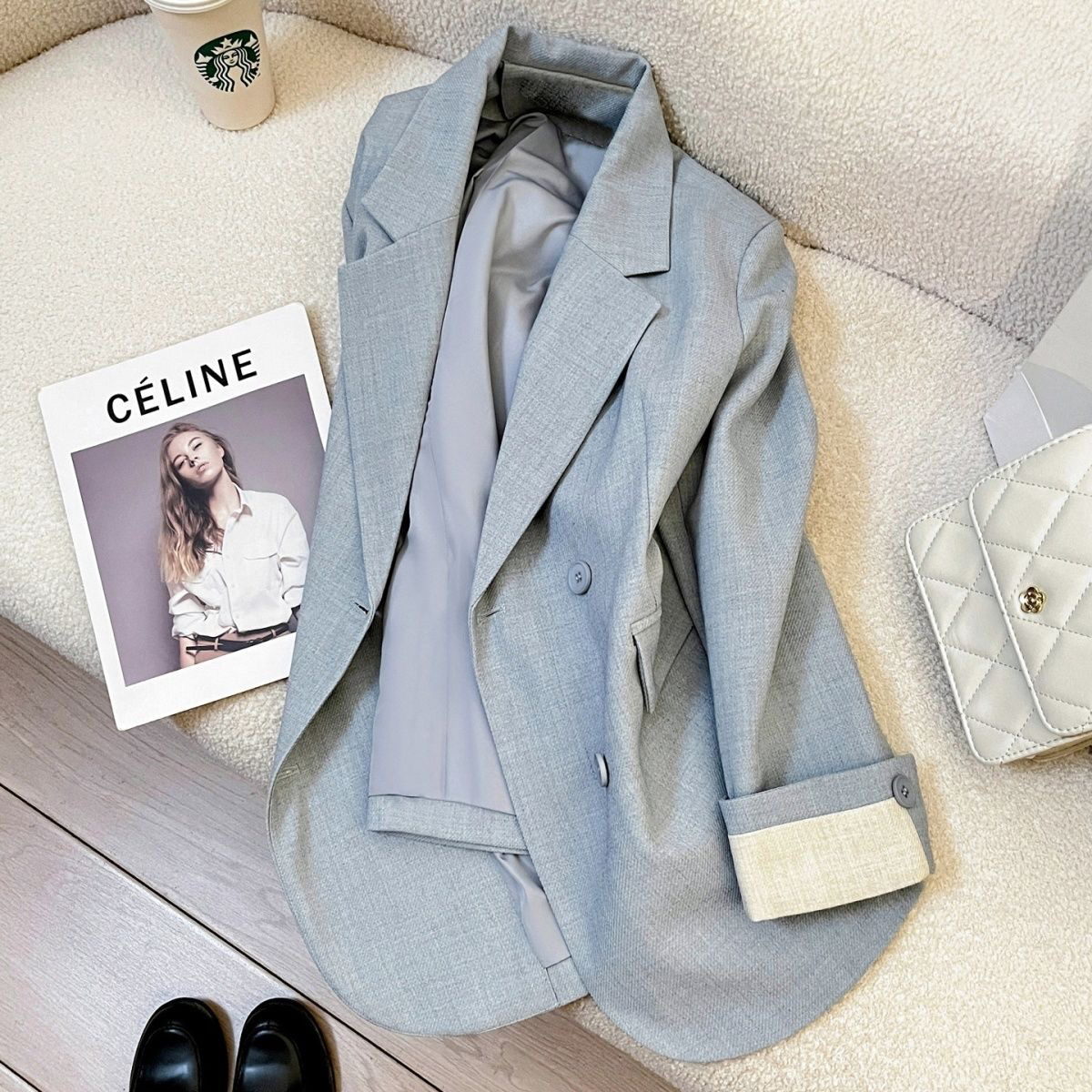 蓝色时尚设计感西装外套女春秋季新款韩版炸街气质休闲小西服 服裝批發女裝批發服飾貨源