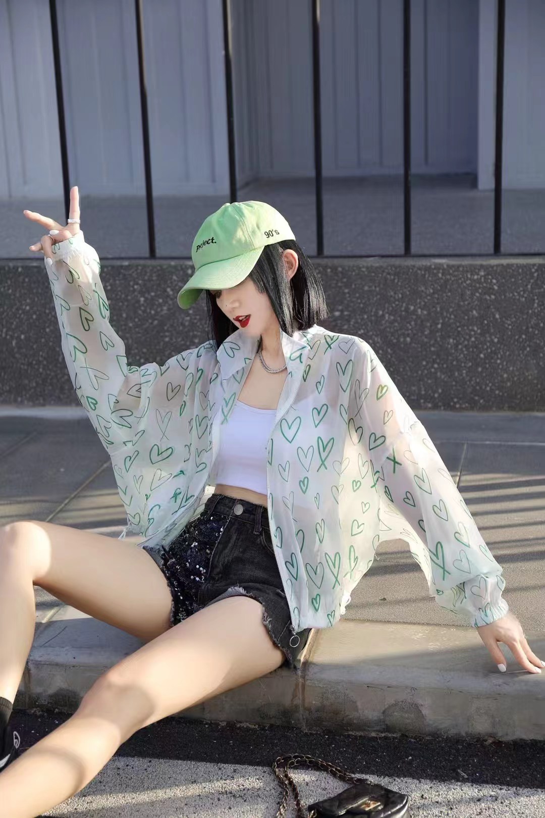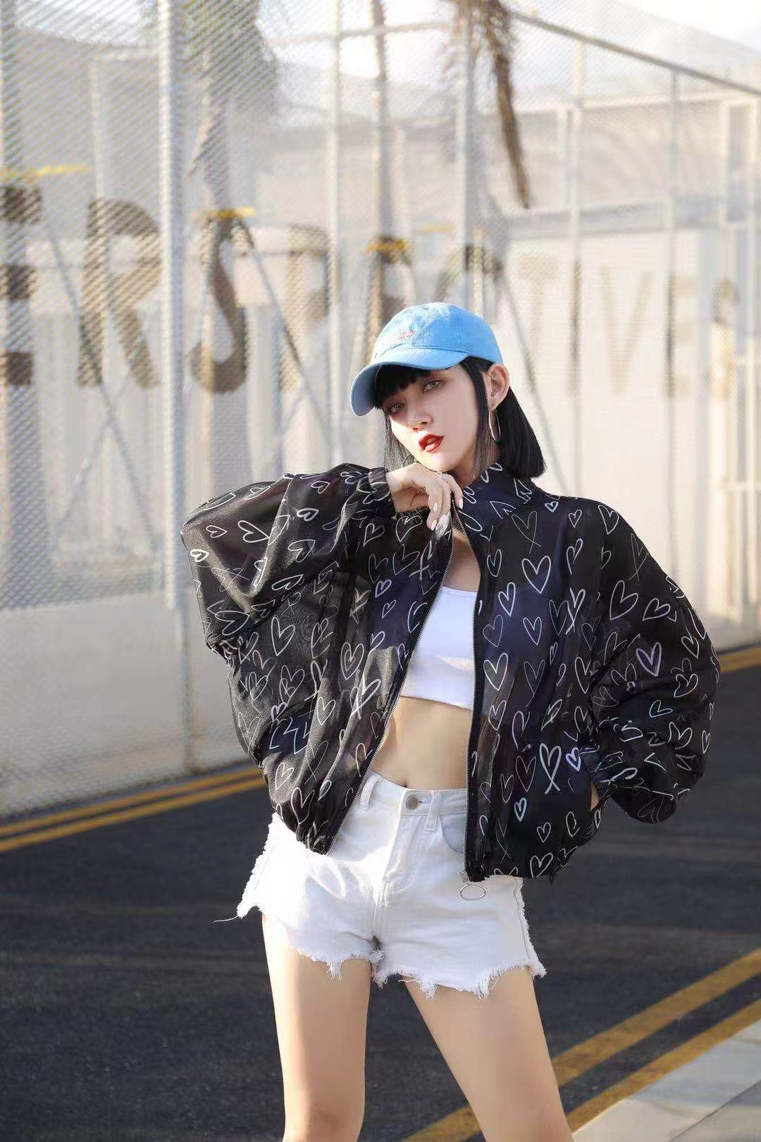 防晒上衣女春夏新款长袖休闲宽松百搭高级感爱心透视薄款外套 服裝批發女裝批發服飾貨源