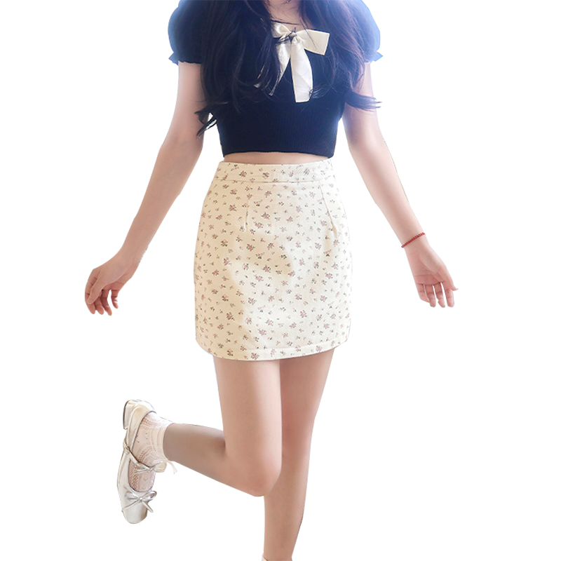 BY18491# 温柔风韩系小碎花牛仔短裙高腰显瘦直筒修身包臀a字半身裙 服裝批發女裝批發服飾貨源