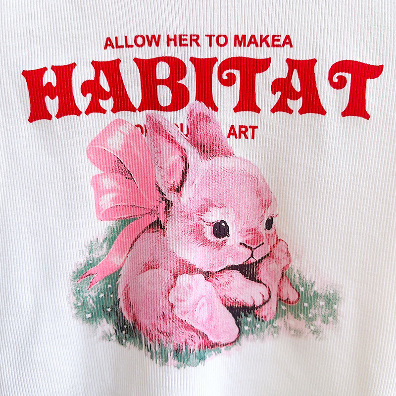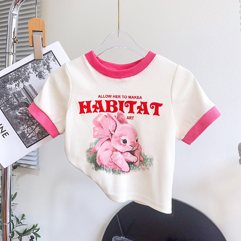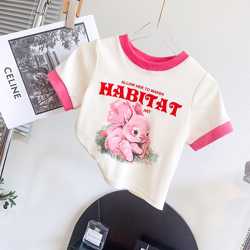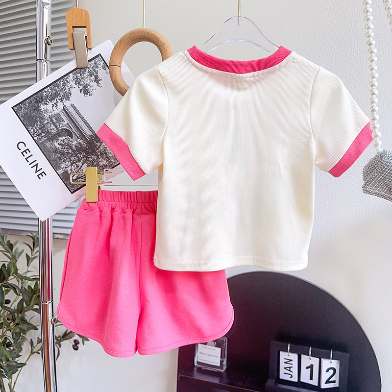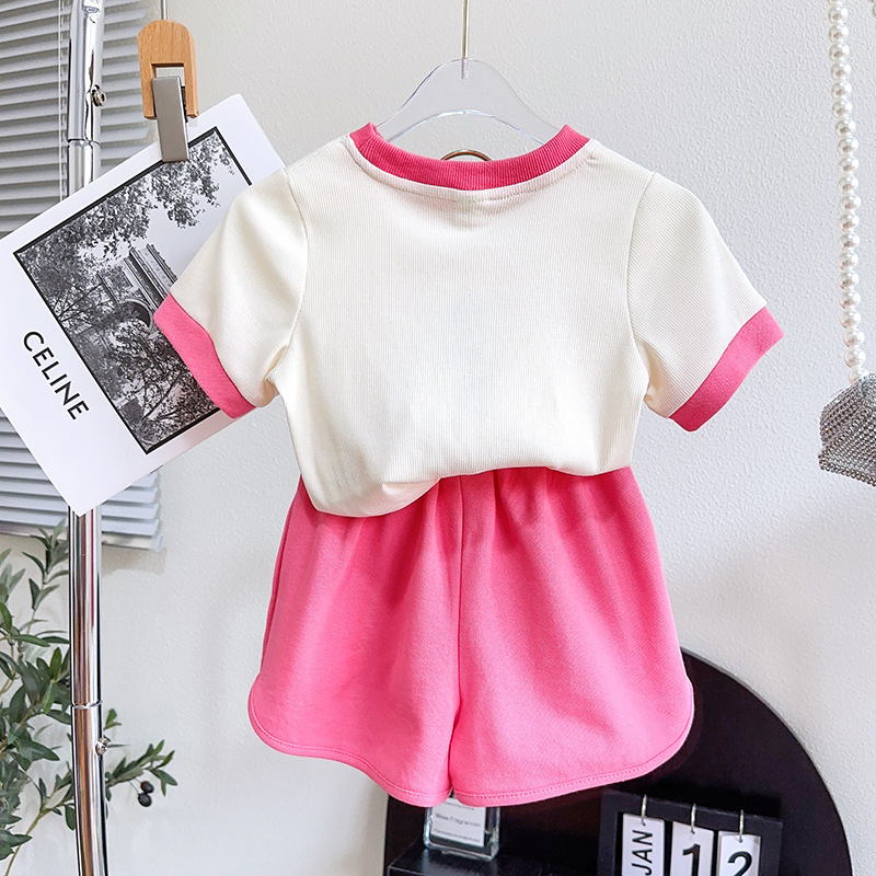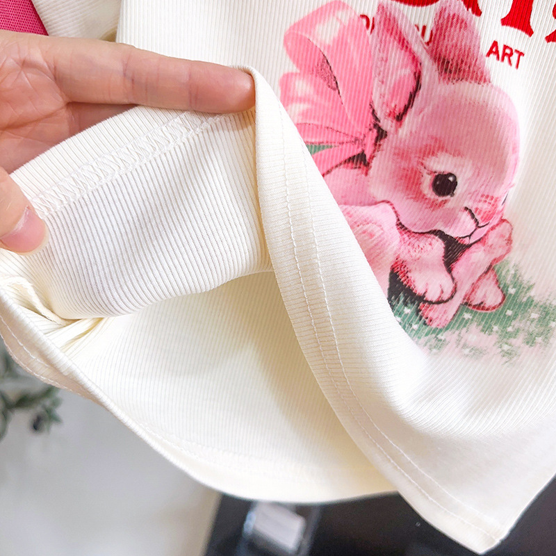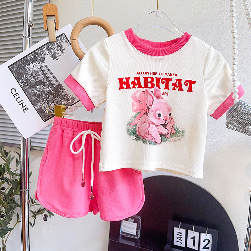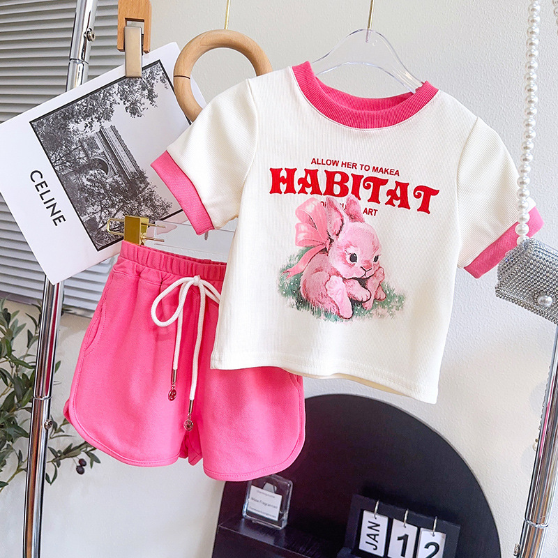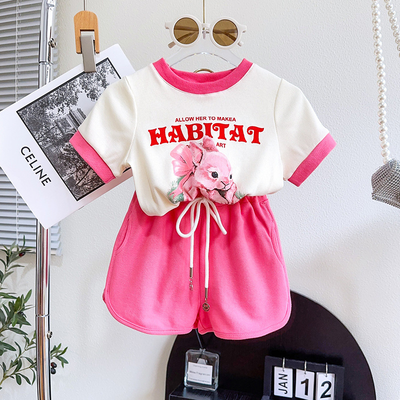 TR74679# 女童套装夏季新品小兔子印花时尚休闲T恤短裤两件套一件代发 童装批发童装服饰