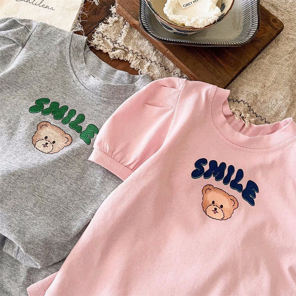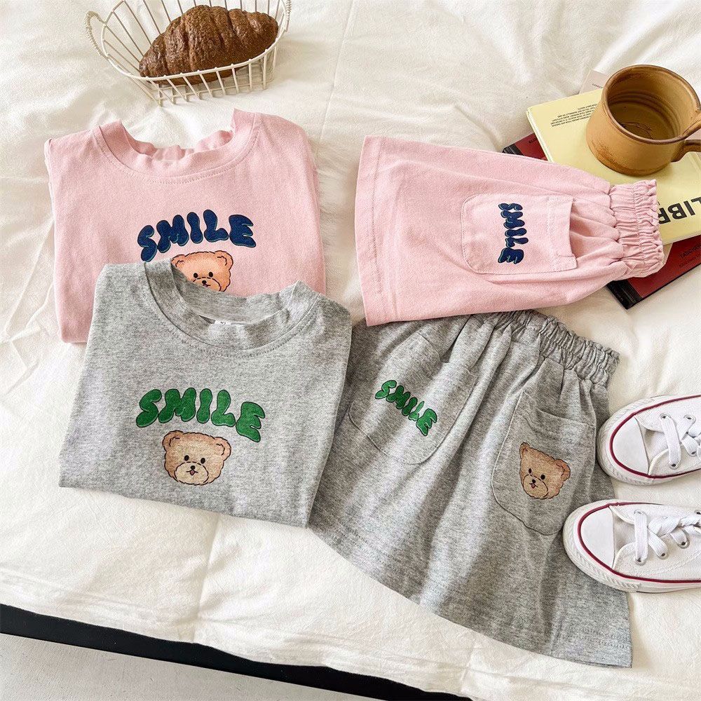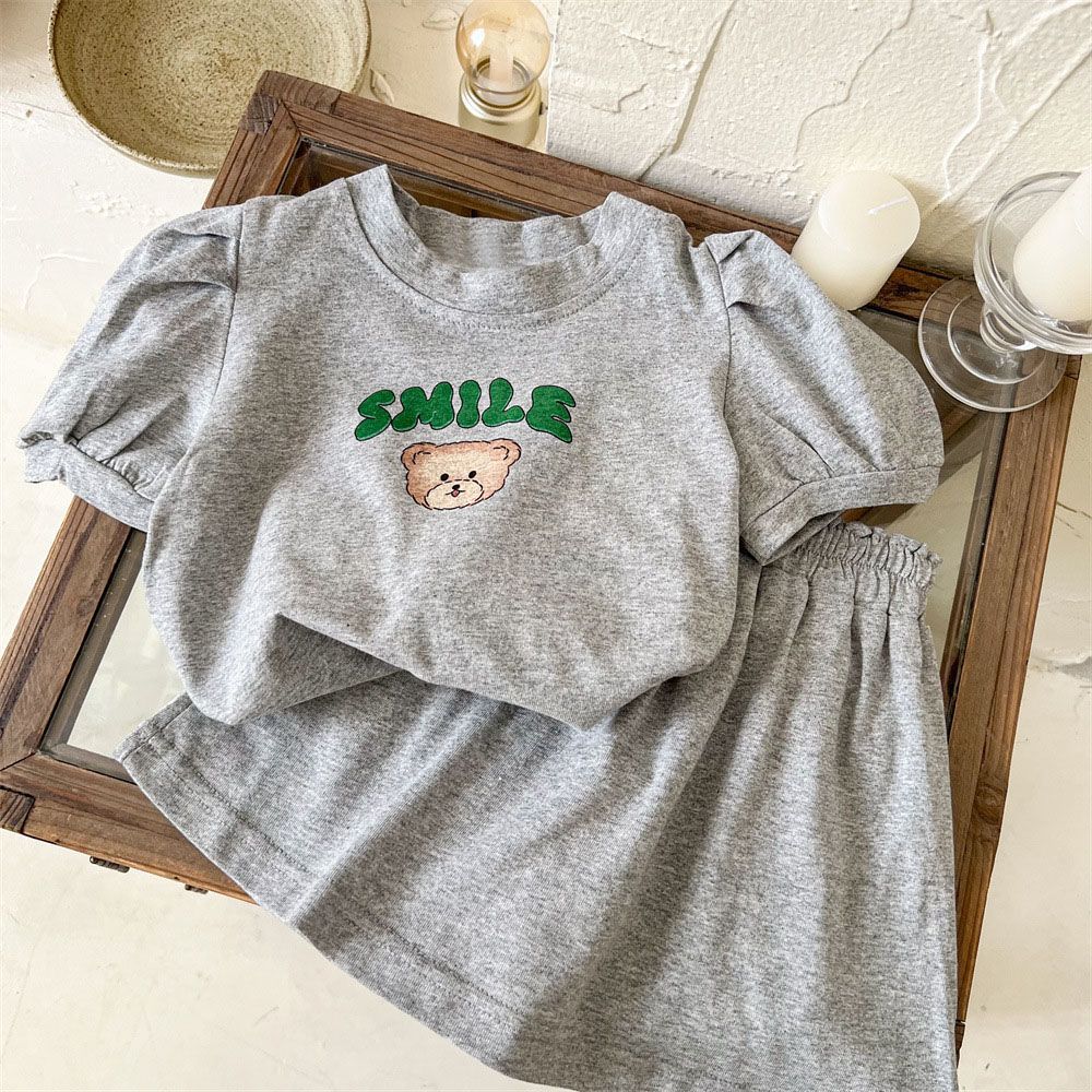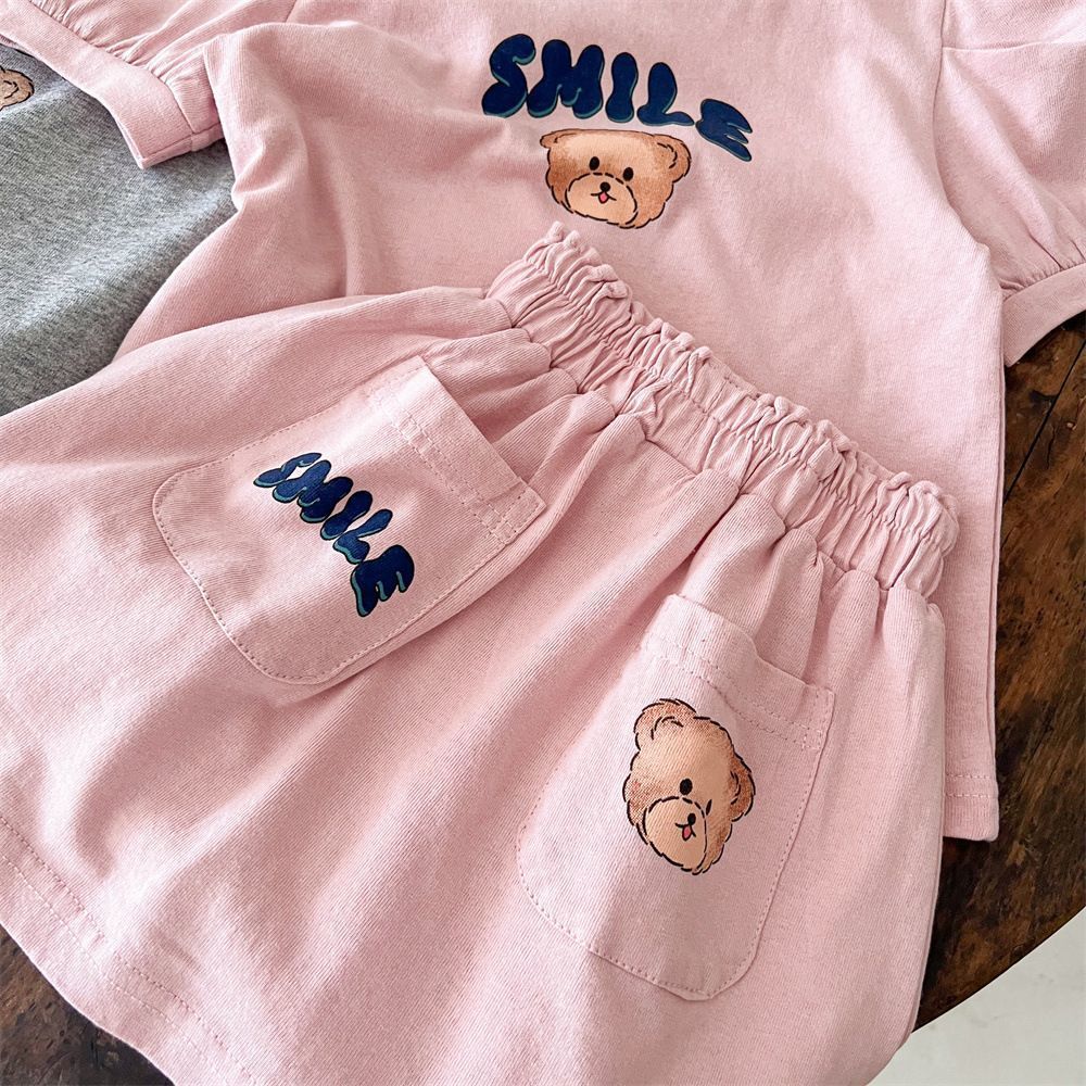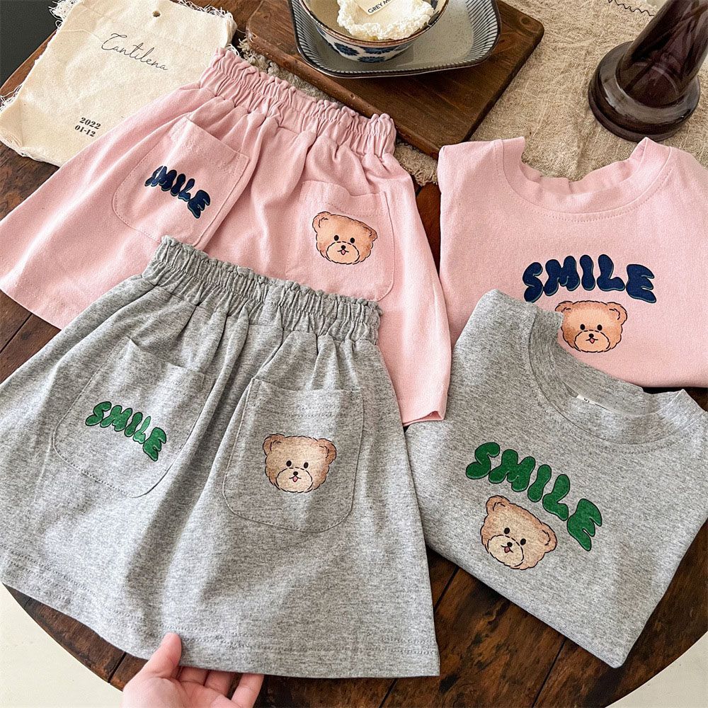 LN14371# 韩版女童裙套装夏季ins儿童印花短袖T恤半身裙两件套宝宝时髦夏装
