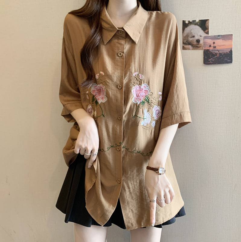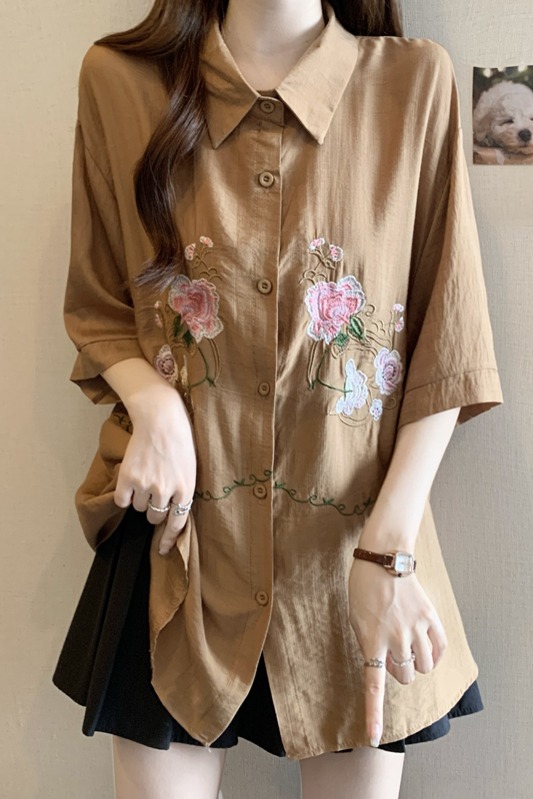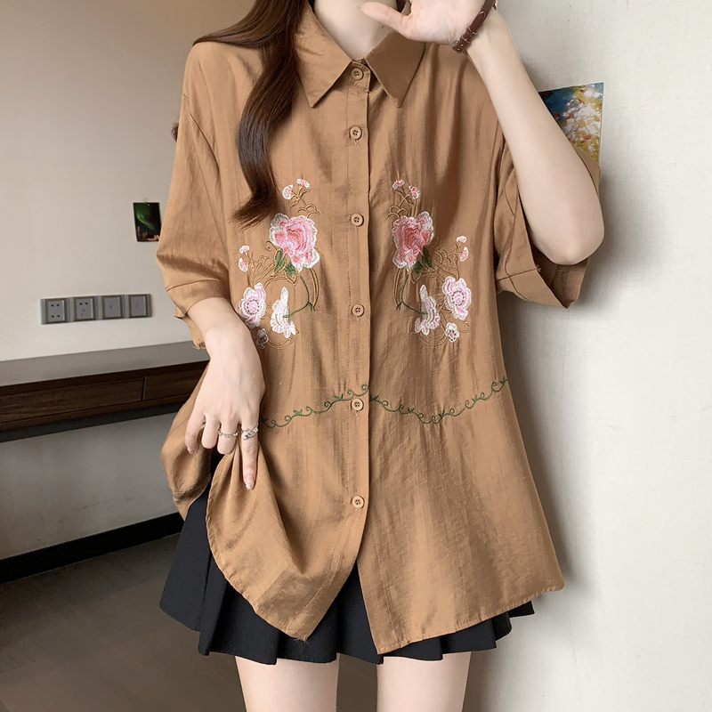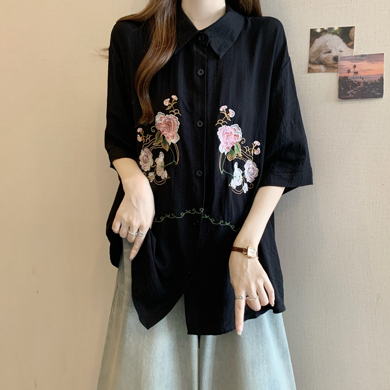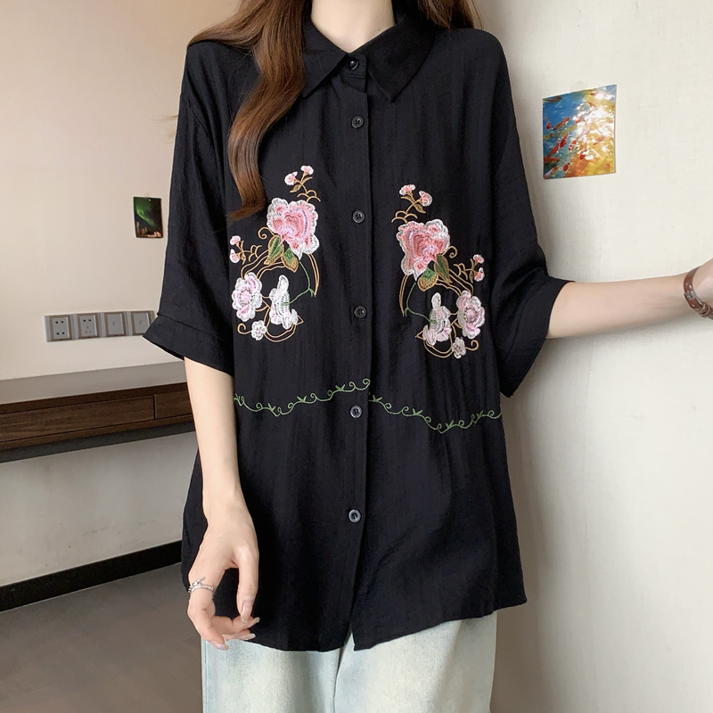 首页 > 短袖雪纺衫、衬衫、上衣 > FA35892# 大码女装夏装v领短袖衬衫复古刺绣宽松显瘦遮肉文艺上衣 服裝批發女裝批發服飾貨源
