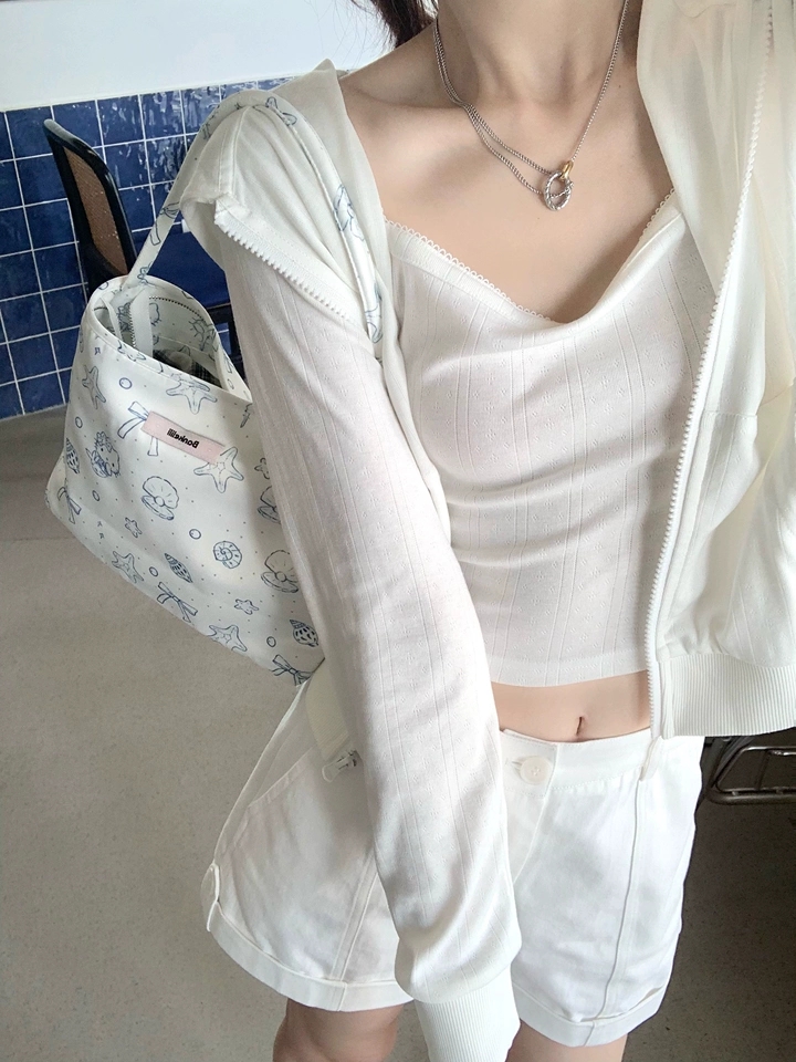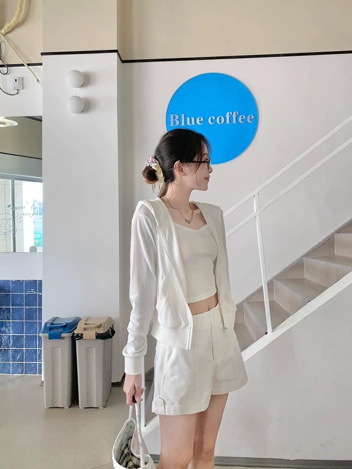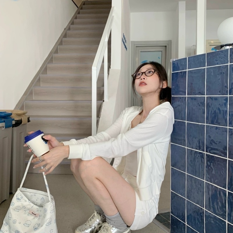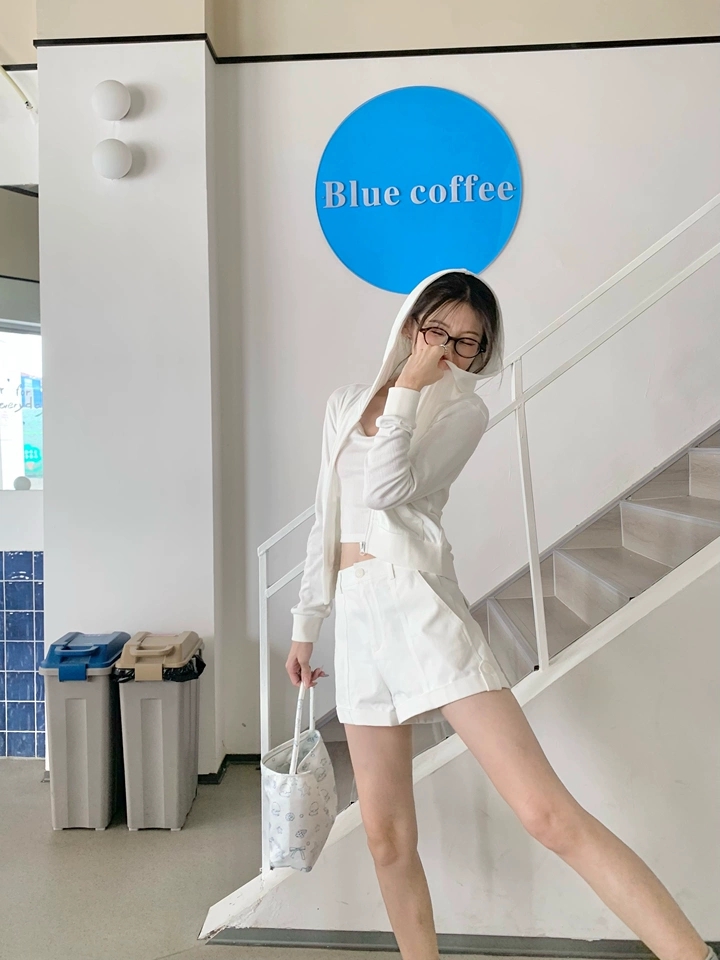 FA36523# 板栗可可'韩女设定'白色连帽上衣女薄款春秋小个子短款卫衣外套 服裝批發女裝批發服飾貨源