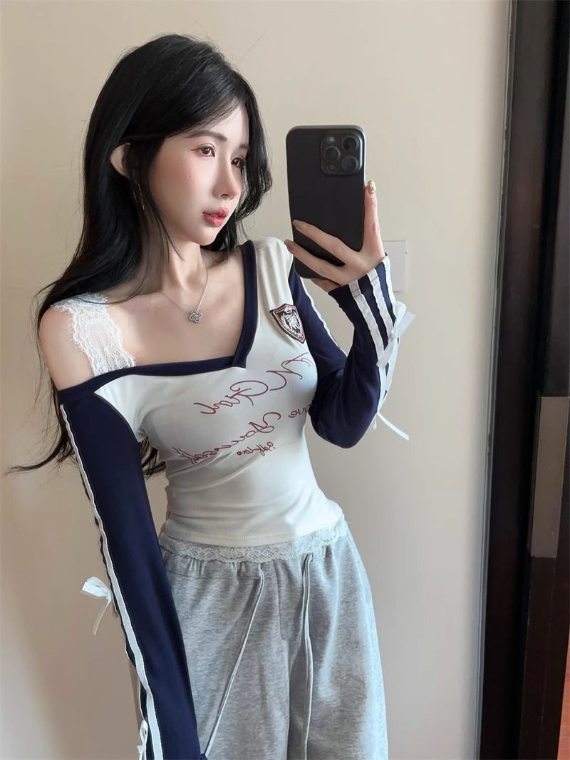 FA36527# 欧韩秋季运动风修身显瘦上衣潮辣妹V领长袖t恤女 服裝批發女裝批發服飾貨源