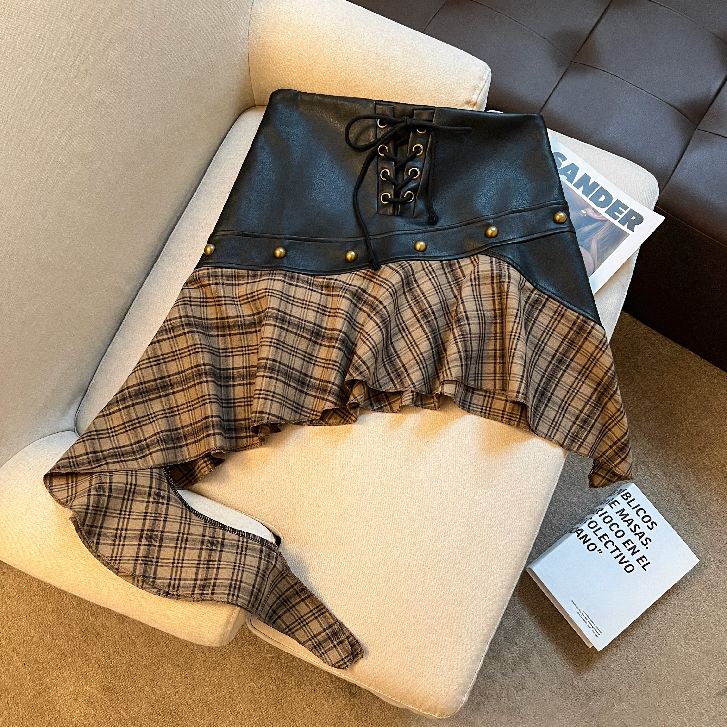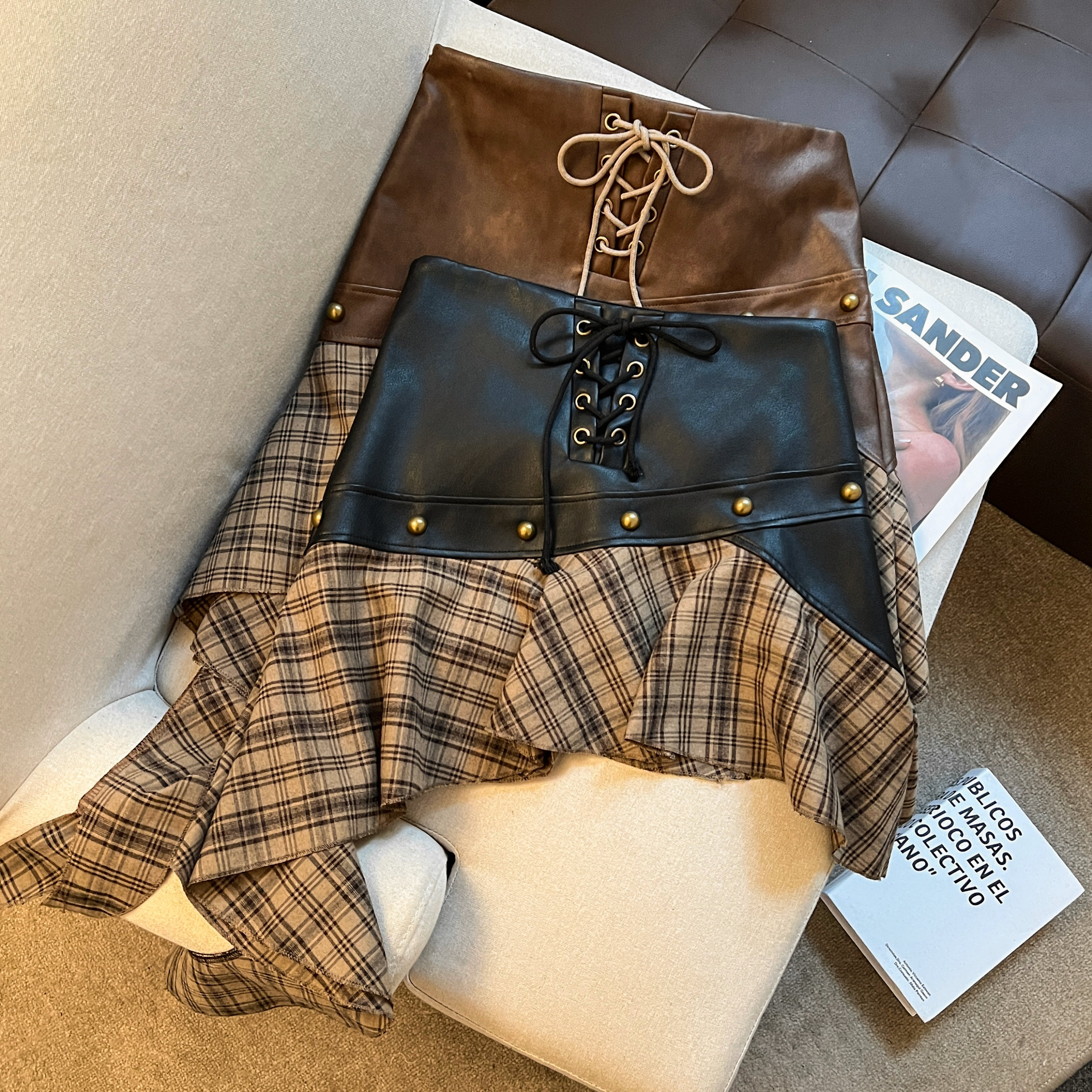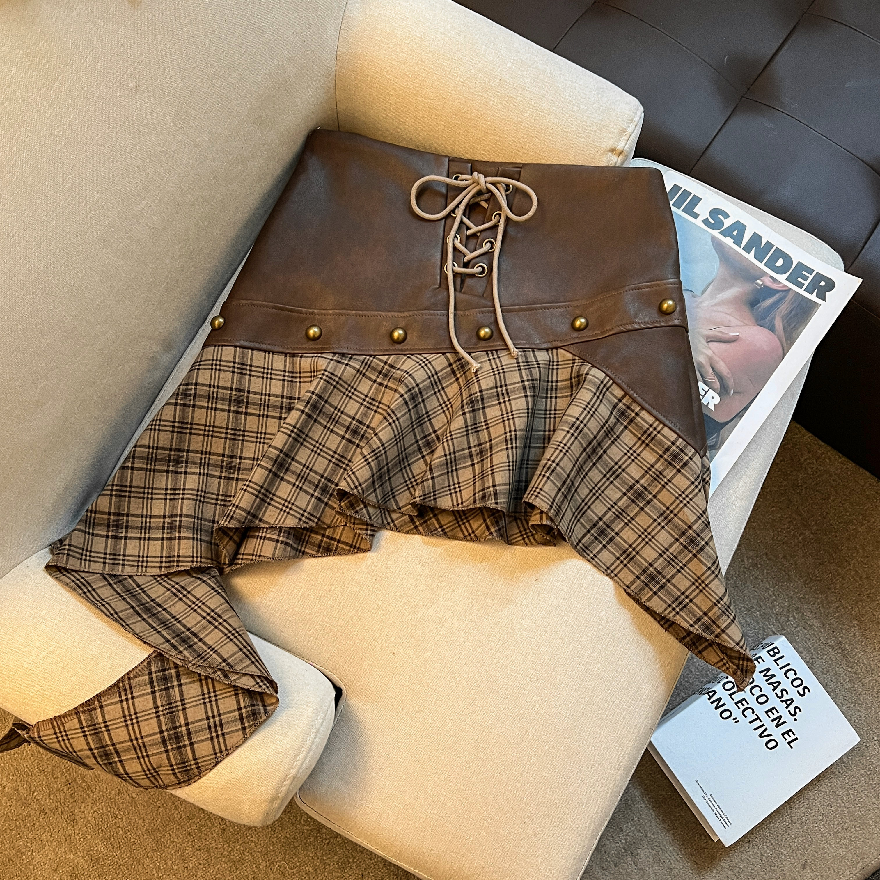 FA36531# 美式辣妹沙丘废土风美拉德穿搭半身裙设计感不规则棕色短裙 服裝批發女裝批發服飾貨源