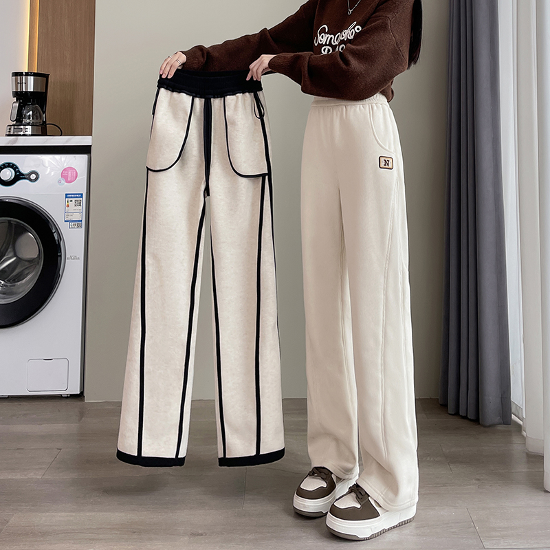 FA46391# 新款羊毛蚕丝香蕉裤阔腿裤女加绒加厚休闲运动裤拖地裤 服裝批發女裝批發服飾貨源