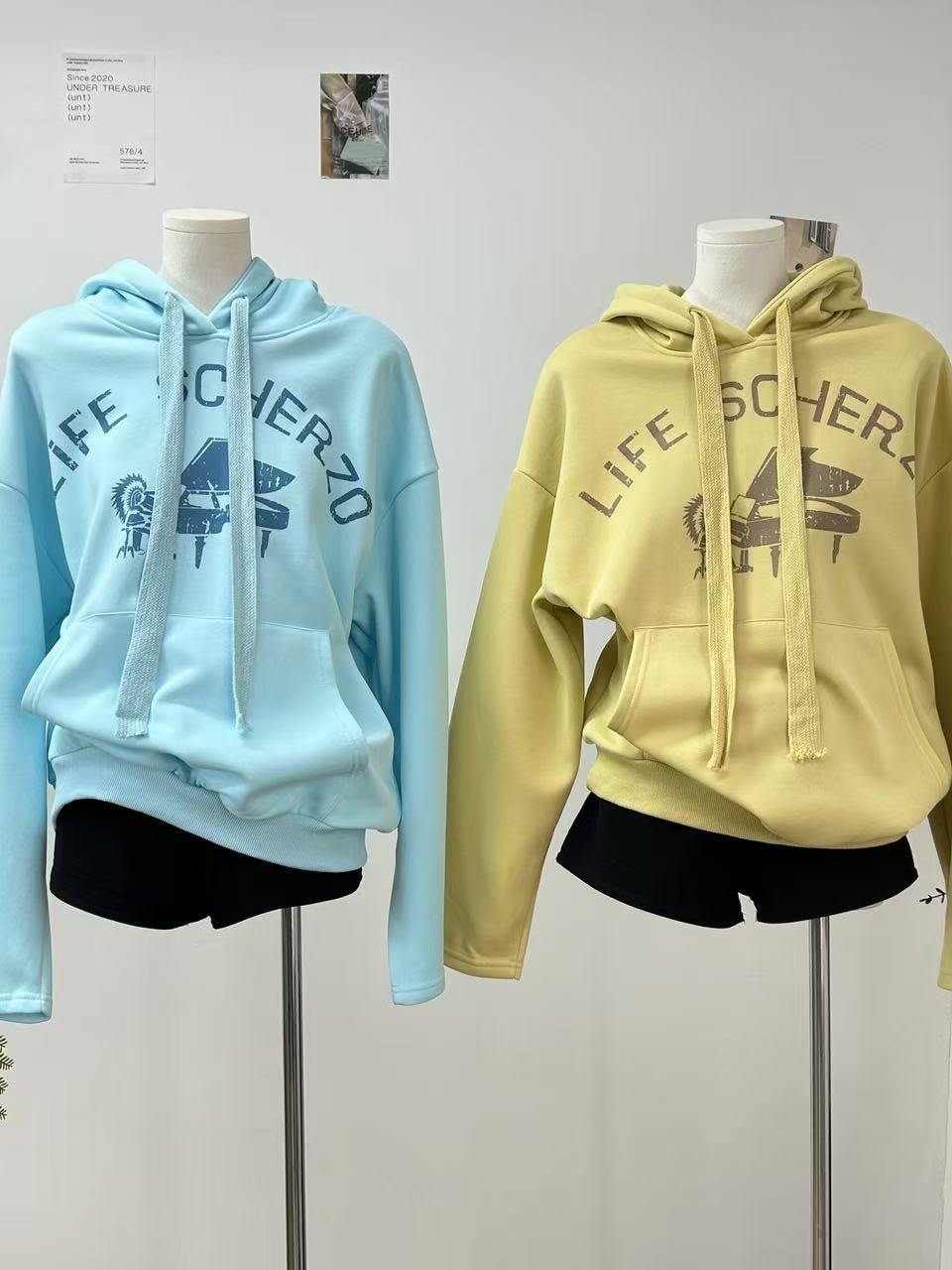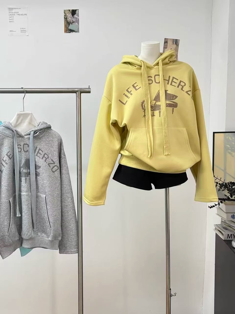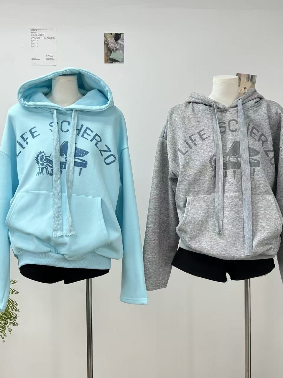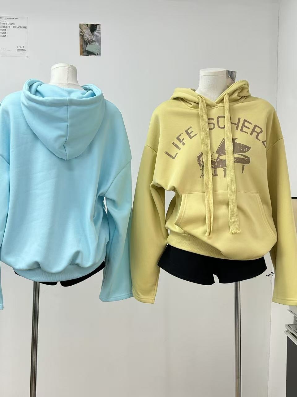 FA47334# 华棉复合连帽磨毛卫衣外套女冬季美式复古宽松慵懒风印花长袖上衣 服裝批發女裝批發服飾貨源