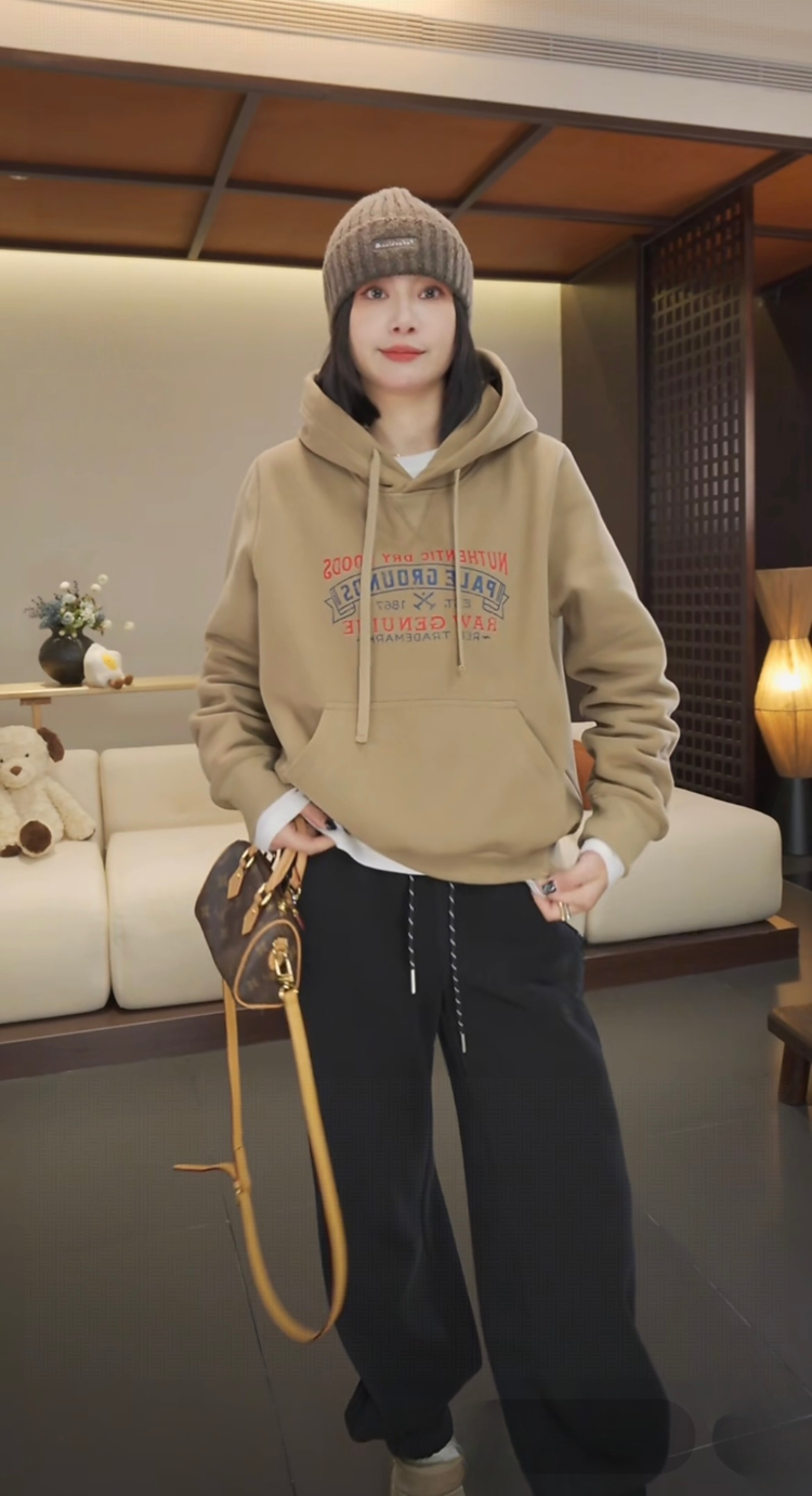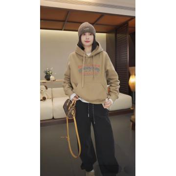 FA47338# 美式复古字母印花连帽加绒卫衣女秋冬新款宽松慵懒风叠穿上衣外套 服裝批發女裝批發服飾貨源