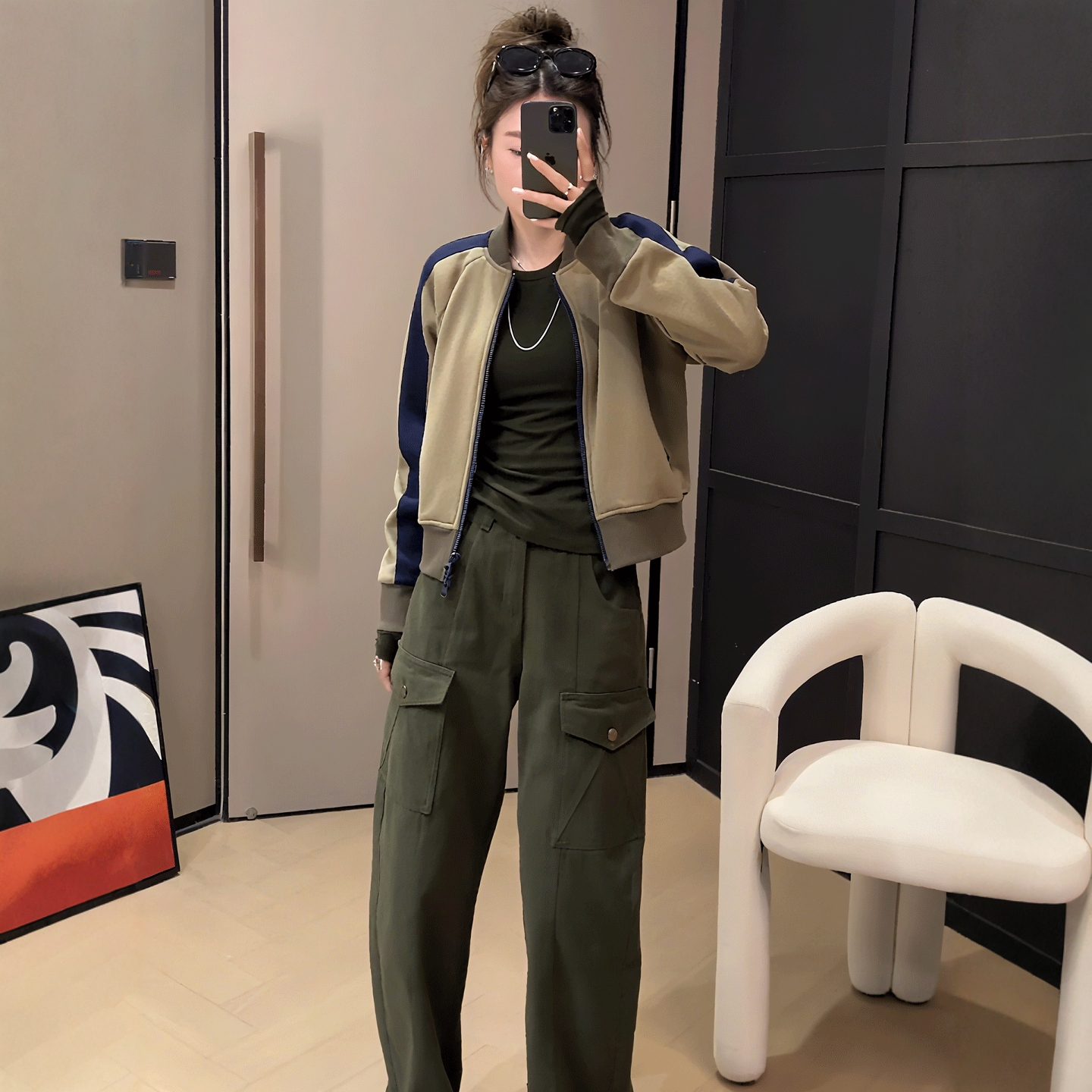 FA47339# 巨好看的独特漂亮的初冬外套新款今年流行爆款拼色短款上衣女 服裝批發女裝批發服飾貨源