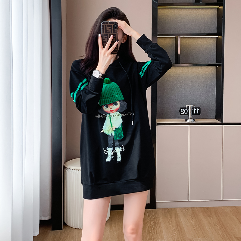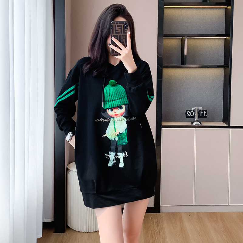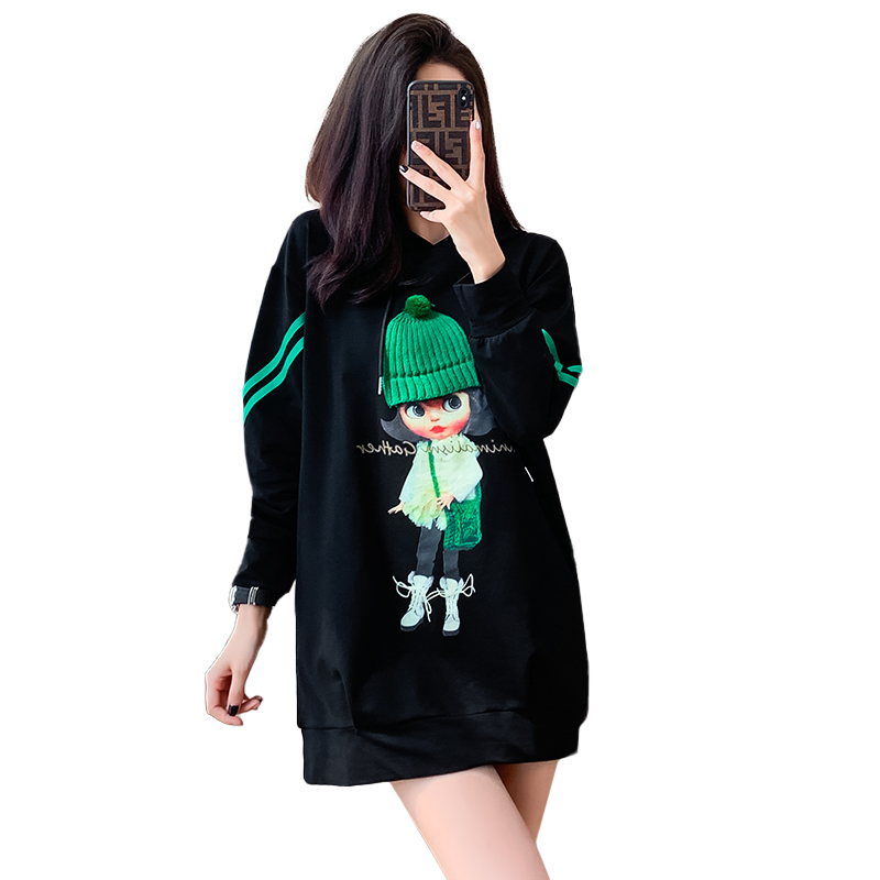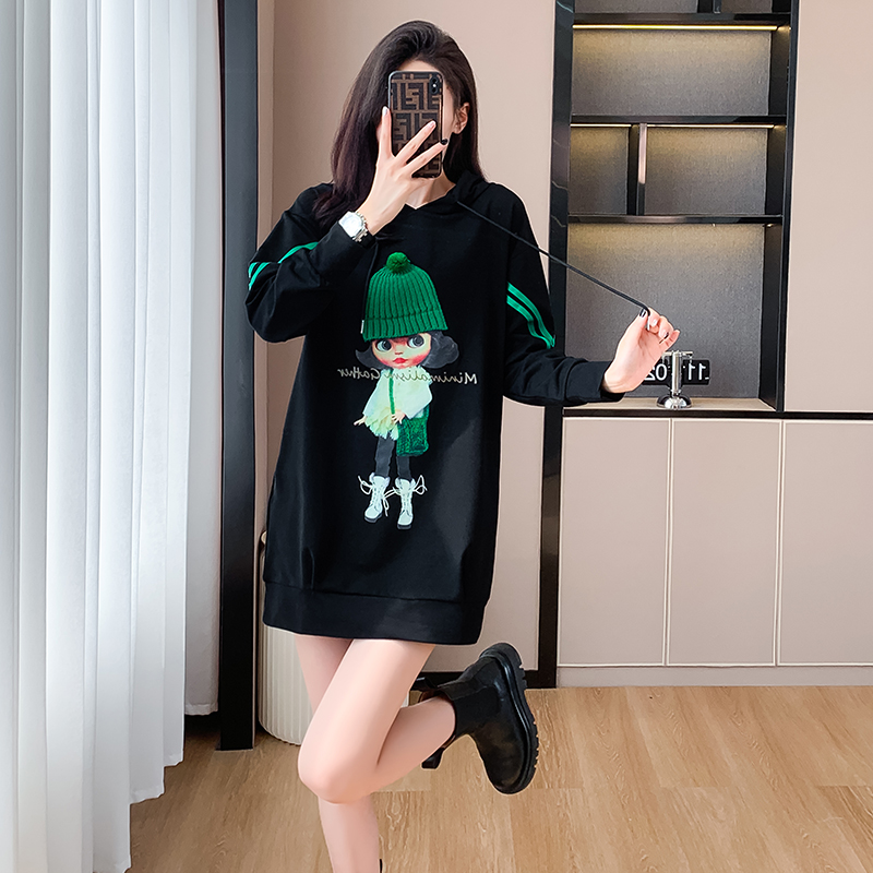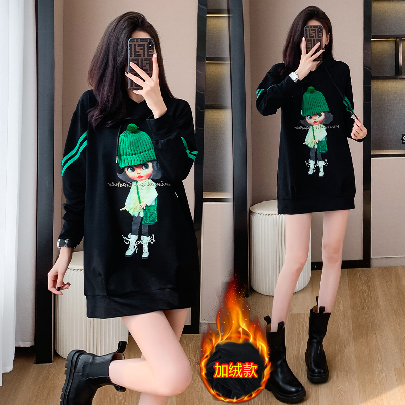 FA47350# 设计感洋气减龄显瘦加绒时尚休闲连帽中长款卫衣大码百搭韩版外套 服裝批發女裝批發服飾貨源