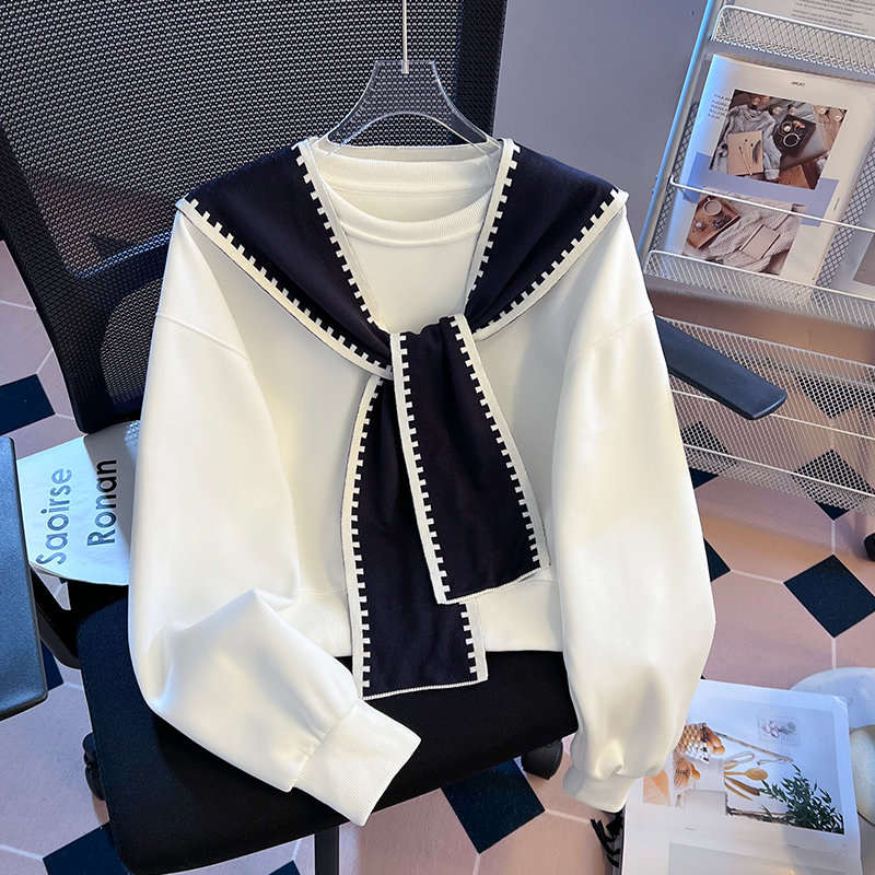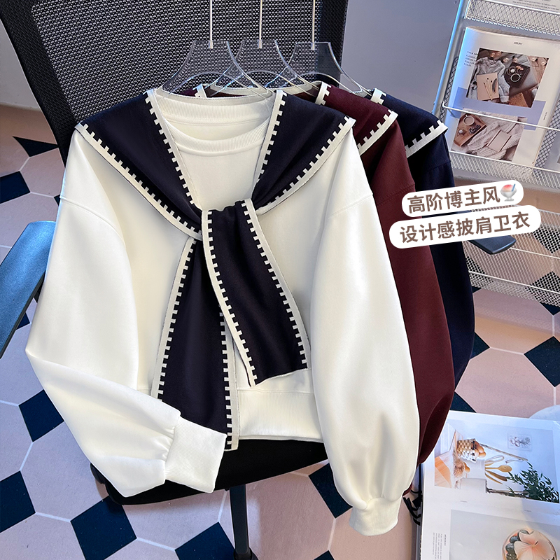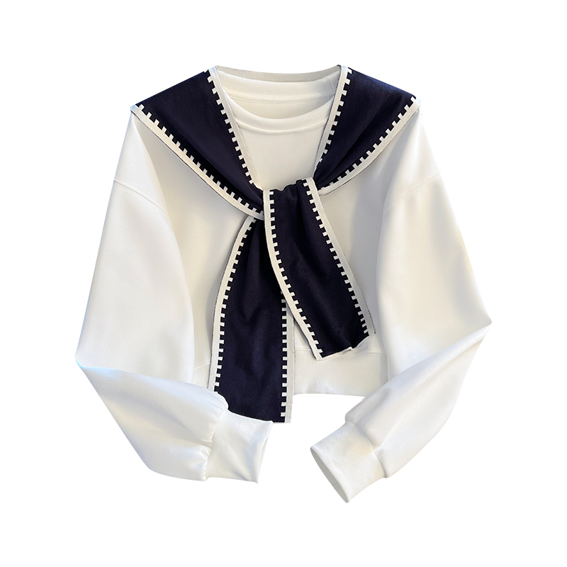 FA47356# 秋冬新款轻奢针织条纹批肩简约圆领小个子短款卫衣女 服裝批發女裝批發服飾貨源