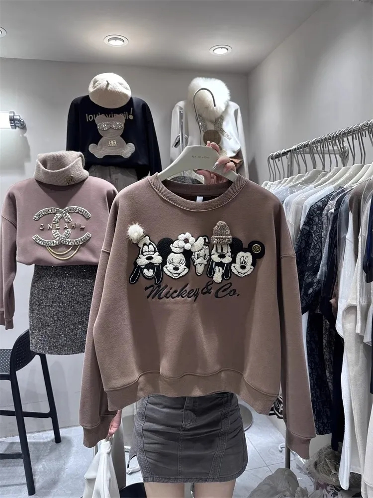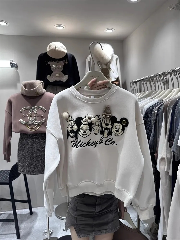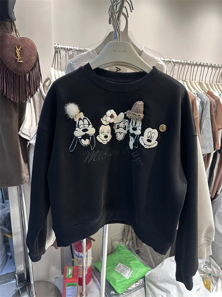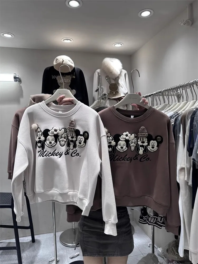 FA47382# 秋冬新款女装短外套宽松欧货重工刺绣米奇长袖套头加绒卫衣小个子 服裝批發女裝批發服飾貨源