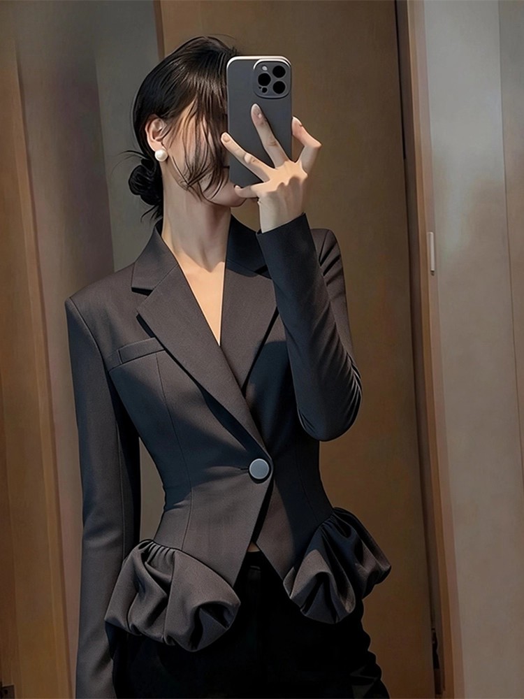FA47594# 巨好看的早秋外套新款高端时髦洋气独特漂亮气质掐腰黑色上衣 服裝批發女裝批發服飾貨源