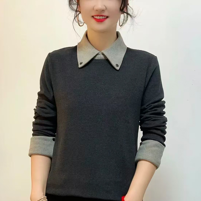 FA47690# 冬装新款德绒长袖t恤小众翻领上衣气质百搭打底衫 服裝批發女裝批發服飾貨源