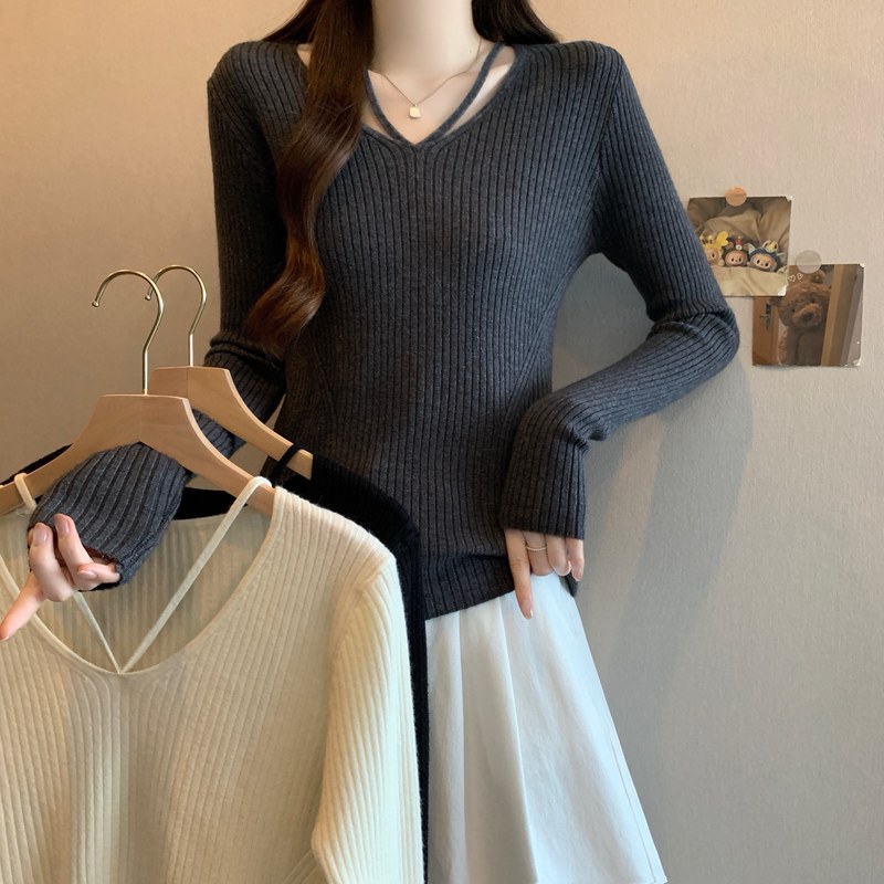 FA47789# 秋冬大码胖mm性感V领坑条针织衫女辣妹纯欲风长袖打底毛衣女 服裝批發女裝批發服飾貨源