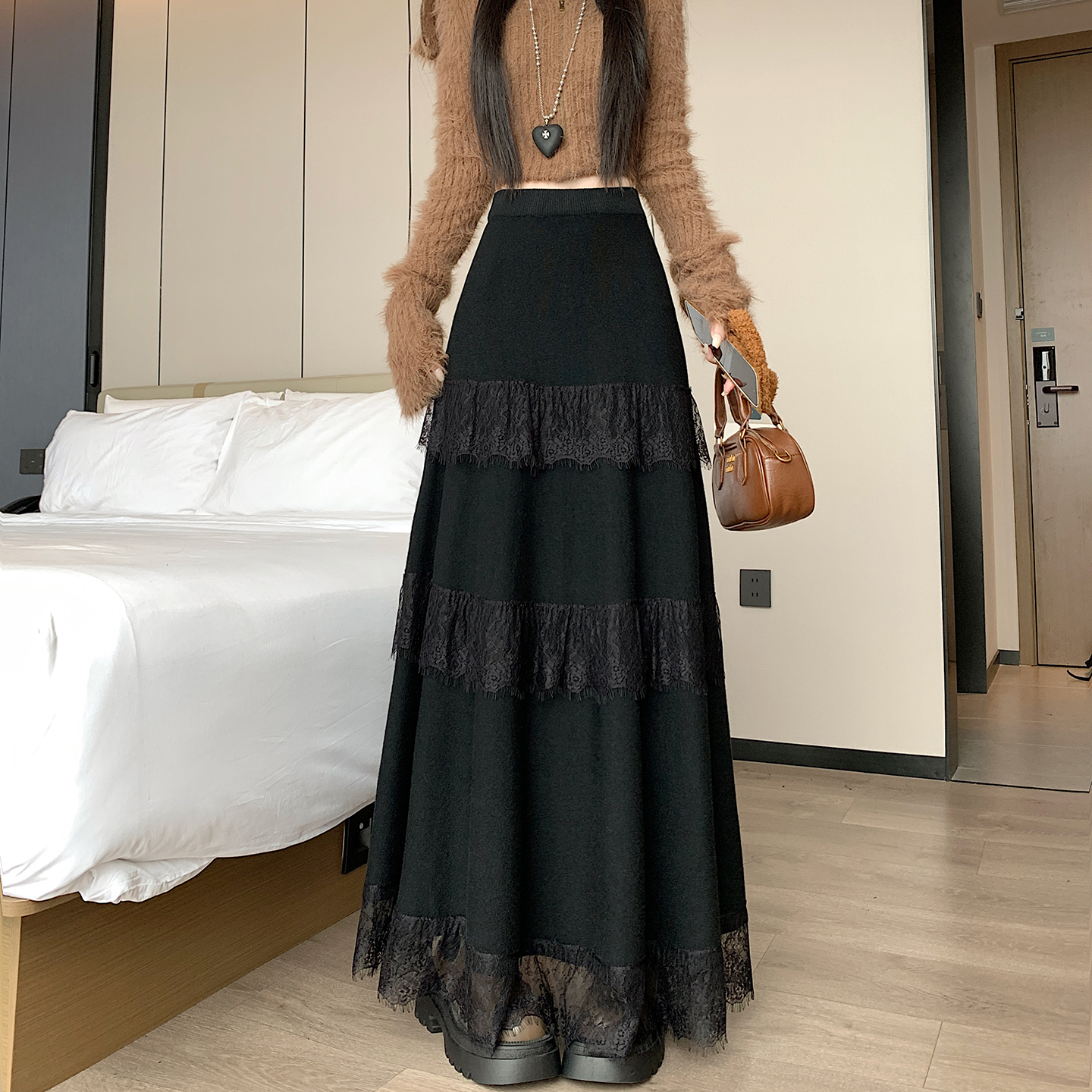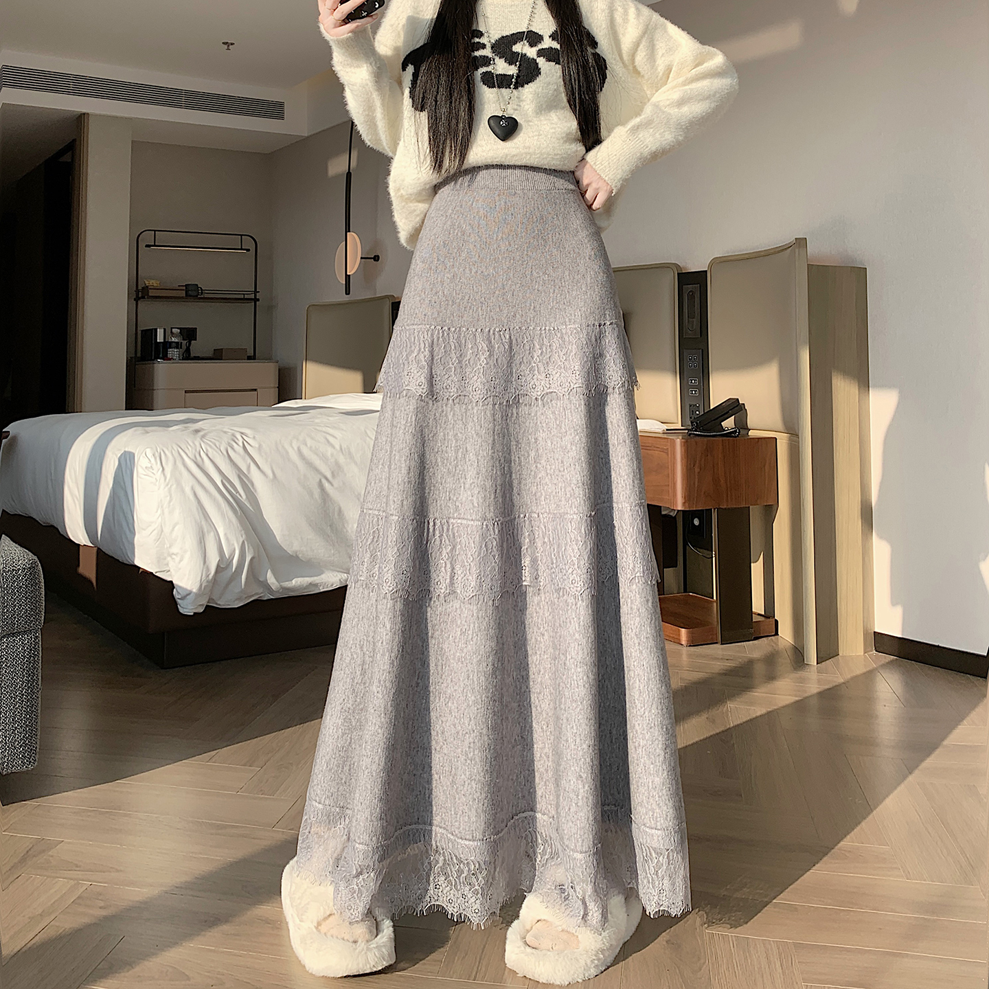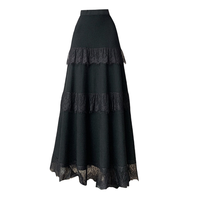 FA47792# 蕾丝花边蛋糕裙半身裙女秋冬新款垂感软糯针织长裙叠穿内衬裙 服裝批發女裝批發服飾貨源