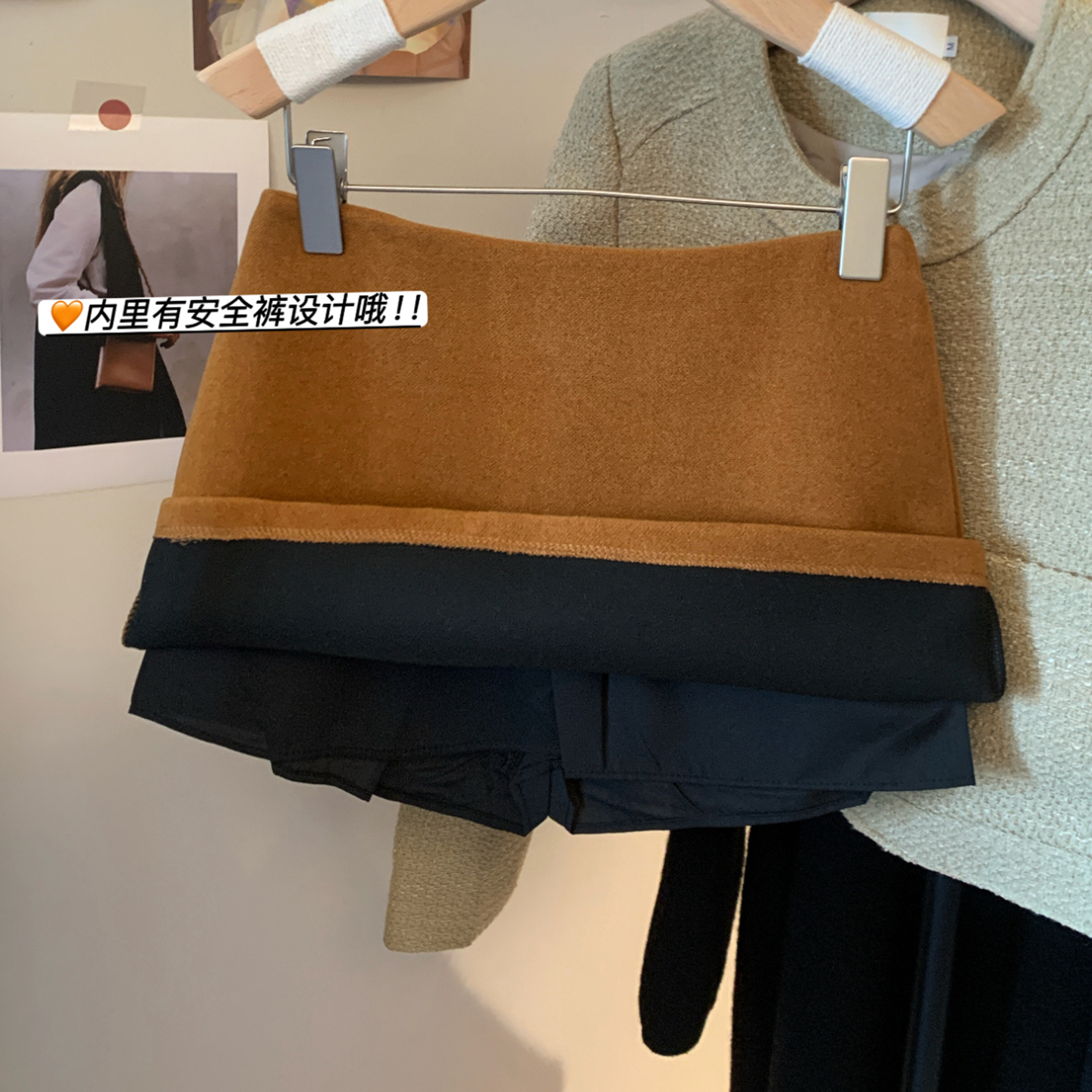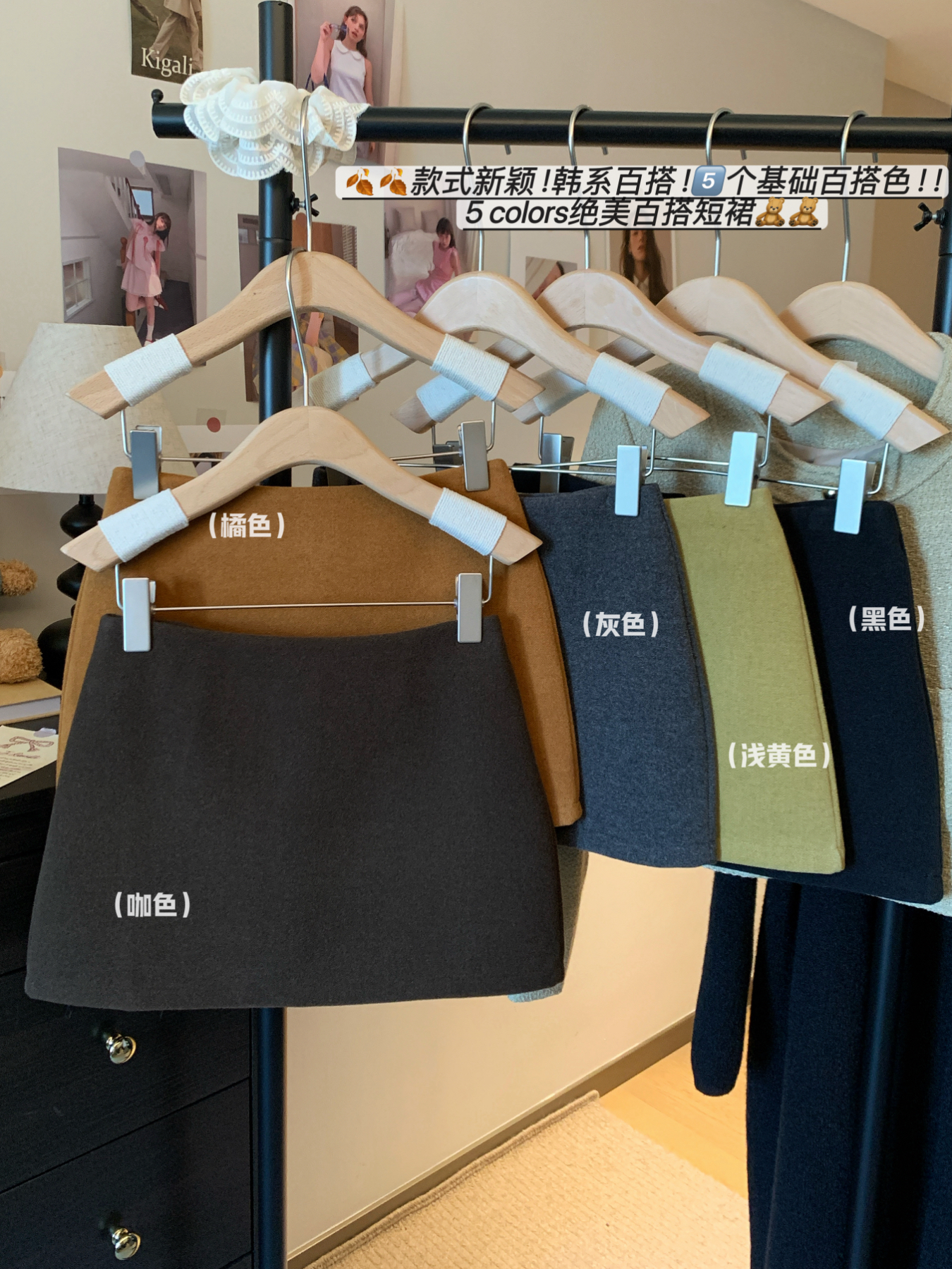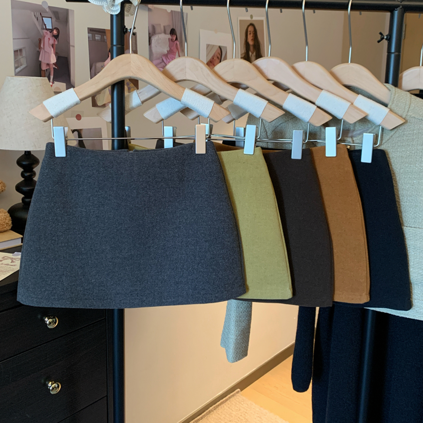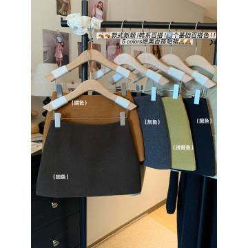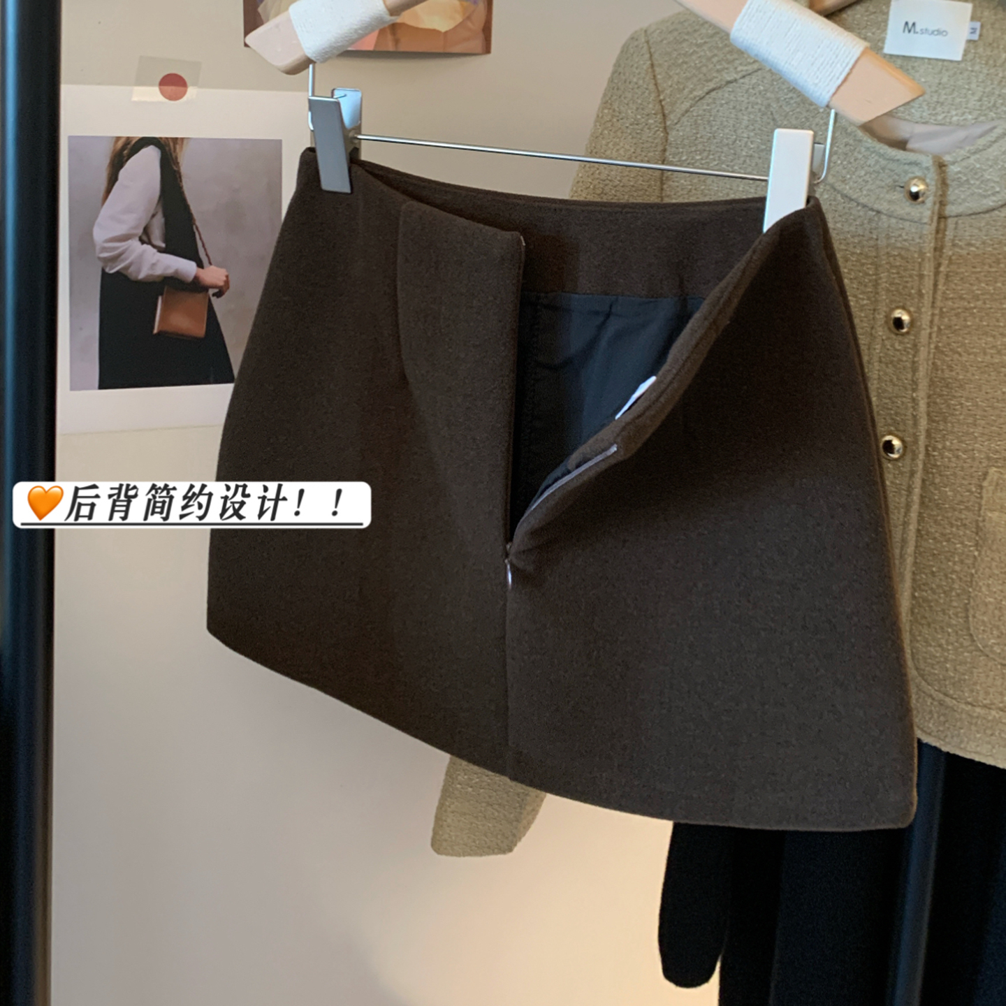FA47793# 毛呢纯色简约高腰半身裙女秋冬新款气质A字显瘦复古百搭短裙 服裝批發女裝批發服飾貨源