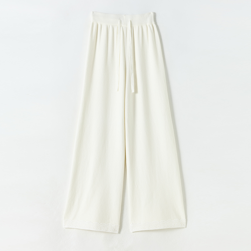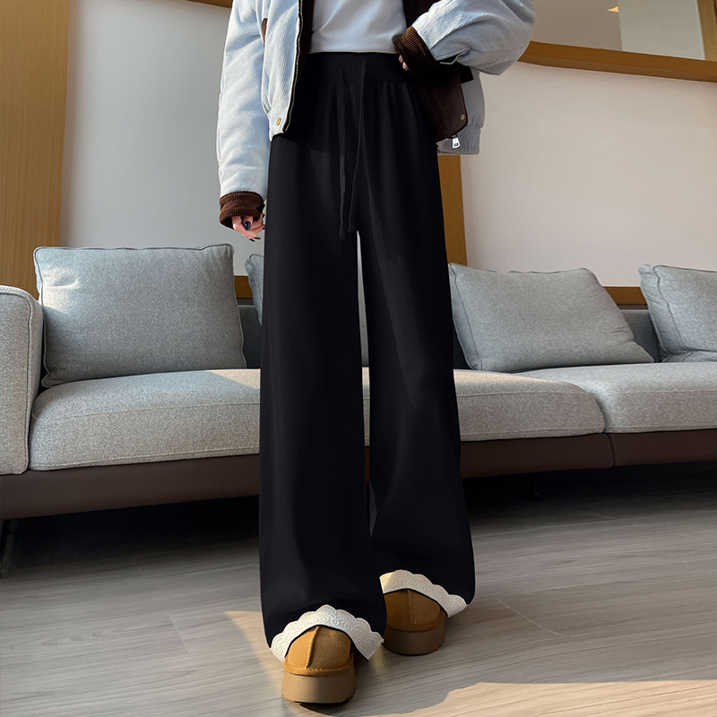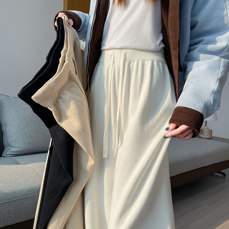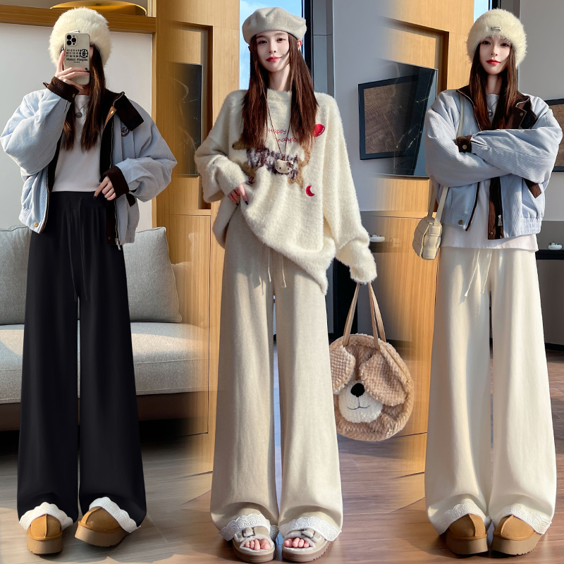 FA47803# 蕾丝针织阔腿裤休闲长裤秋冬新款慵懒风软糯毛线拖地裤女 服裝批發女裝批發服飾貨源
