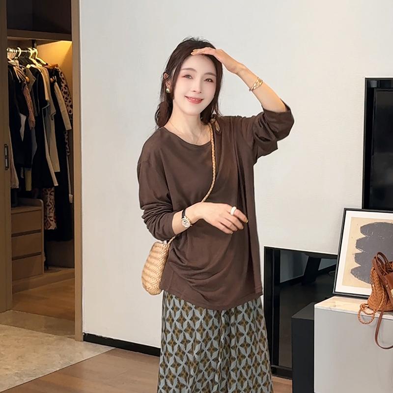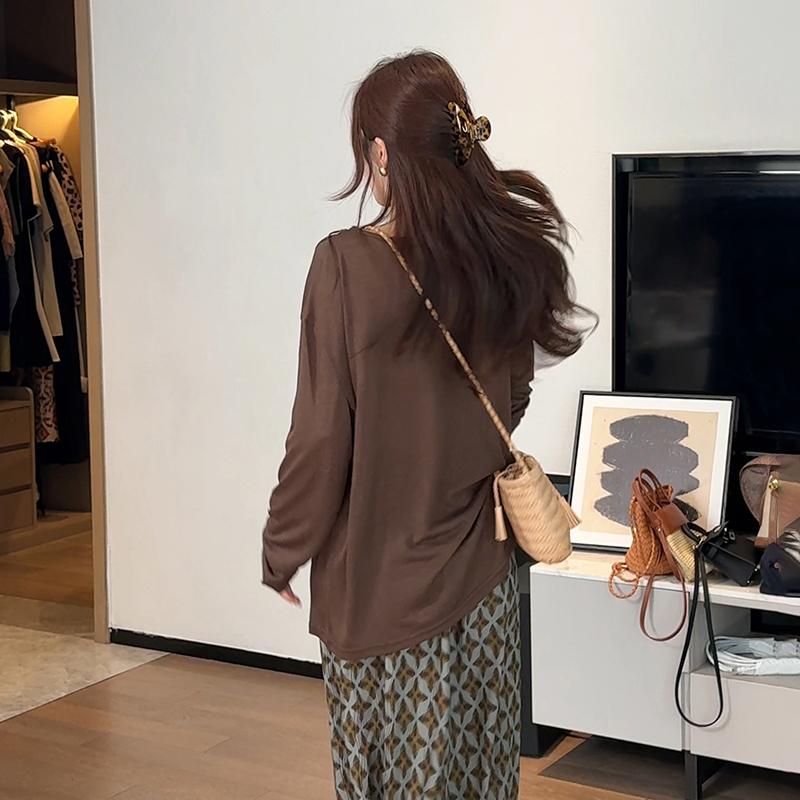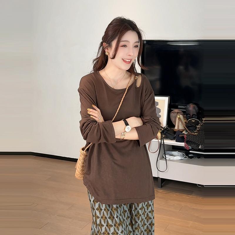 FA47822# 时尚露肩镂空设计感长袖T恤女秋季新款宽松显瘦圆领通勤百搭上衣 服裝批發女裝批發服飾貨源