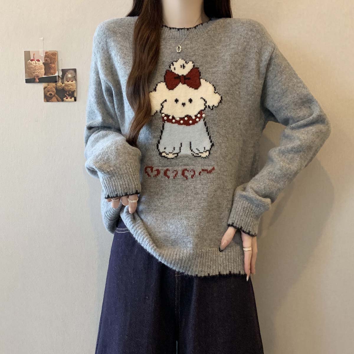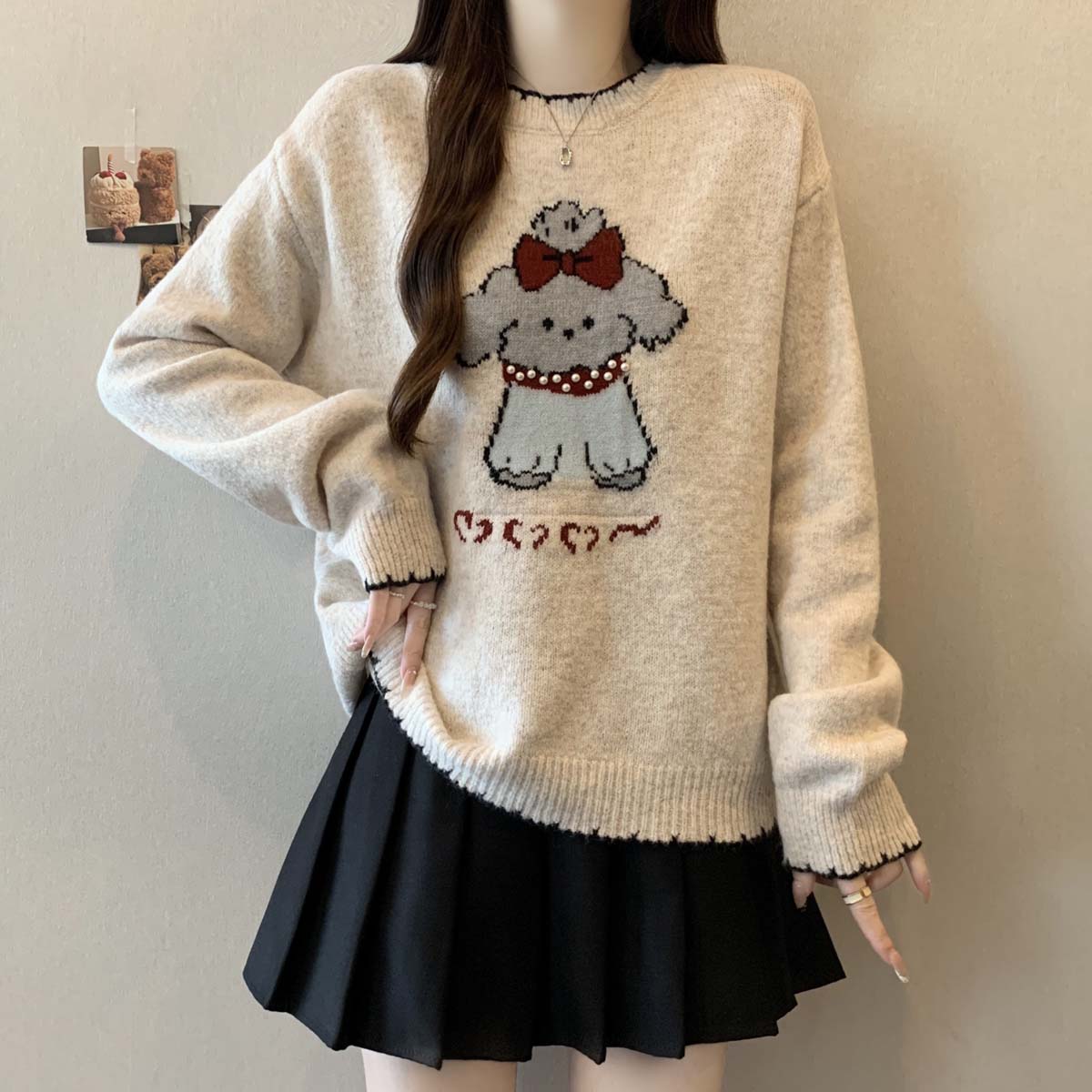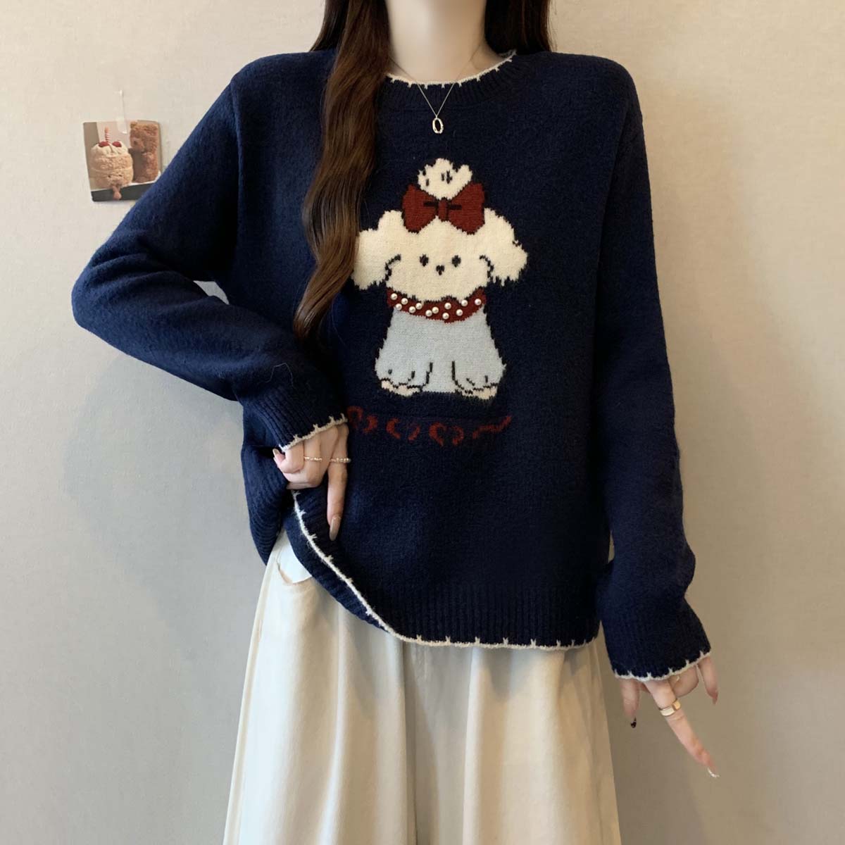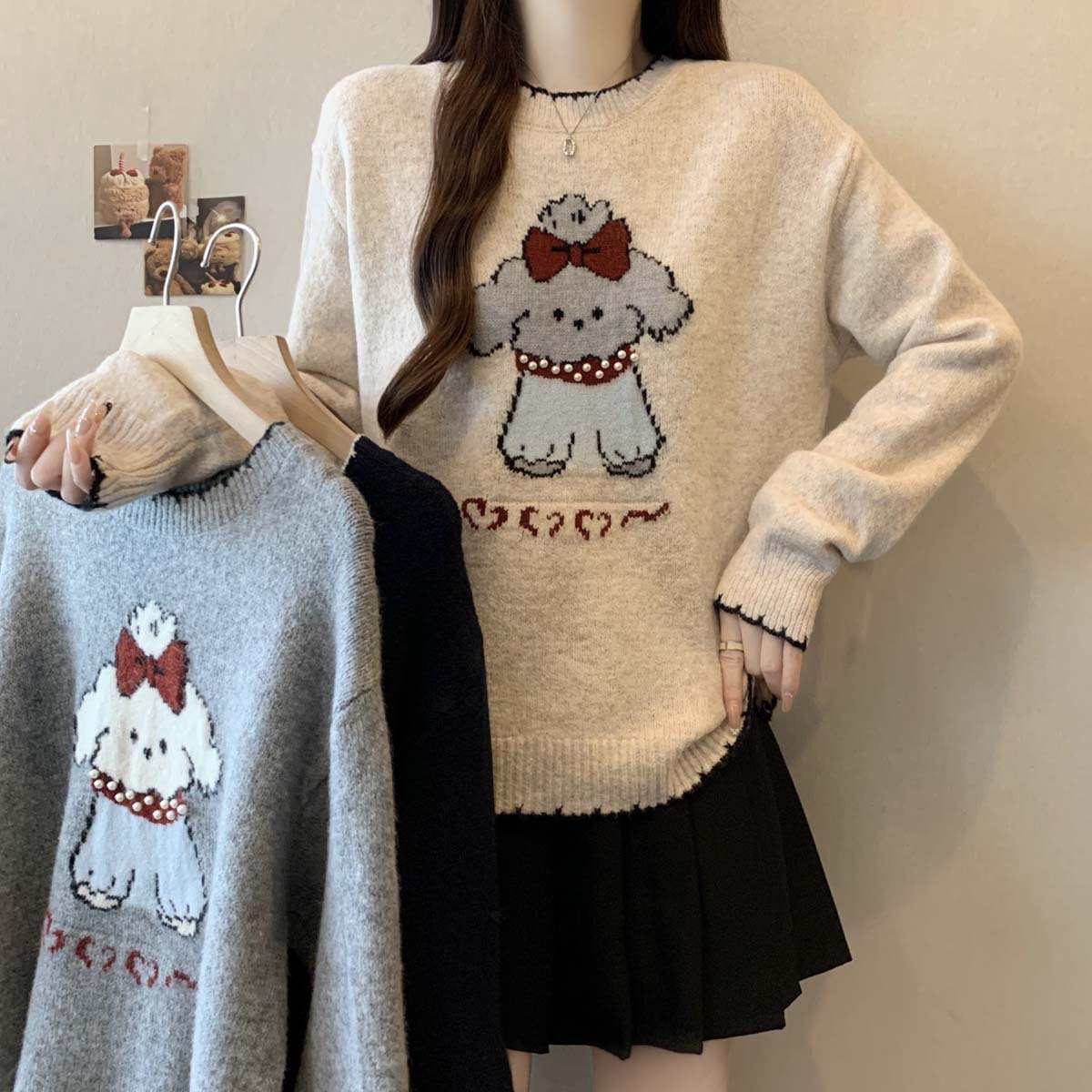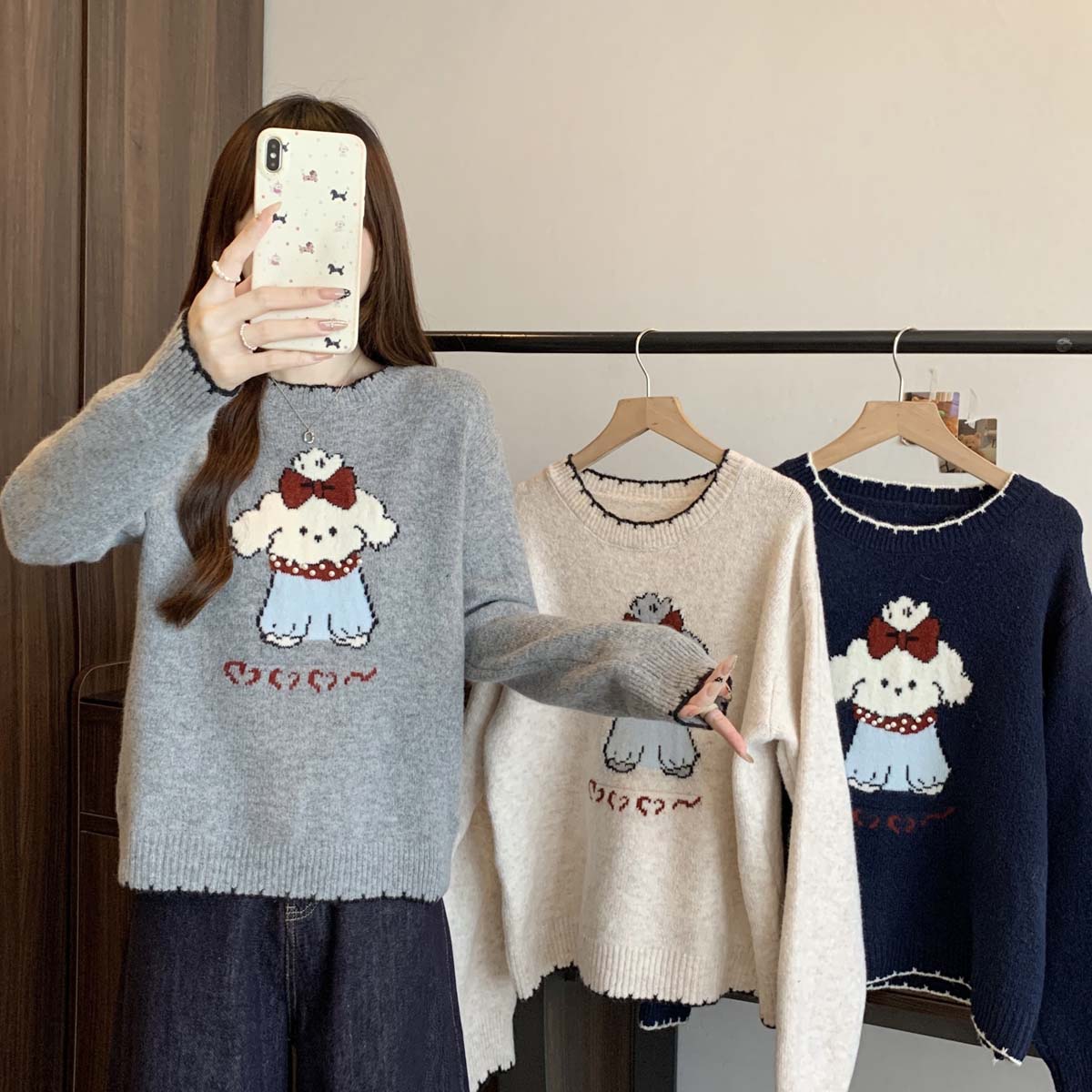 FA47829# 秋冬新款拼色卡通图案钉珠针织衫毛衣大码百搭显瘦上衣 服裝批發女裝批發服飾貨源