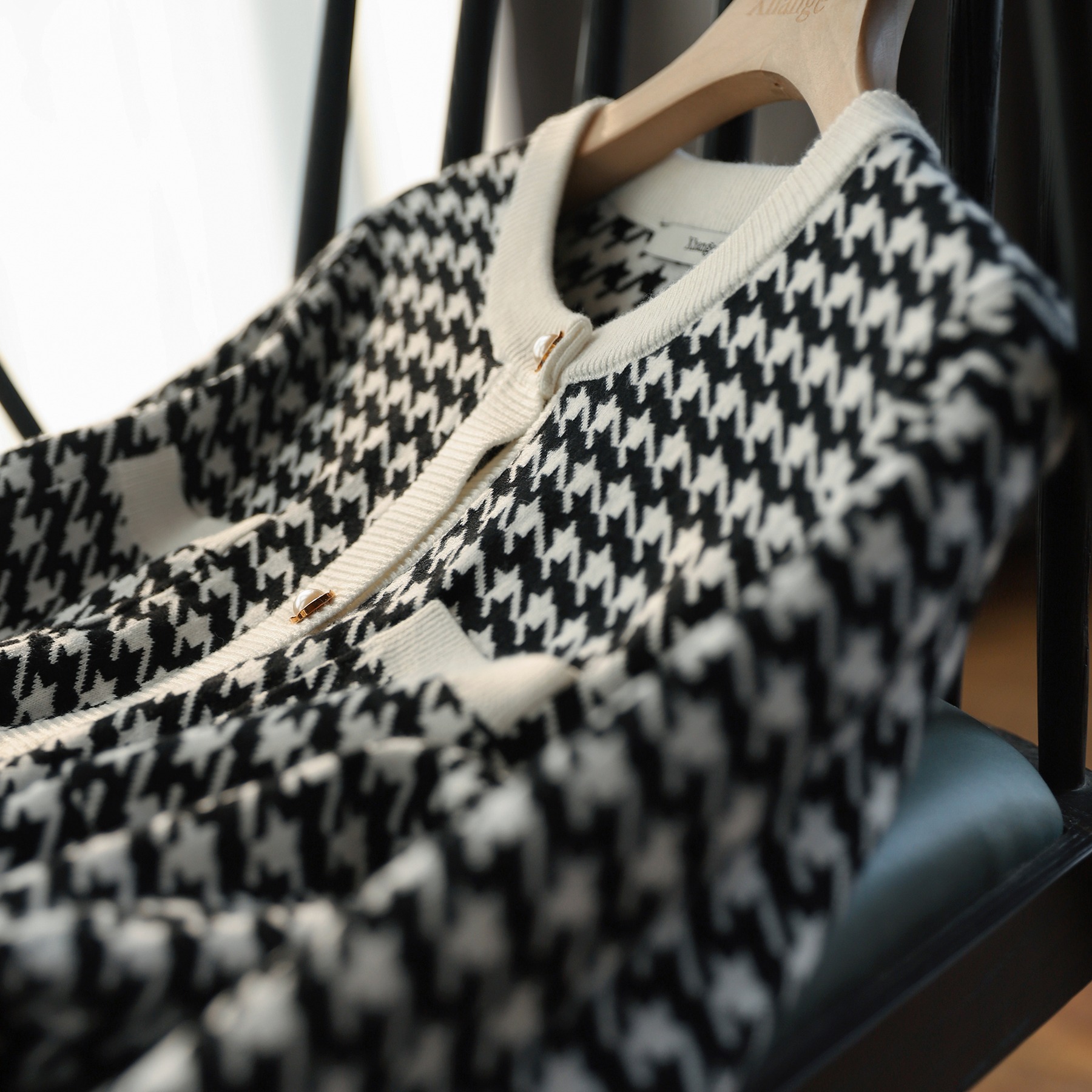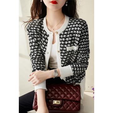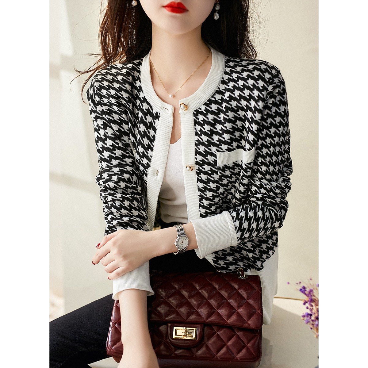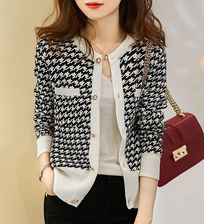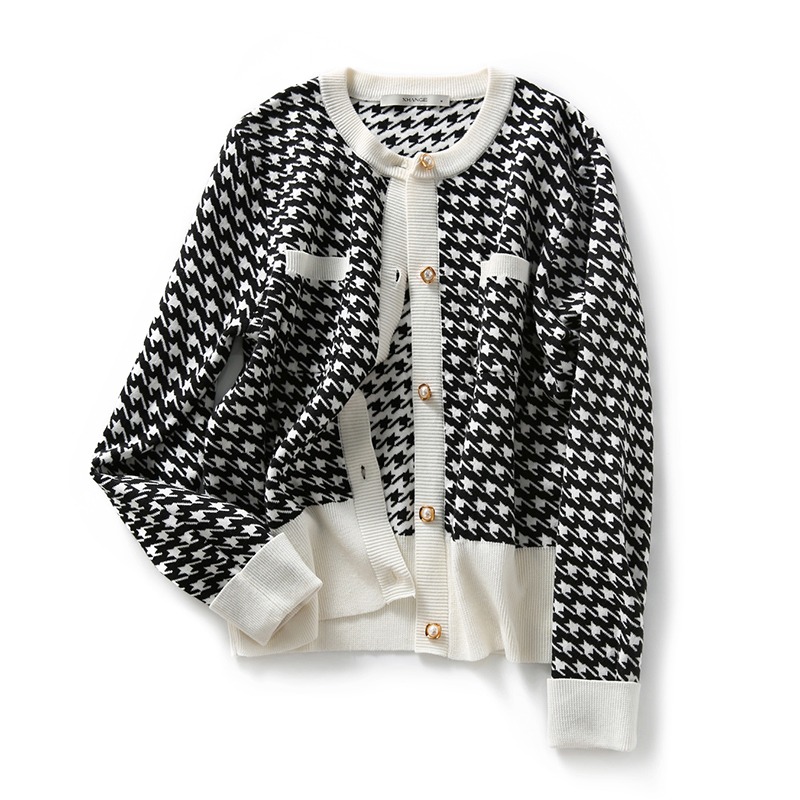 FA47840# 秋冬季的复古时髦香奶奶千鸟格针织开衫外套 服裝批發女裝批發服飾貨源