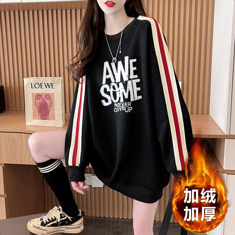 FA47845# 仿华棉复贝贝绒冬季加绒加厚圆领卫衣外套女 服裝批發女裝批發服飾貨源