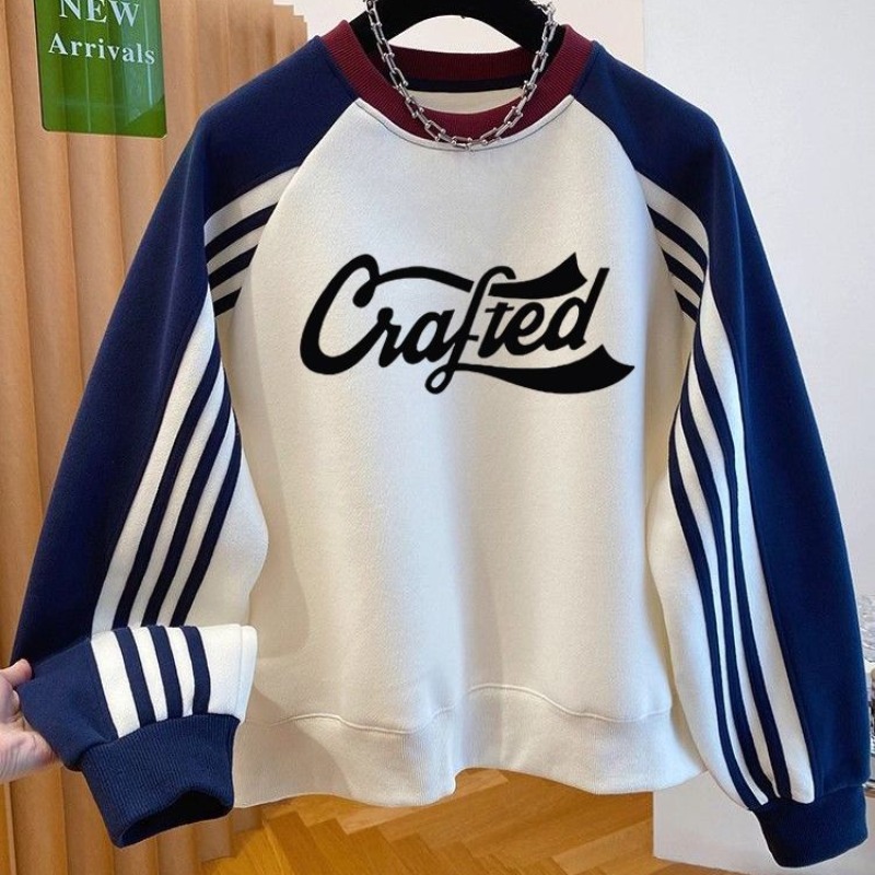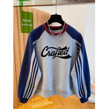 FA47875# 华棉复特大码300斤设计感撞色拼接印花卫衣女 服裝批發女裝批發服飾貨源