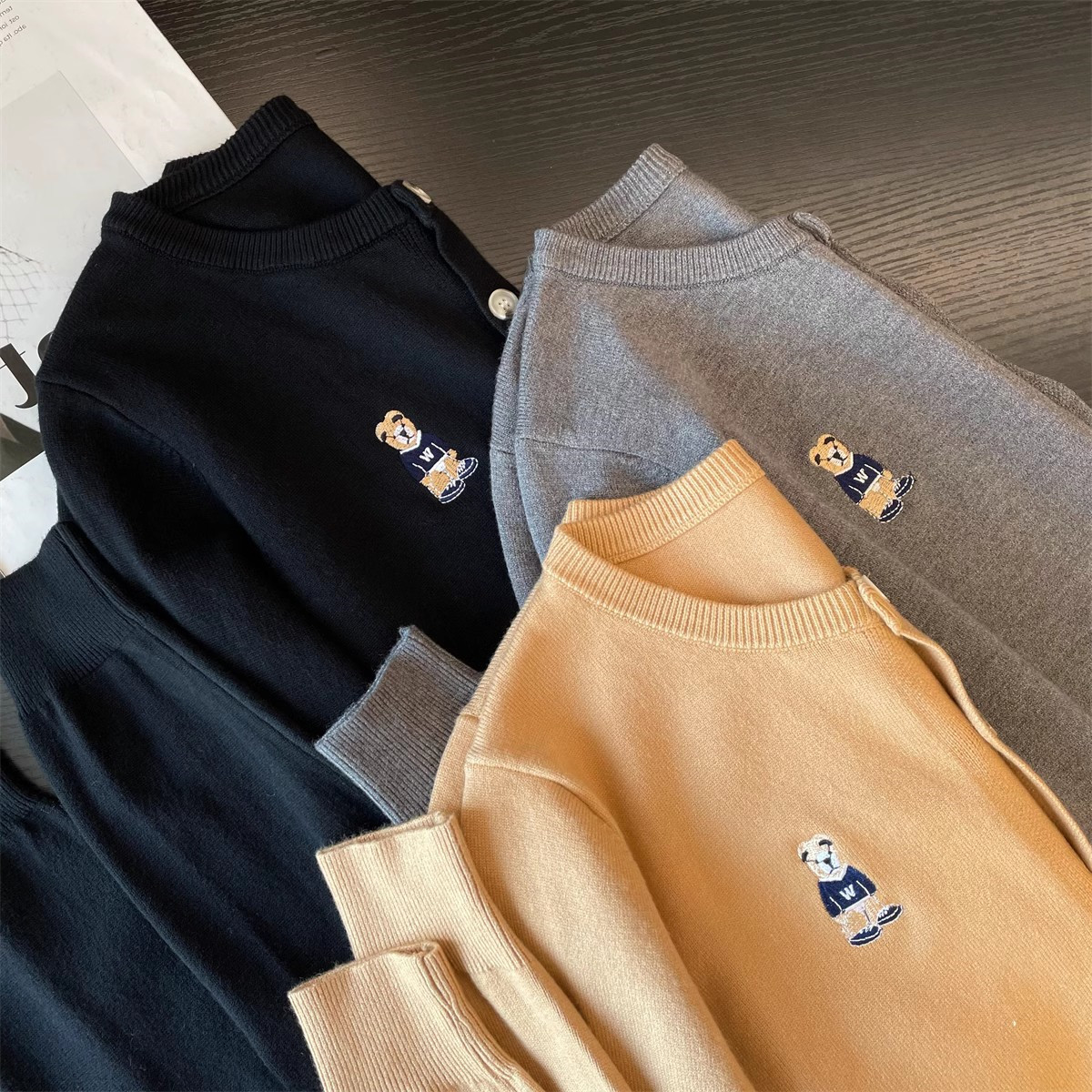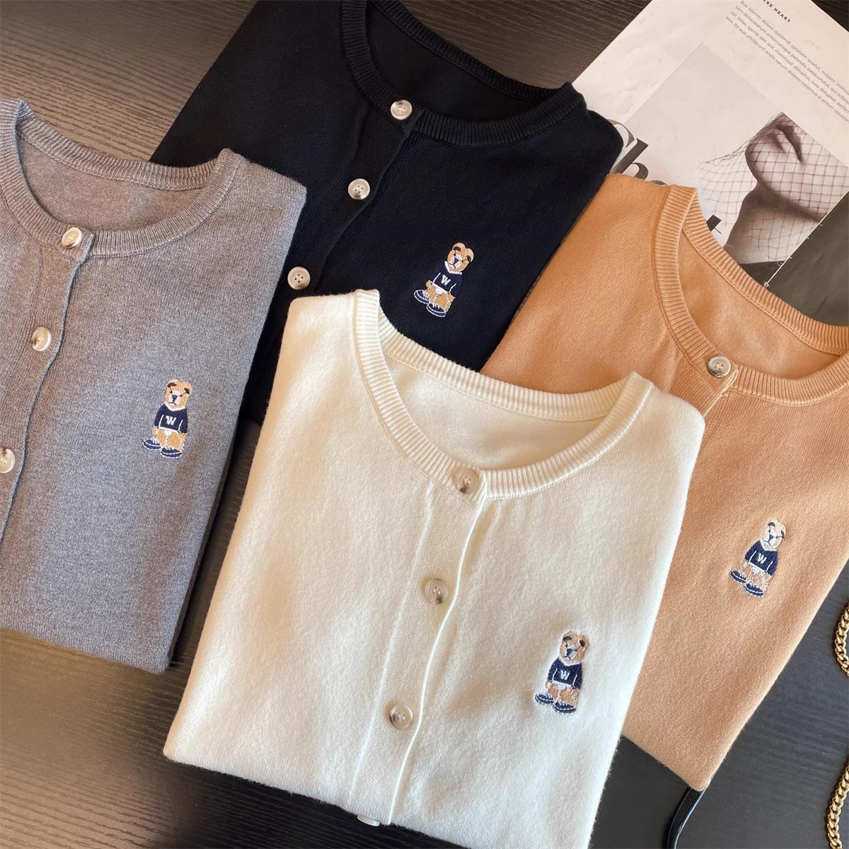FA47894# 小熊刺绣长袖针织衫开衫外套早春女装新款宽松秋冬季毛衣短款上衣 服裝批發女裝批發服飾貨源