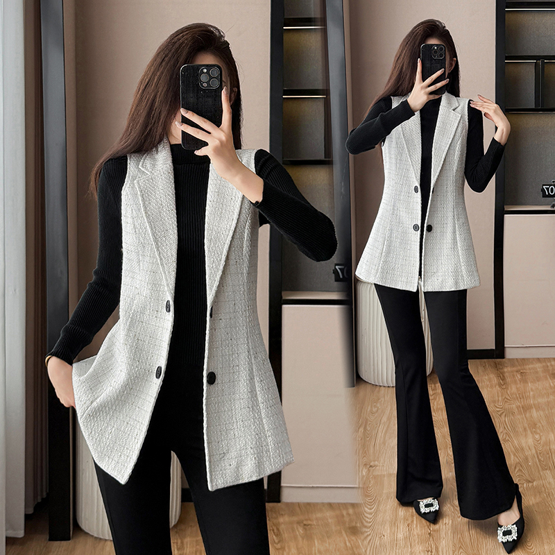 FA48066# 粗花呢小香风马甲背心女外套秋季新款上衣短款小个子无袖马夹 服裝批發女裝批發服飾貨源