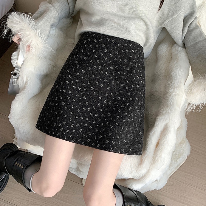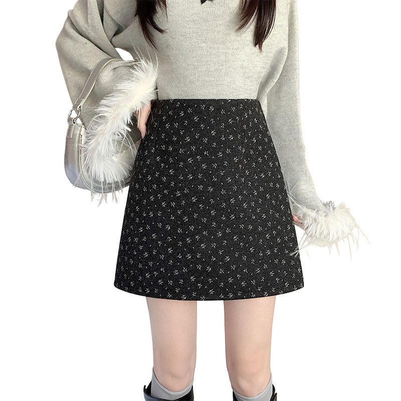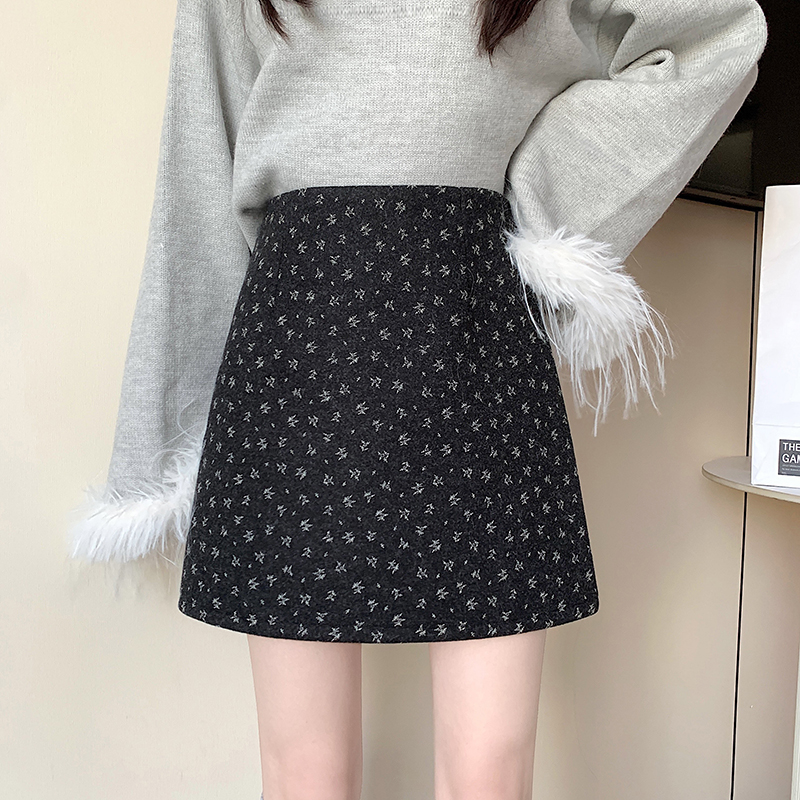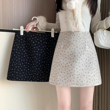 FA48431# 秋冬季新款韩版加厚毛呢碎花秋冬A字高腰显瘦百搭包臀裙子 服裝批發女裝批發服飾貨源