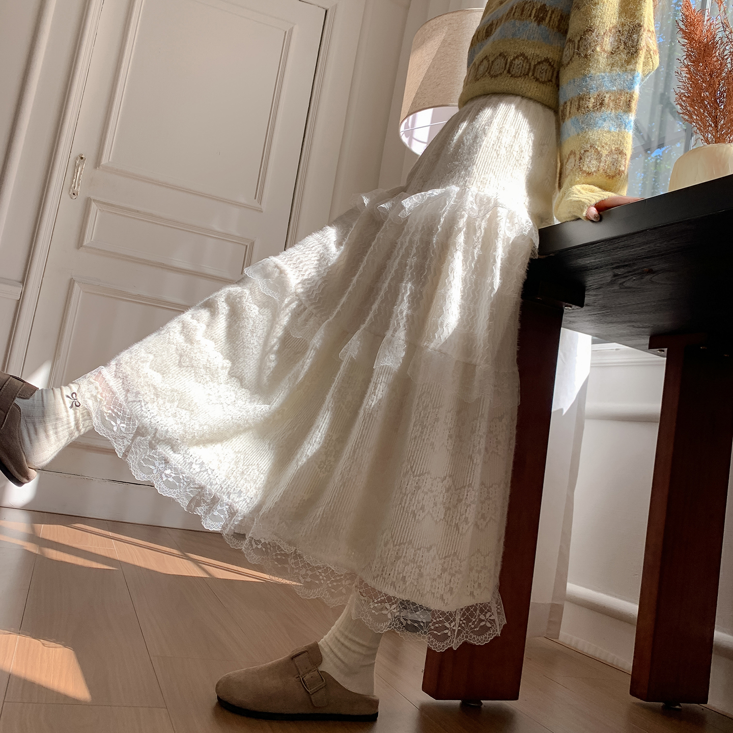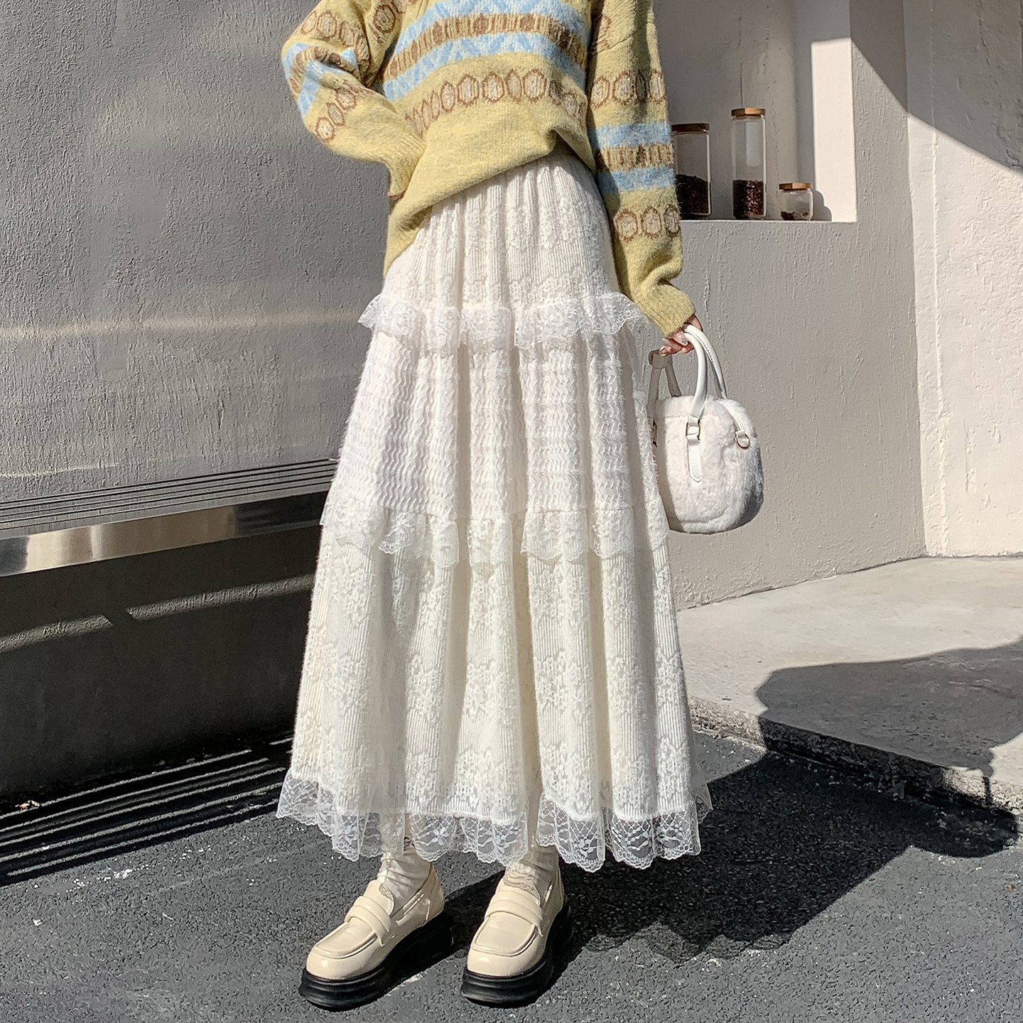 FA48461# 秋冬新款高级蕾丝蛋糕裙半身裙女秋季裙子纱裙冬季长款半裙长裙 服裝批發女裝批發服飾貨源
