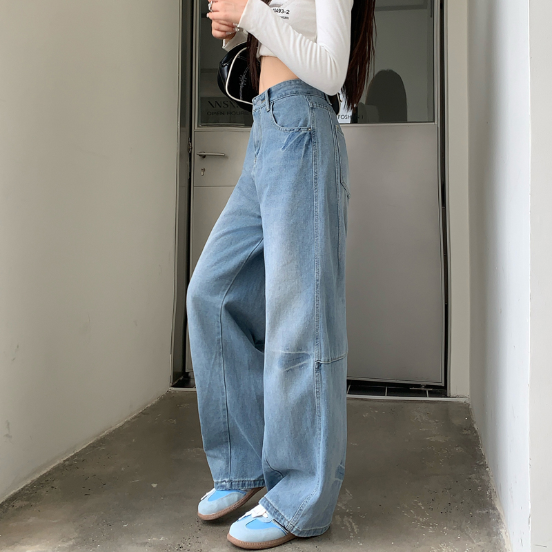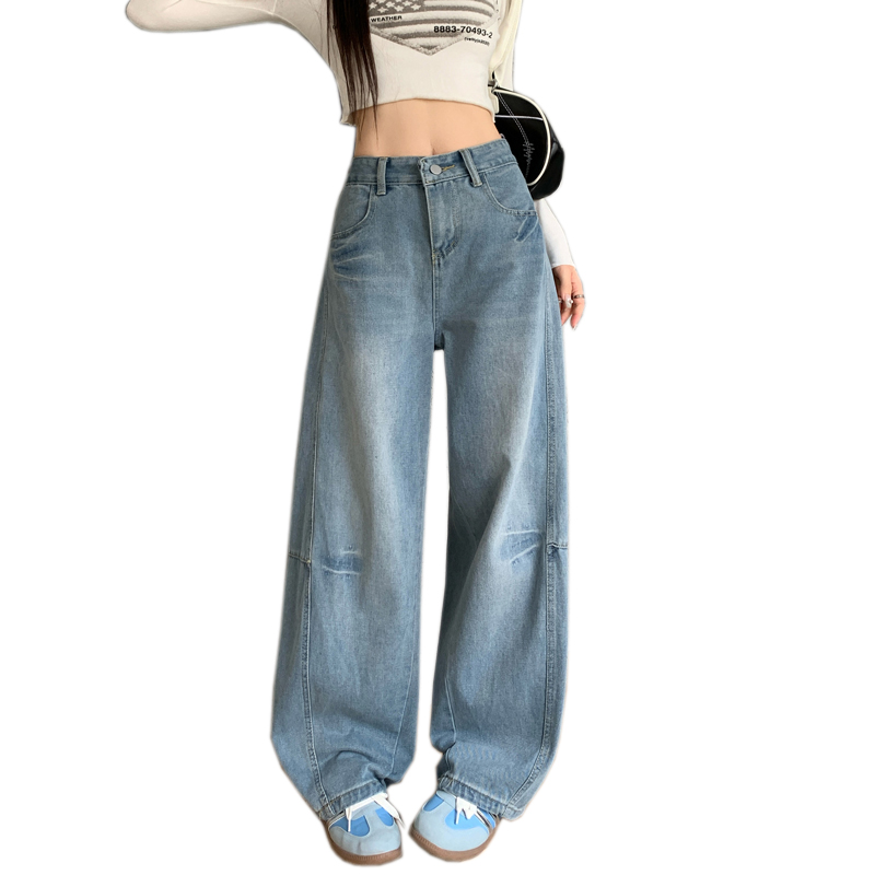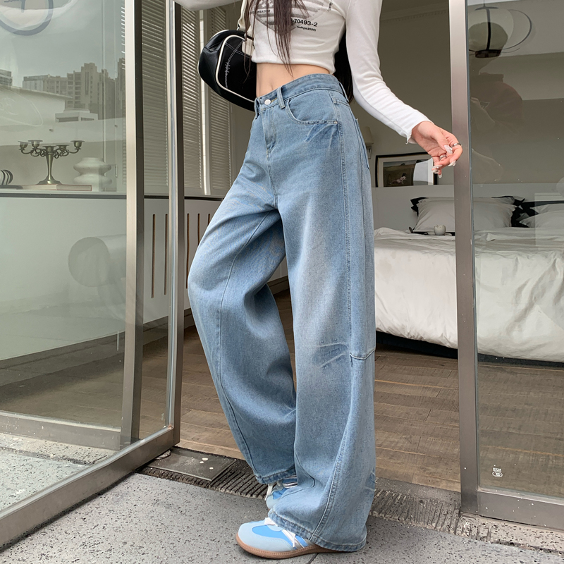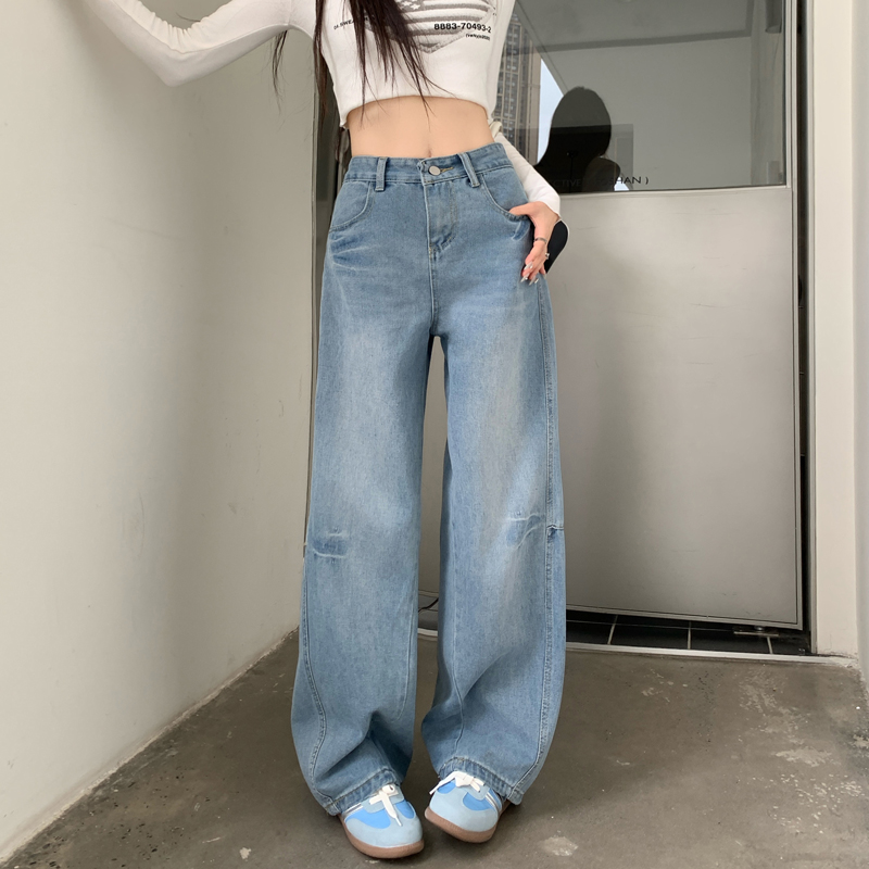 FA48502# -浅色高腰牛仔裤女大码胖mm梨型身材腿粗胯宽显瘦直筒弯刀裤 服裝批發女裝批發服飾貨源