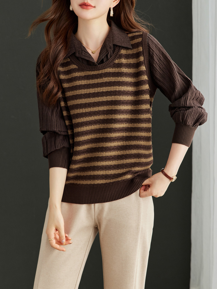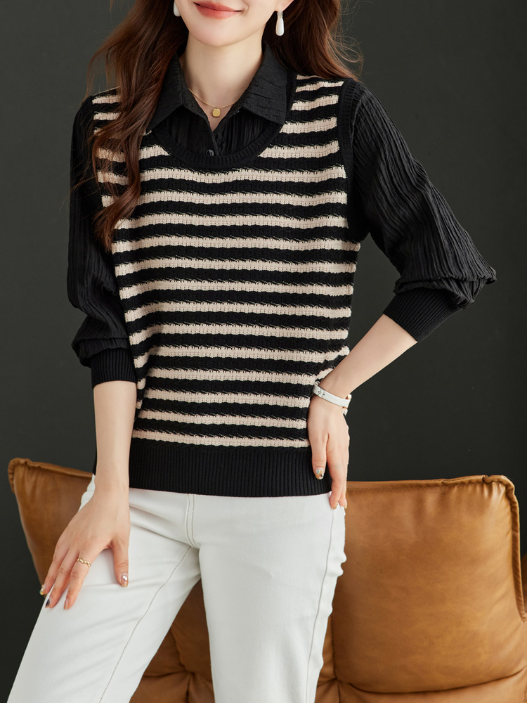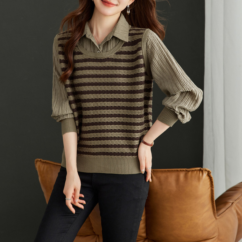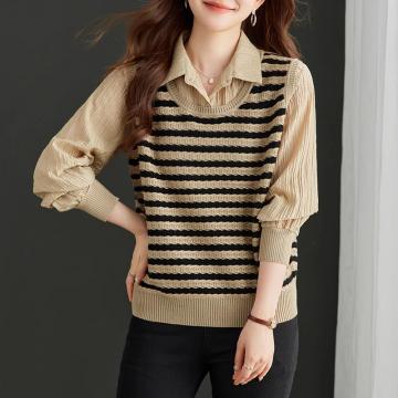 FA48535# 假两件上衣女春秋时尚洋气薄款早秋单穿打底针织衫新款初秋季 服裝批發女裝批發服飾貨源