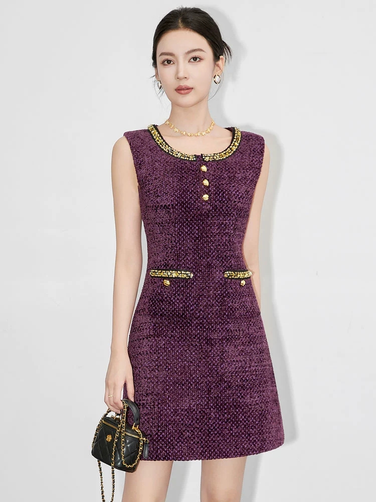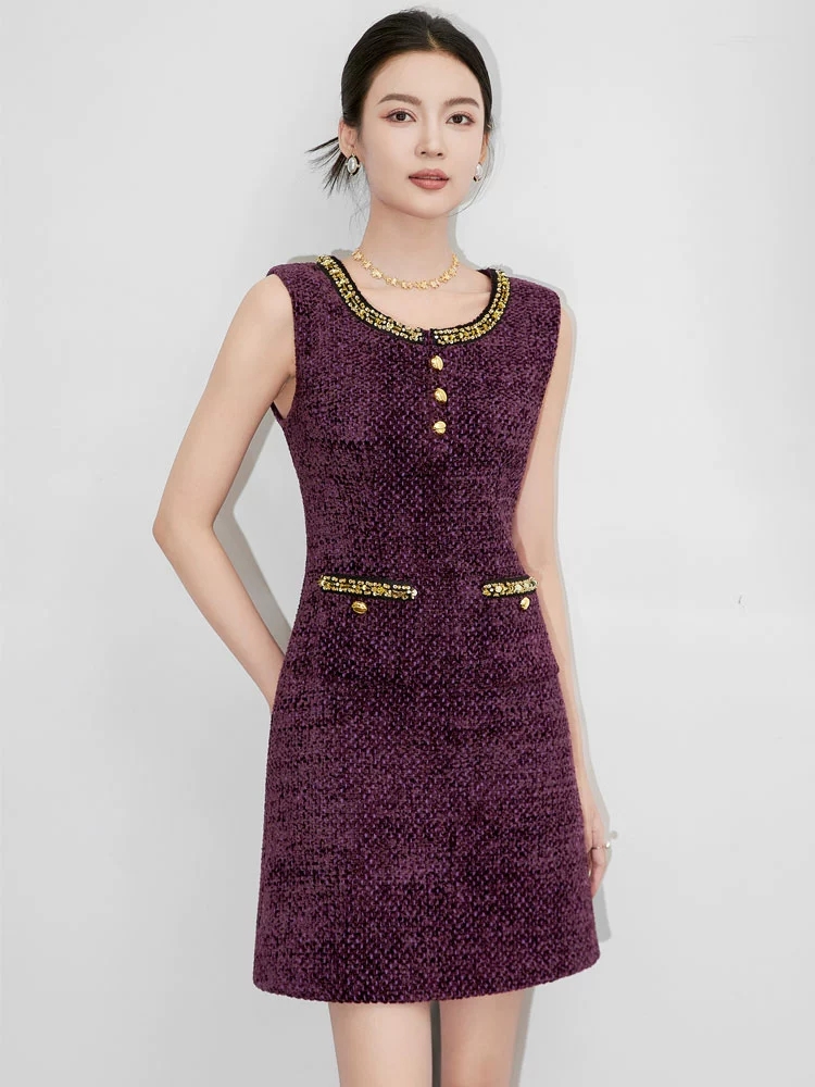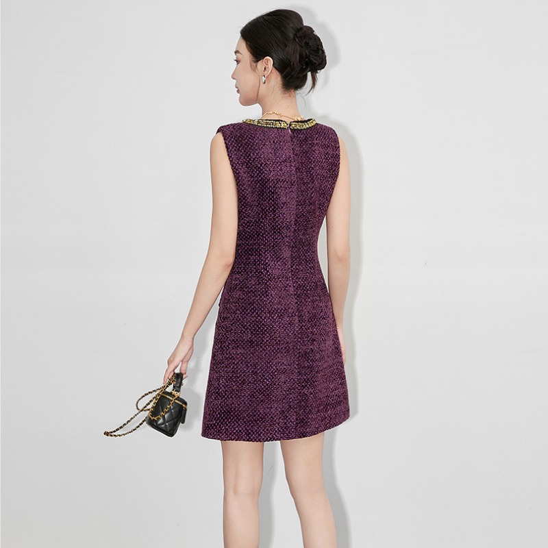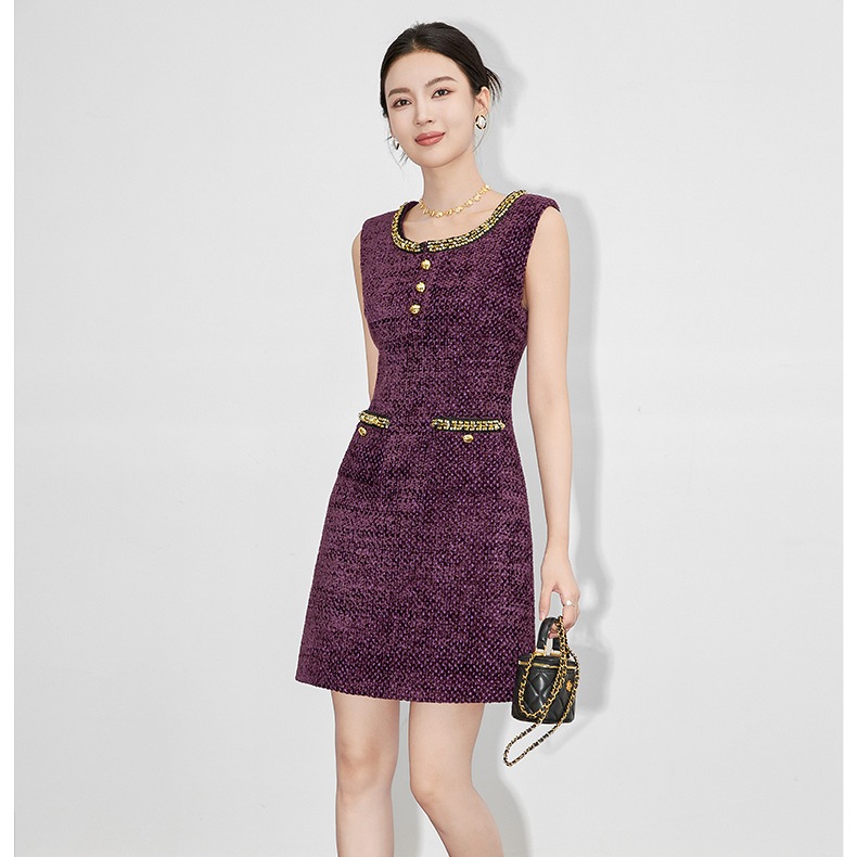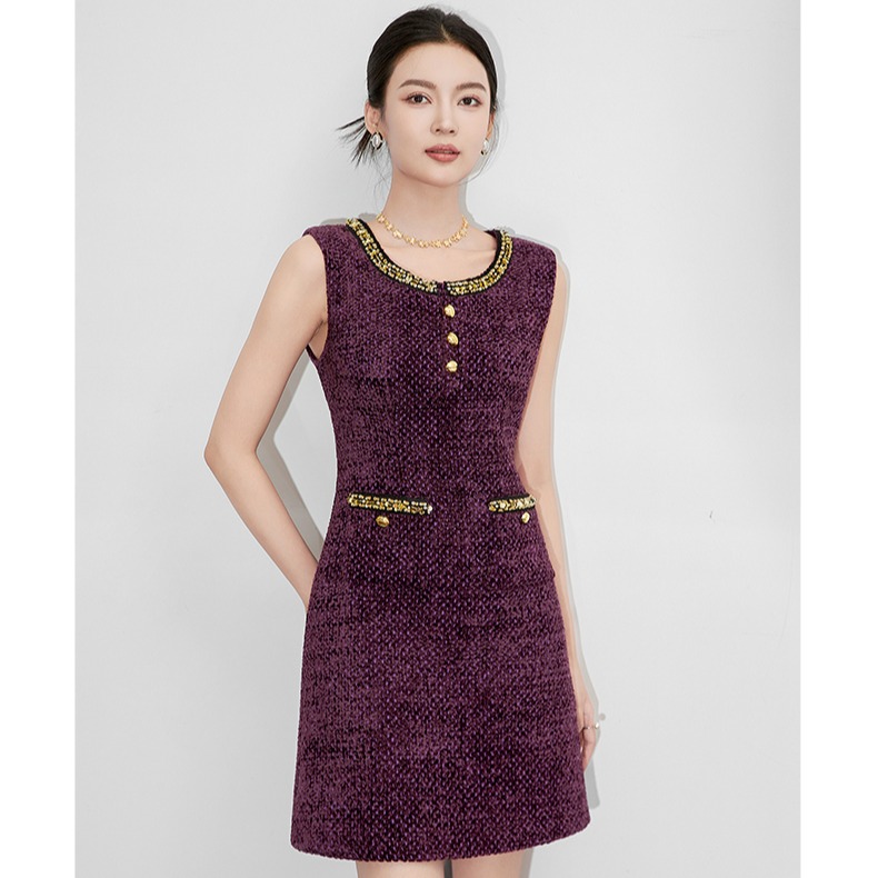 FA48746# 小香风无袖连衣裙高端名媛贵气千金风收腰A字包臀裙宴会礼服 服裝批發女裝批發服飾貨源