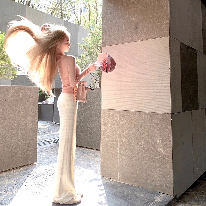 FA48754# 秋冬百搭老花垂感休闲针织阔腿裤新款女裤子 服裝批發女裝批發服飾貨源