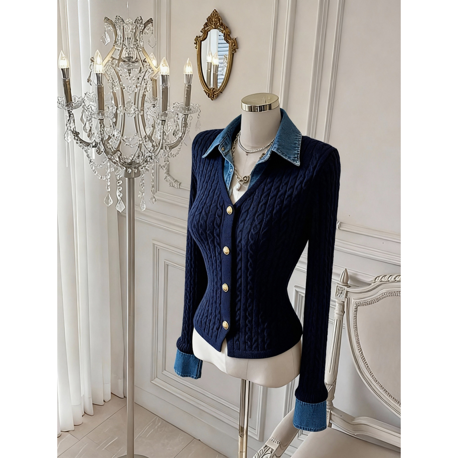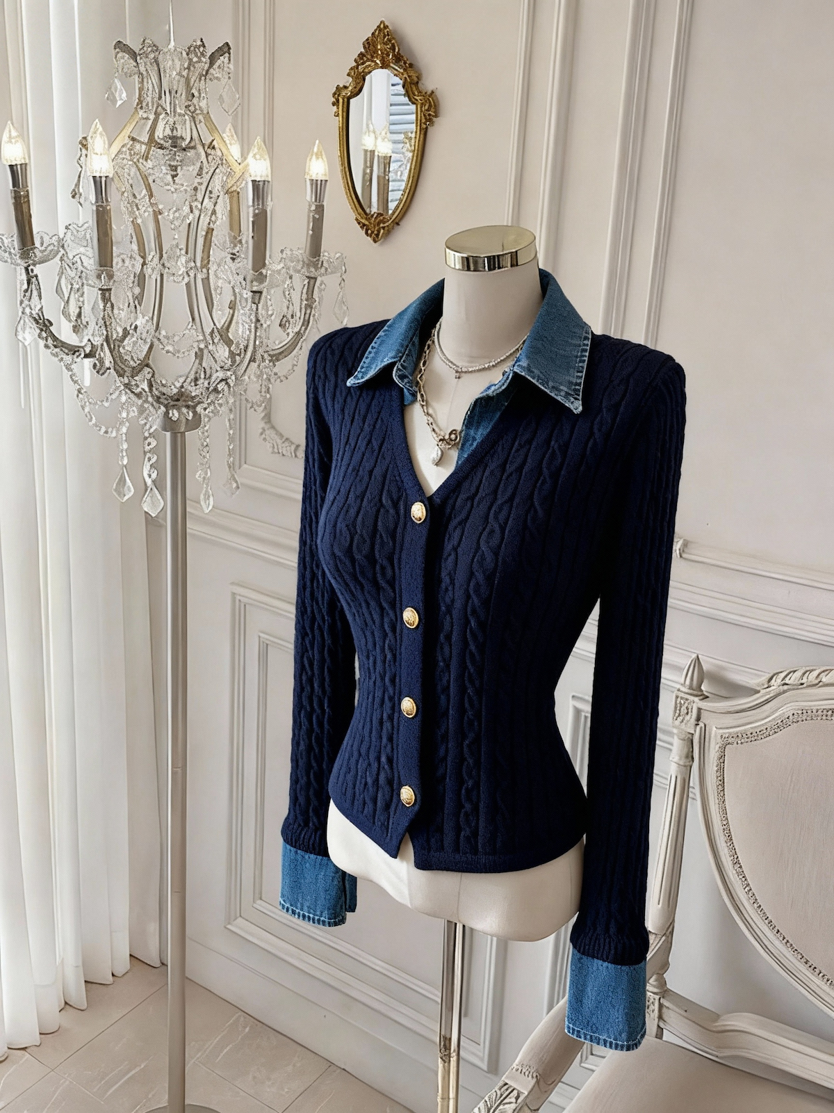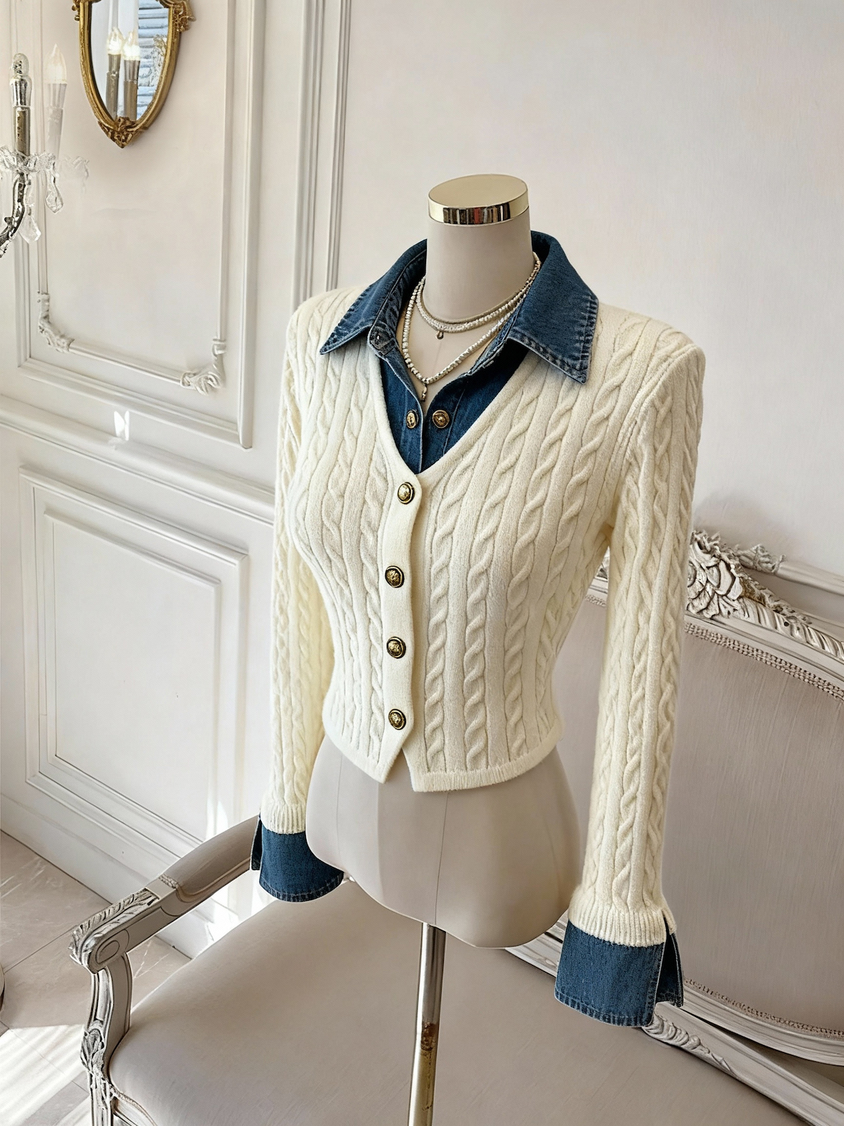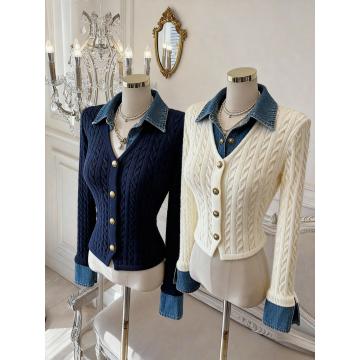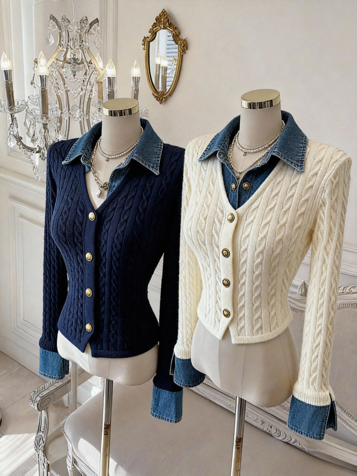 FA48757# 翻领假两件毛衣针织衫女秋冬高级感学院风内搭短上衣 服裝批發女裝批發服飾貨源