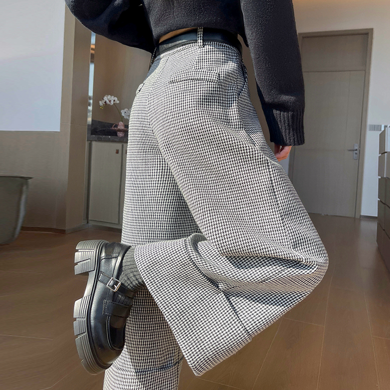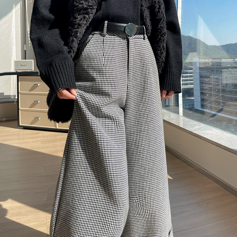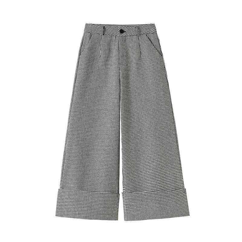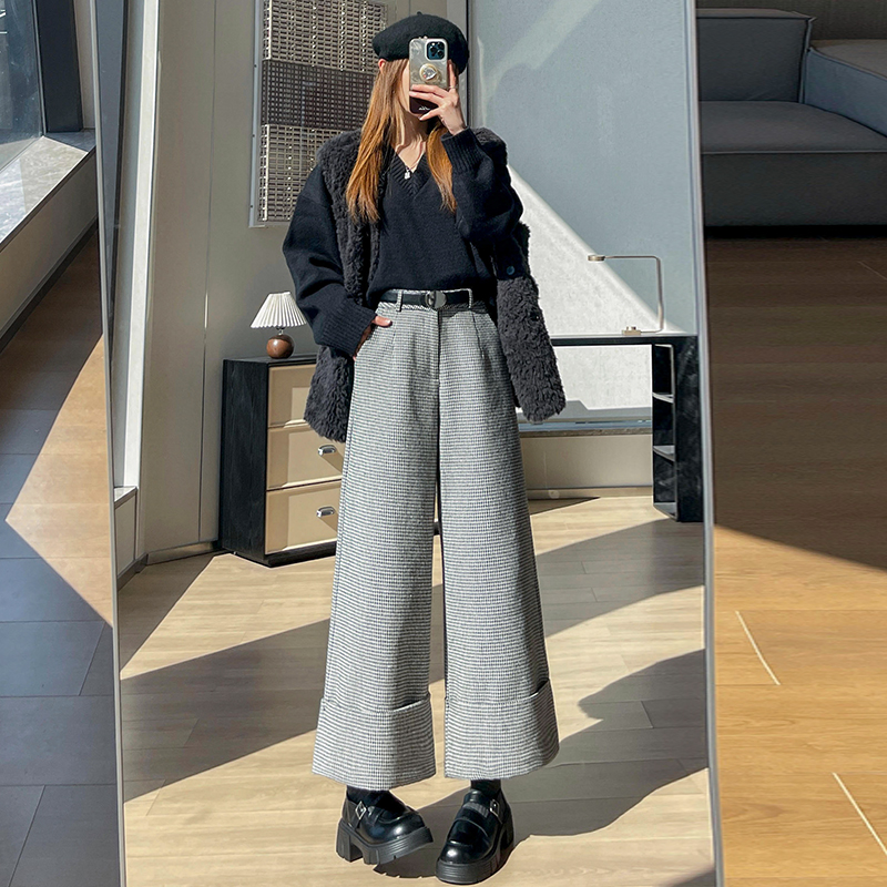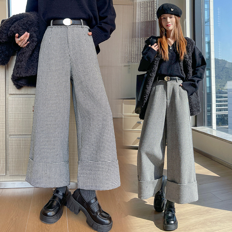 FA48792# 秋冬新款复古格子气质宽松阔腿裤女时尚高腰休闲九分裤 服裝批發女裝批發服飾貨源