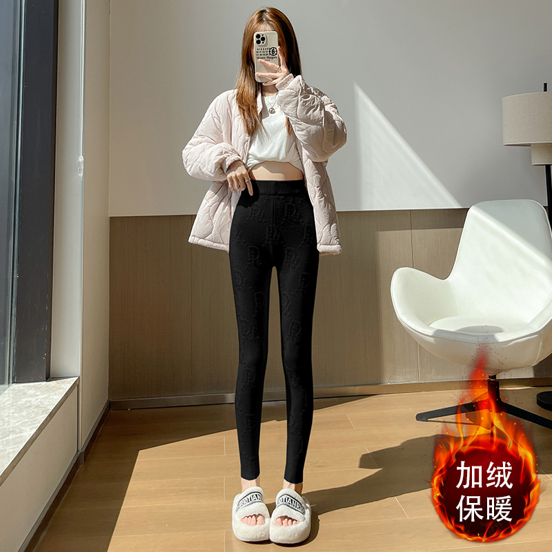 FA48796# 提花针织打底裤女冬季外穿保暖高腰紧身弹力加绒加厚小脚裤 服裝批發女裝批發服飾貨源