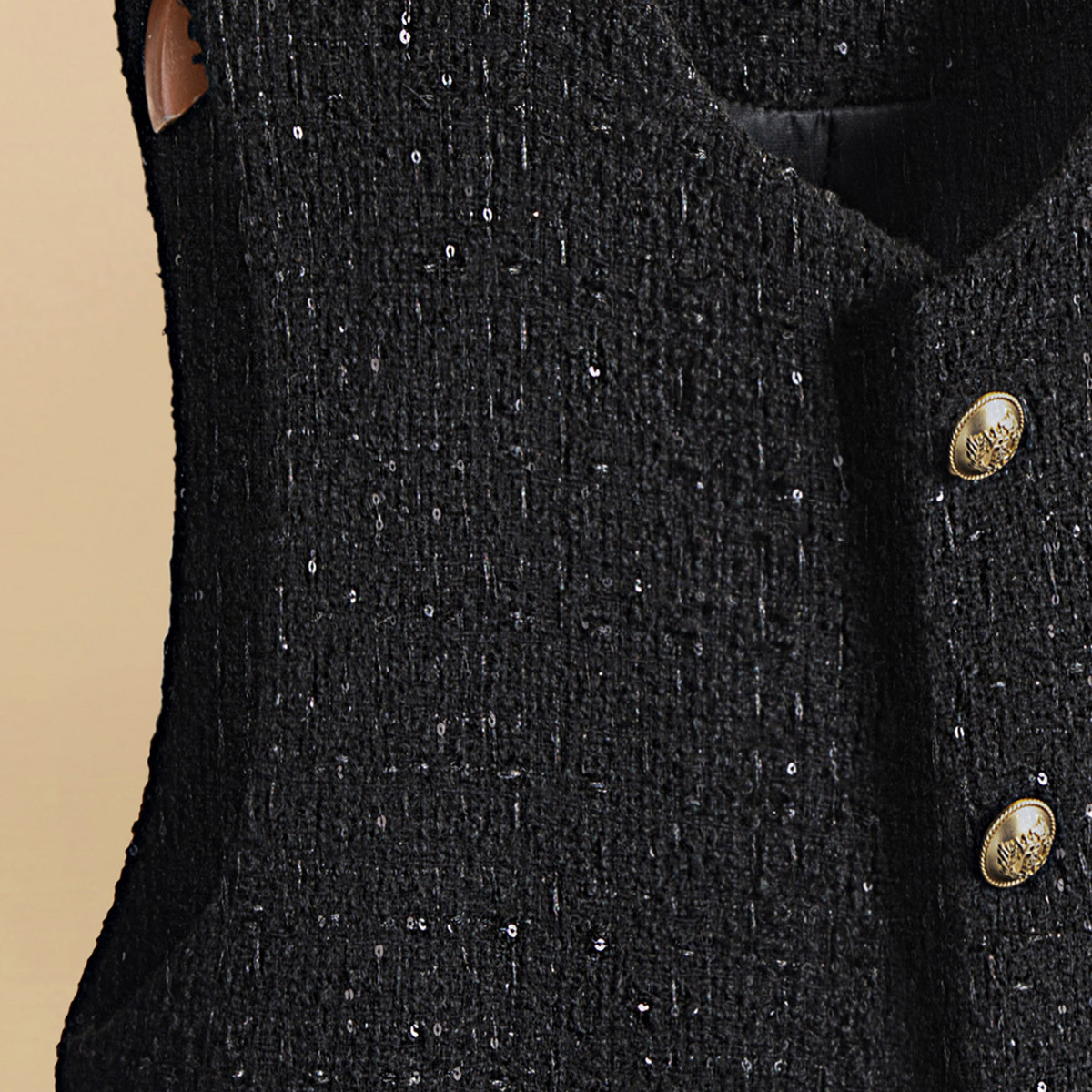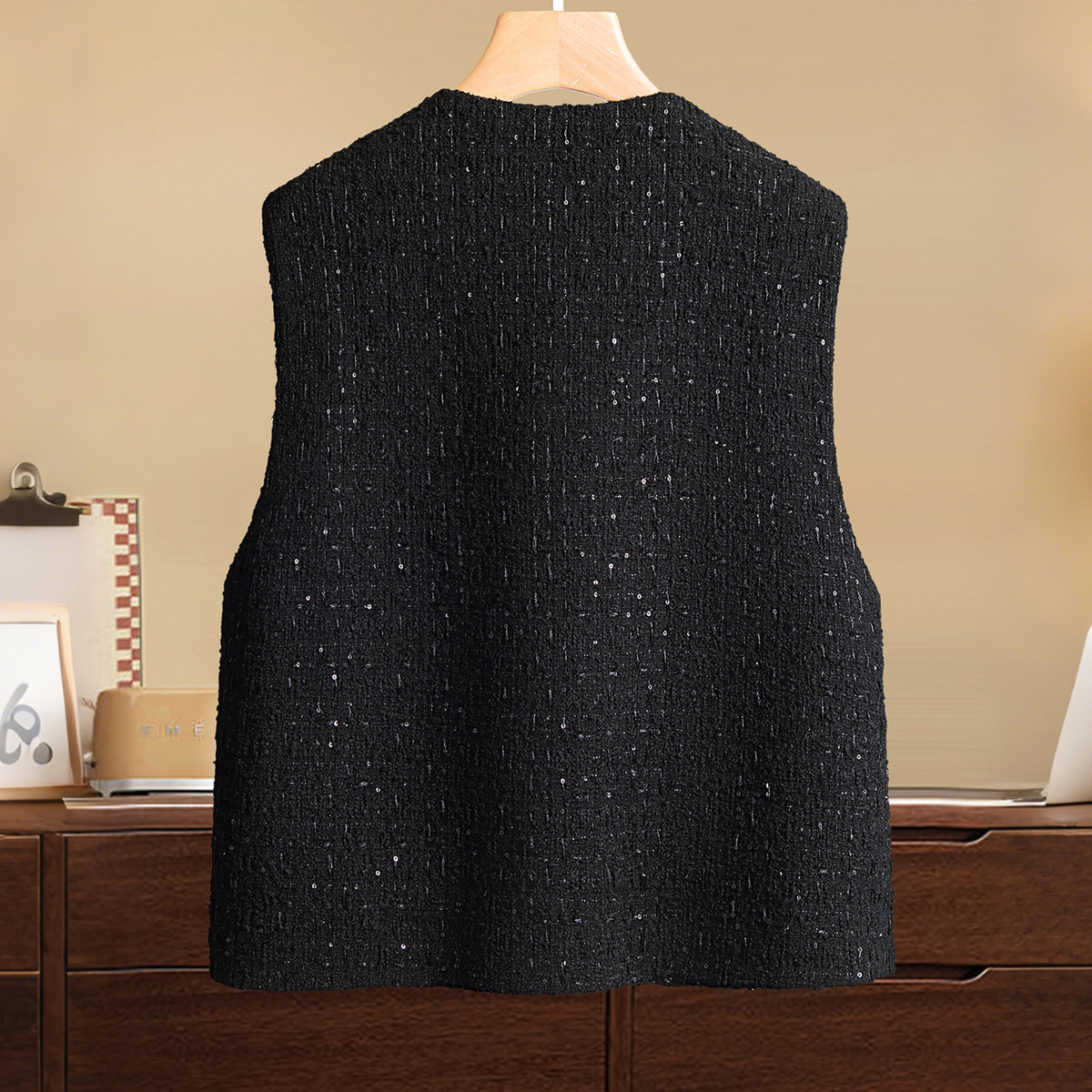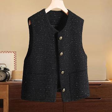 FA49015# 小香风粗花呢马夹秋装新款女圆领无袖马甲外套女上衣 服裝批發女裝批發服飾貨源