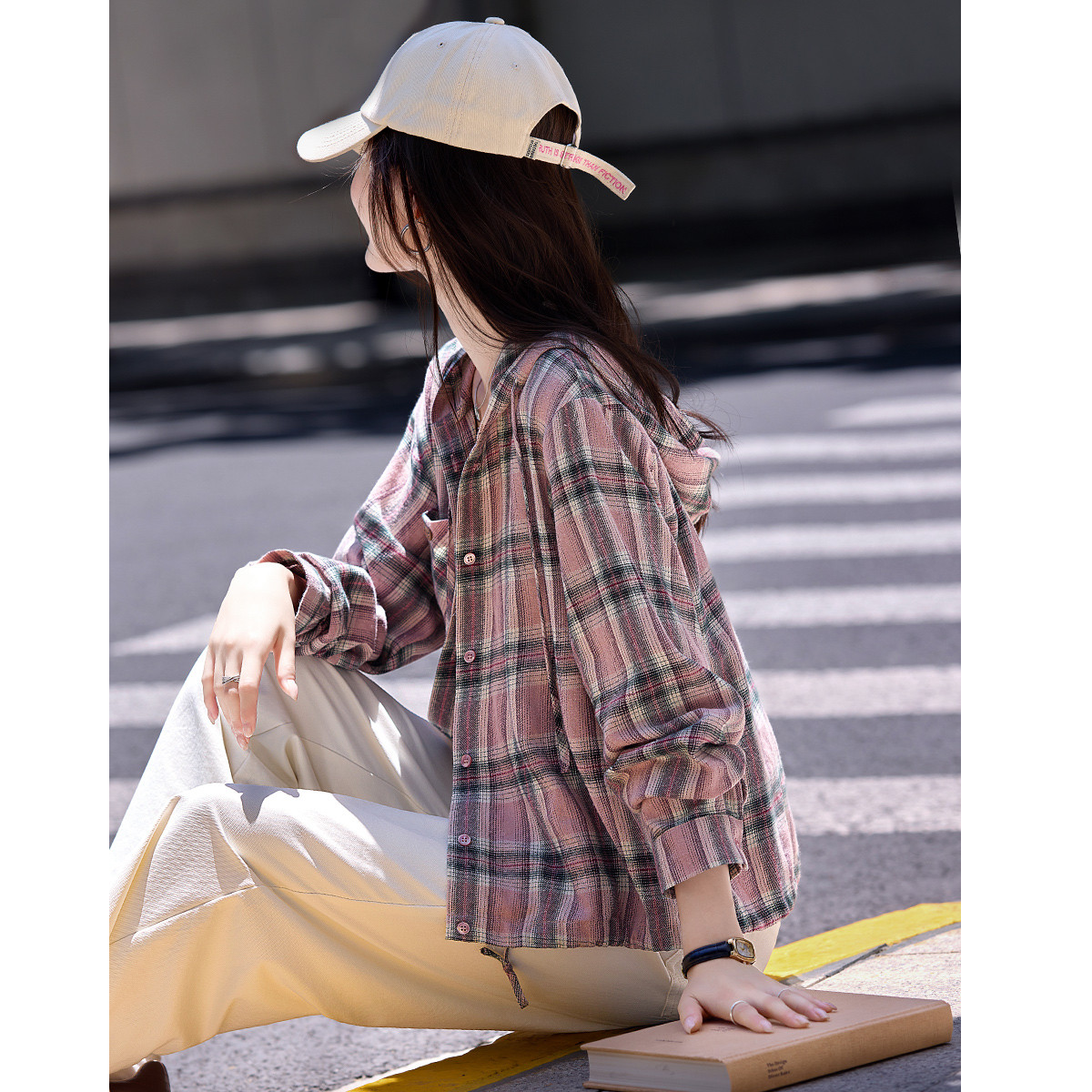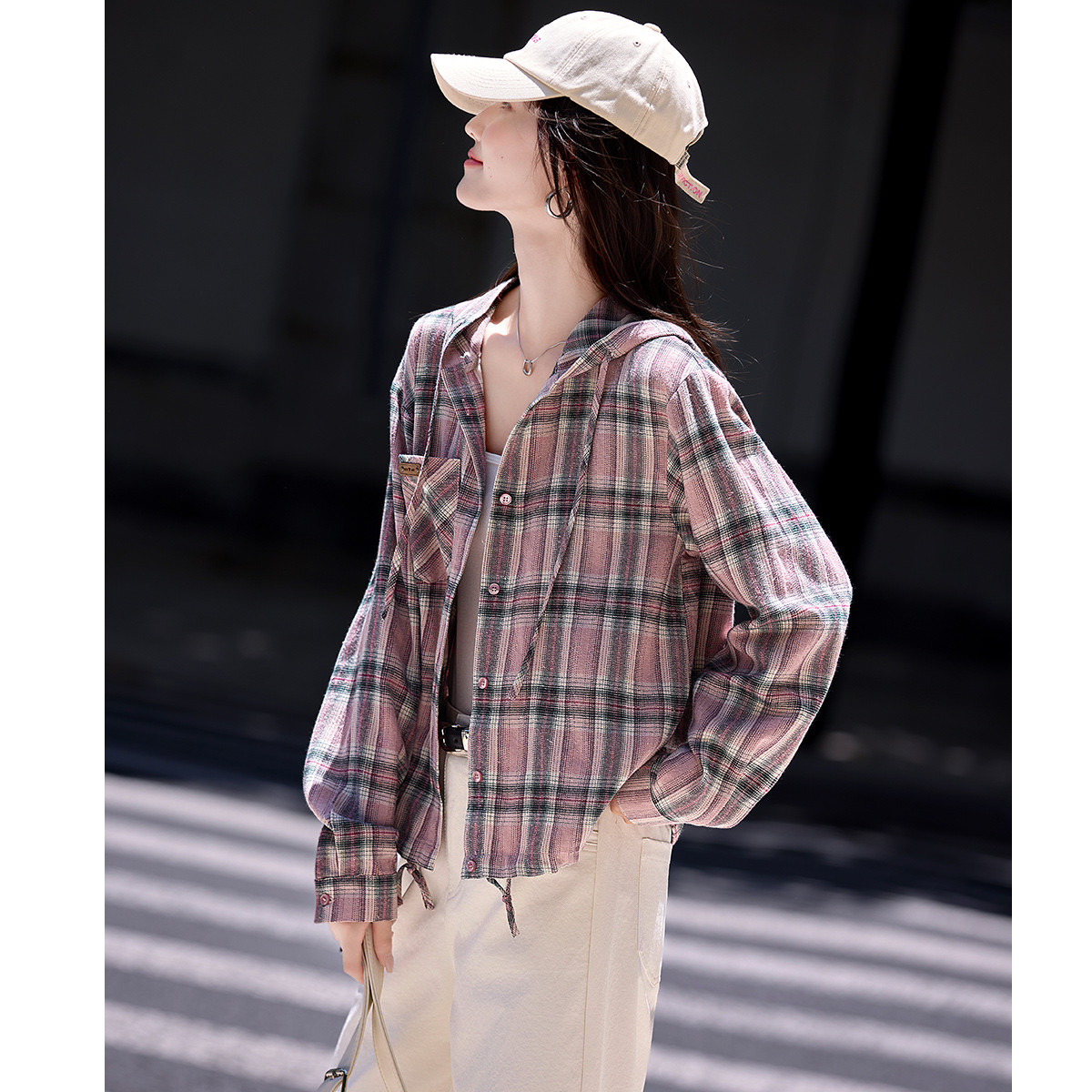 FA49016# 韩系时尚格子衬衫秋冬新休闲百搭宽松连帽磨毛上衣女 服裝批發女裝批發服飾貨源