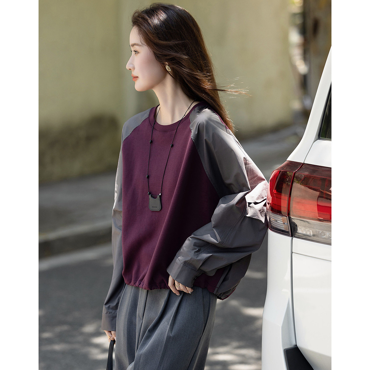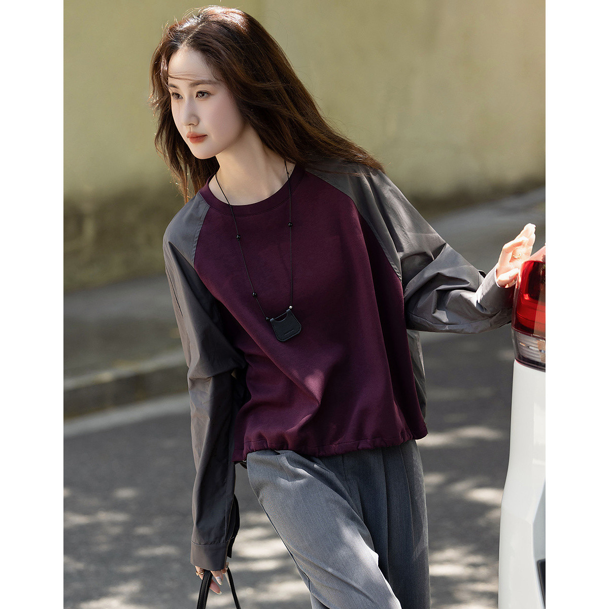 FA49021# 空气层秋季圆领宽松微弹褶裥抽绳藏肉卫衣女上衣 服裝批發女裝批發服飾貨源