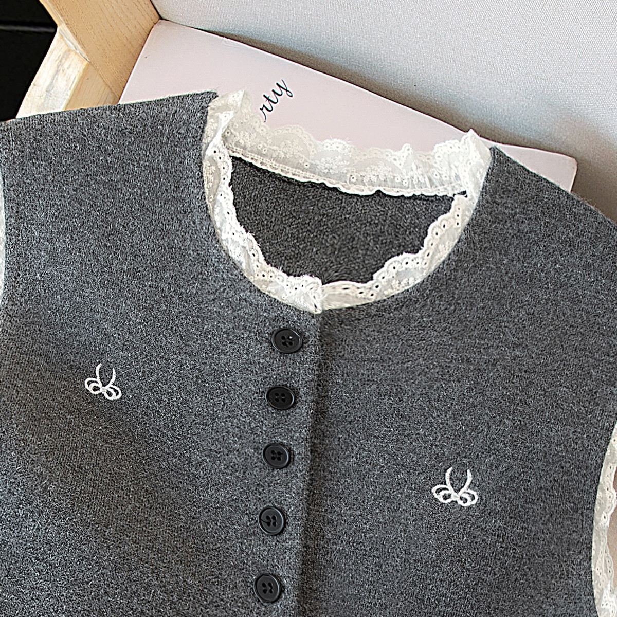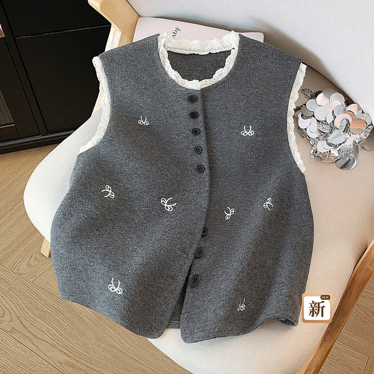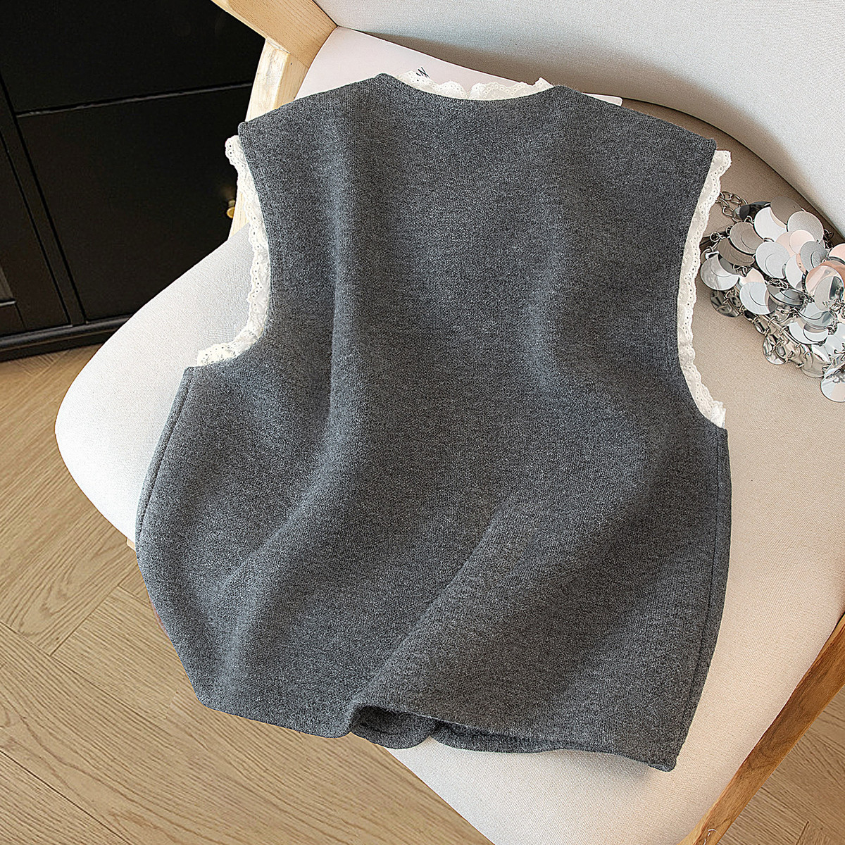 FA49025# 花边领叠穿马夹秋冬新女士时尚宽松叠穿简约马甲 服裝批發女裝批發服飾貨源