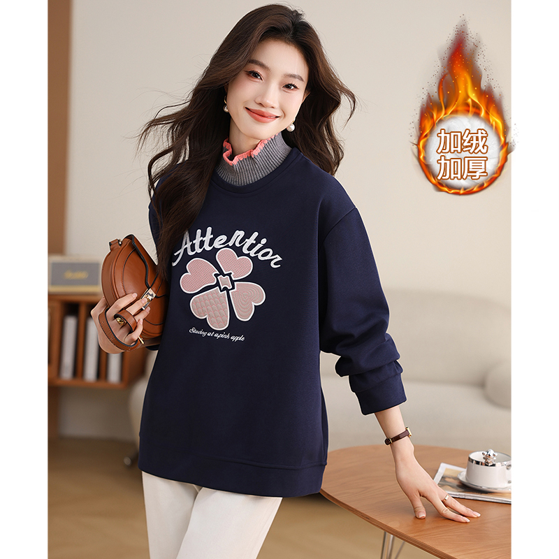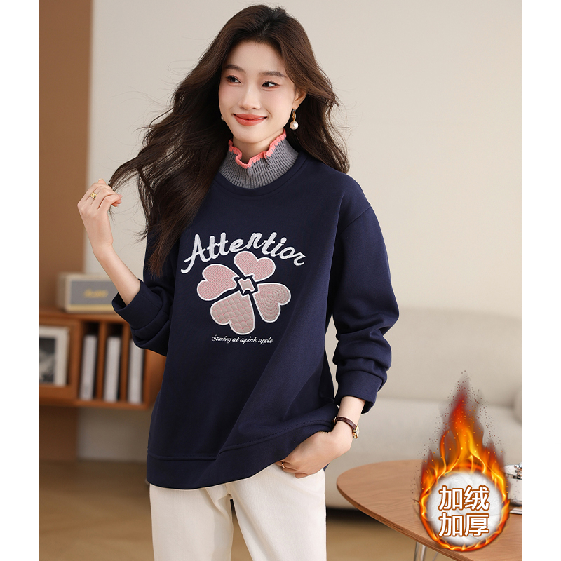 FA49037# 半高领时尚刺绣卫衣秋冬新款加绒加厚百搭宽松显瘦上衣女 服裝批發女裝批發服飾貨源