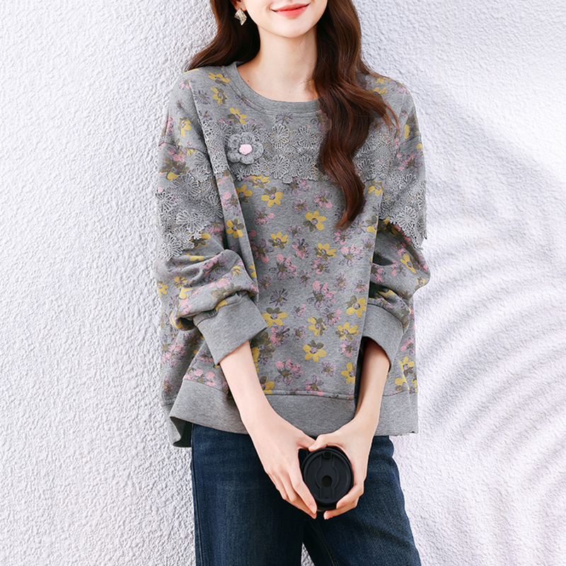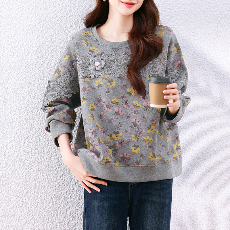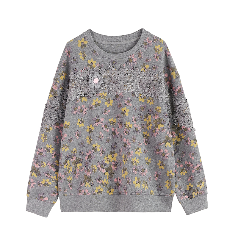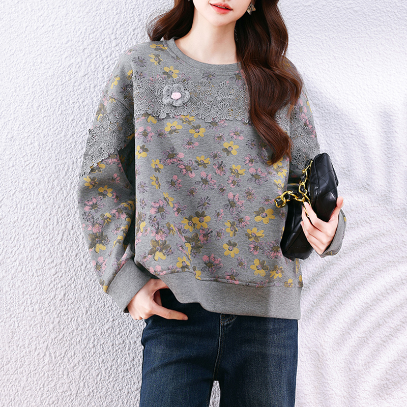 首页 > 卫衣 > FA49040# 碎花蕾丝拼接加绒加厚印花休闲卫衣宽松时尚气质百搭无帽上衣 服裝批發女裝批發服飾貨源