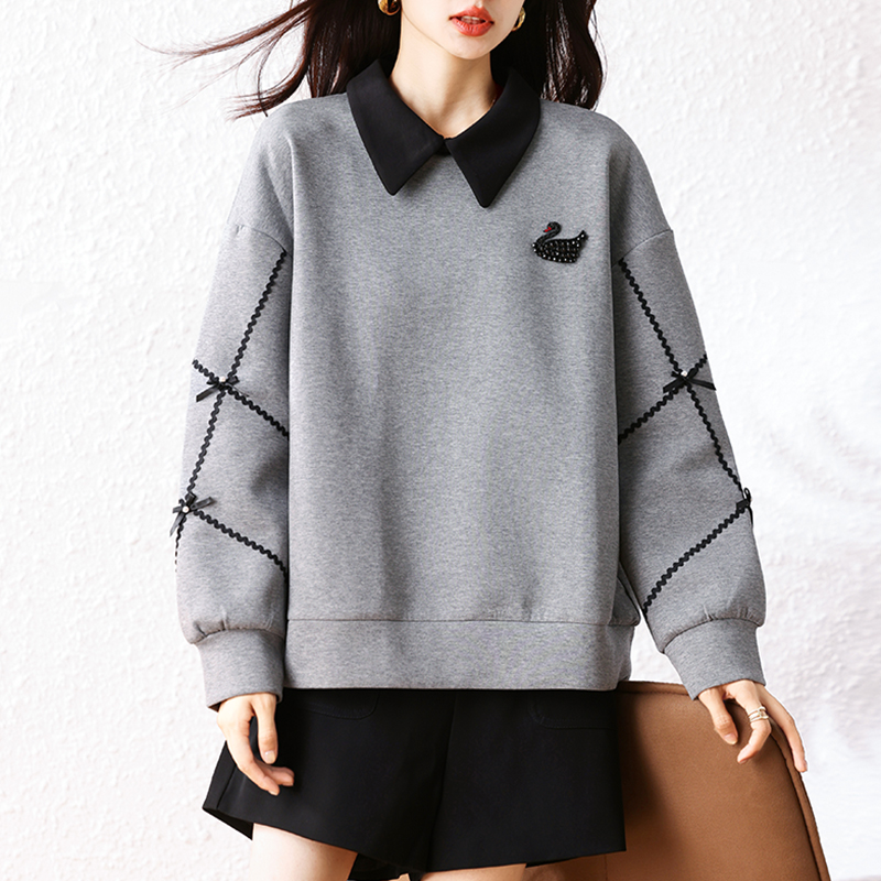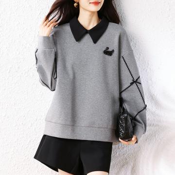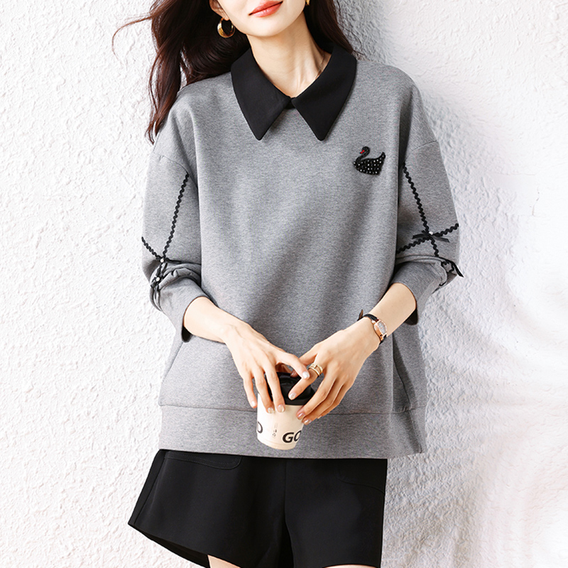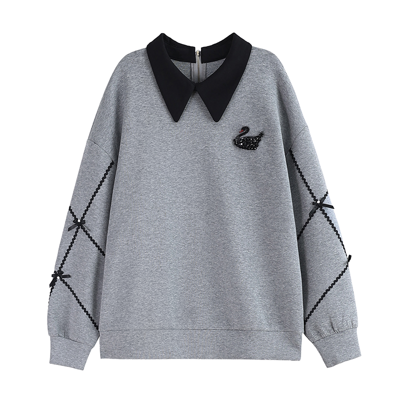 FA49041# 气质烫钻大码天鹅卫衣女新款春秋时尚宽松减龄长袖上衣 服裝批發女裝批發服飾貨源