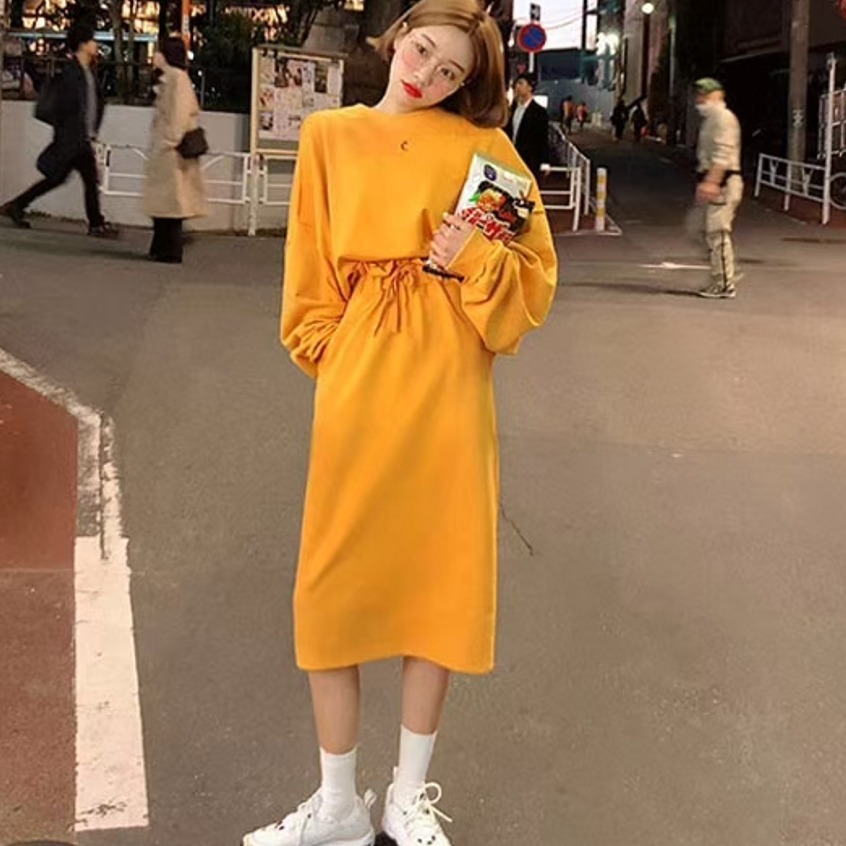 FA49043# 休闲慵懒卫衣+抽绳半身裙不加绒套装 服裝批發女裝批發服飾貨源