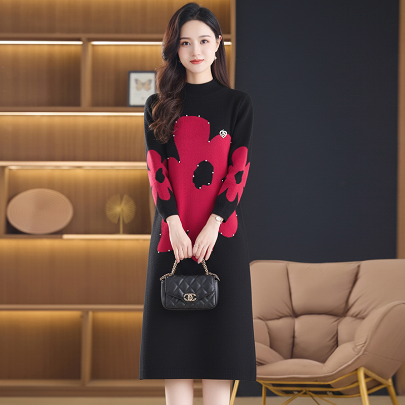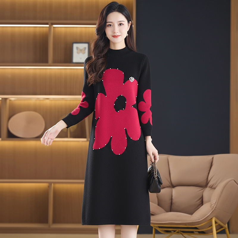 FA49057# 针织毛衣女宽松外穿秋冬装新款加厚中长款打底连衣裙 服裝批發女裝批發服飾貨源